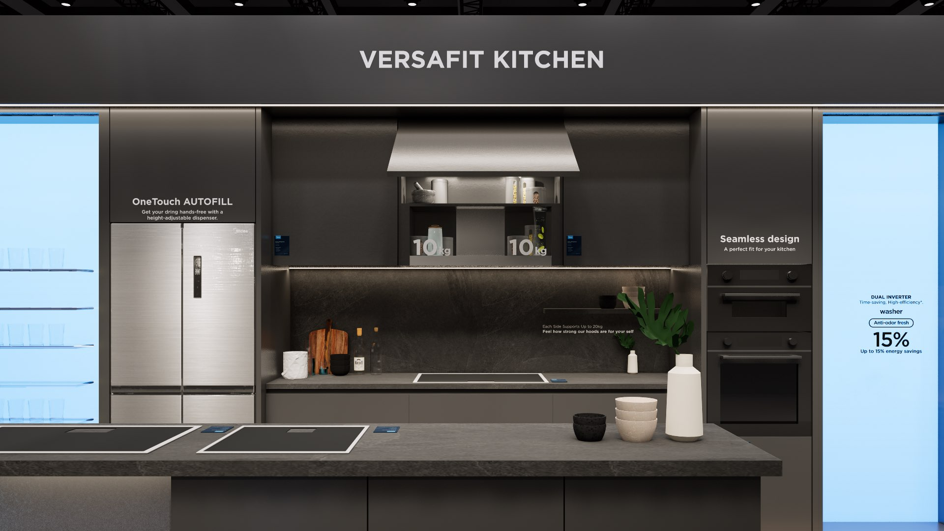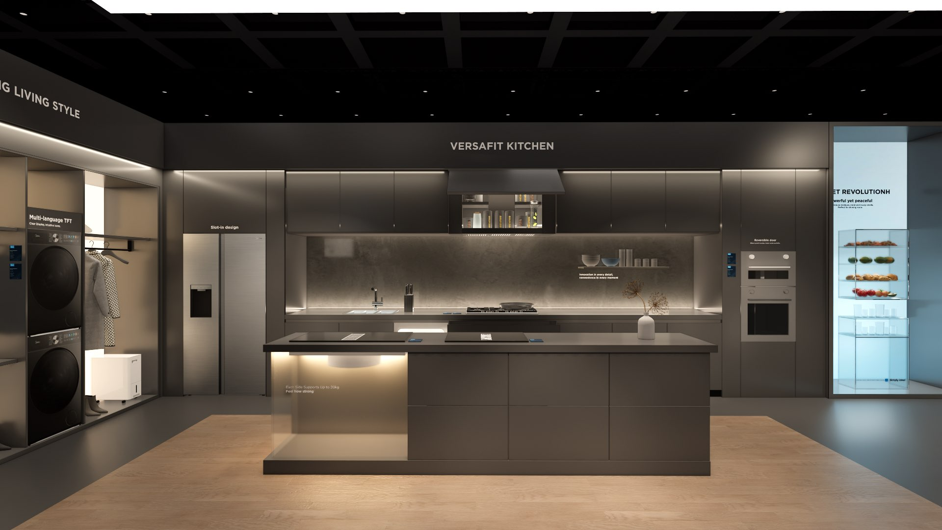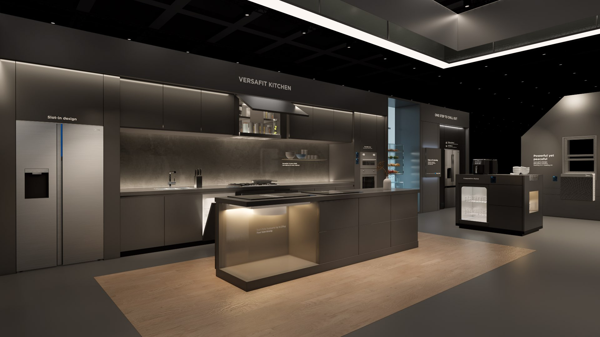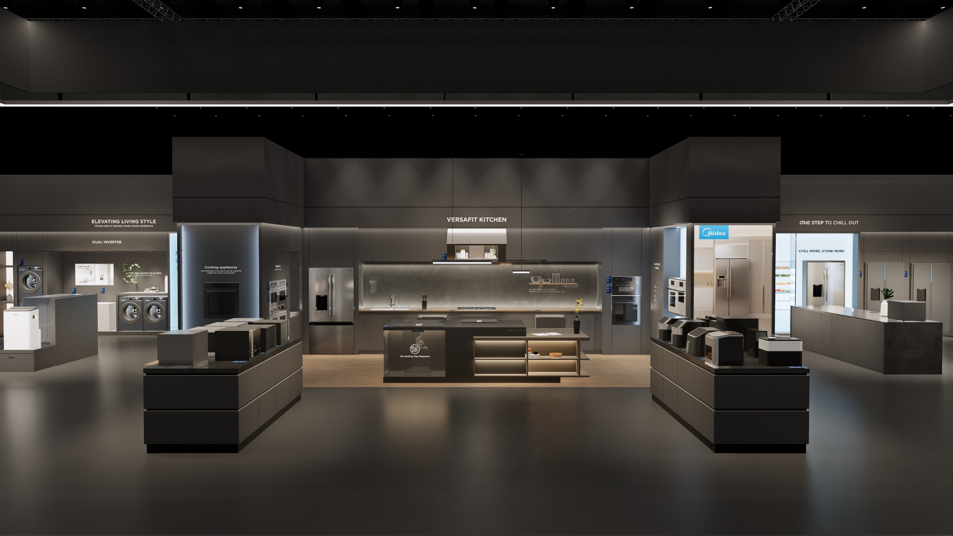 The extra-large booth serves as a design reference for the “Kitchen” scenario. It is designated as the exhibition space for the REF, KWHA, MOA, and SDA business units and should be used as a guideline when developing related displays.
