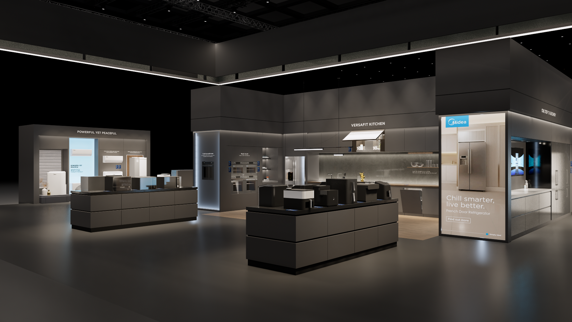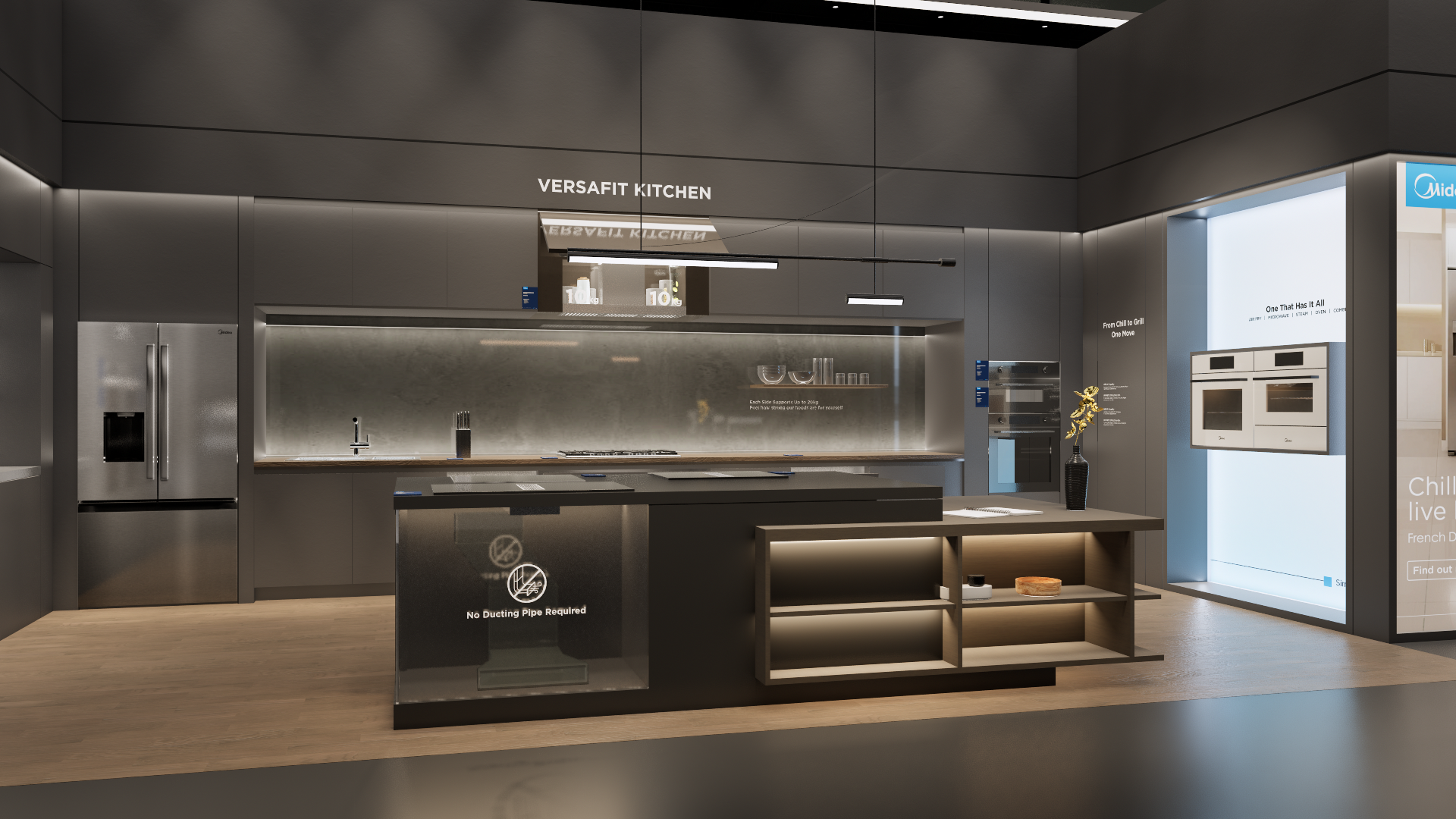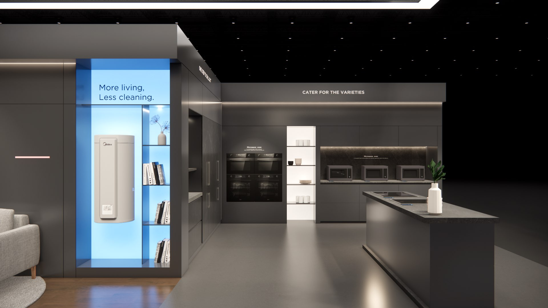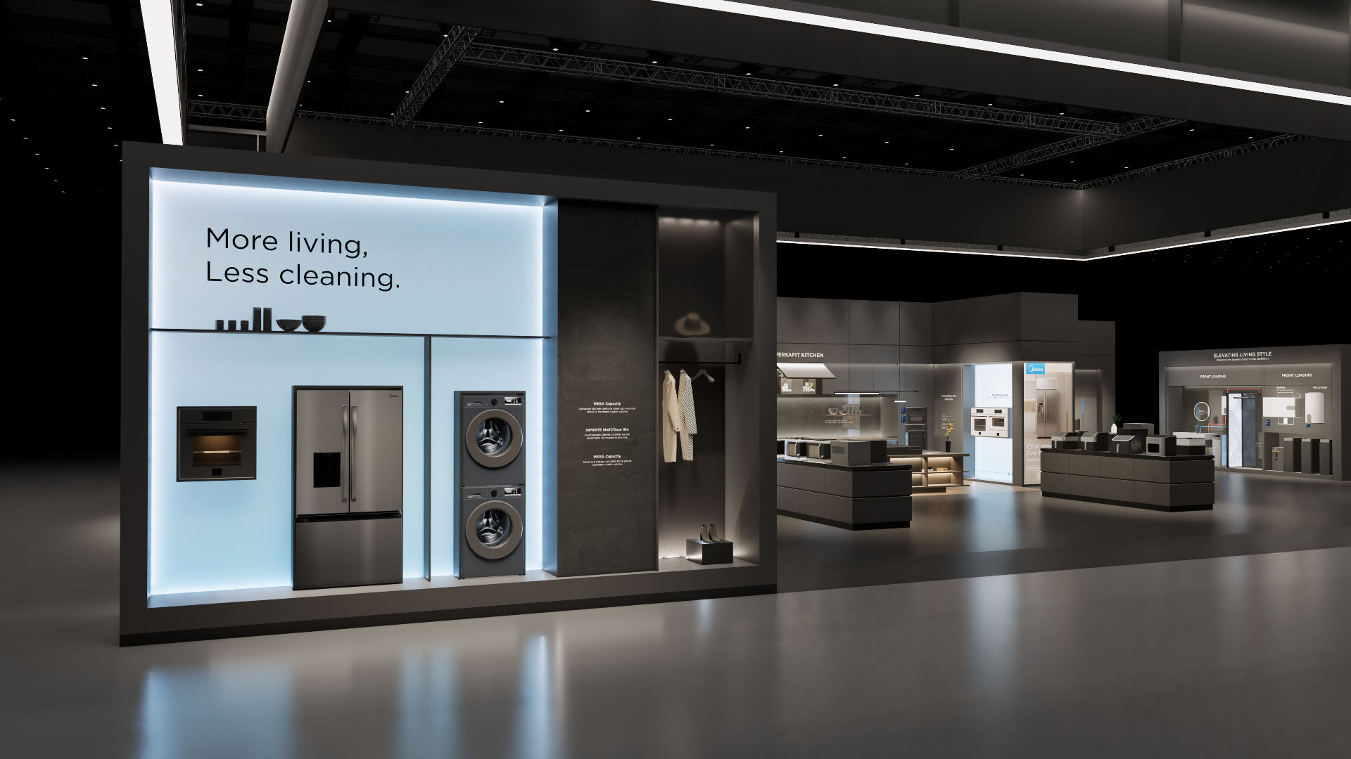The extra-large booth serves as a design reference for the “Kitchen” scenario. It is designated as the exhibition space for the REF, KWHA, MOA, and SDA business units and should be used as a guideline when developing related displays.