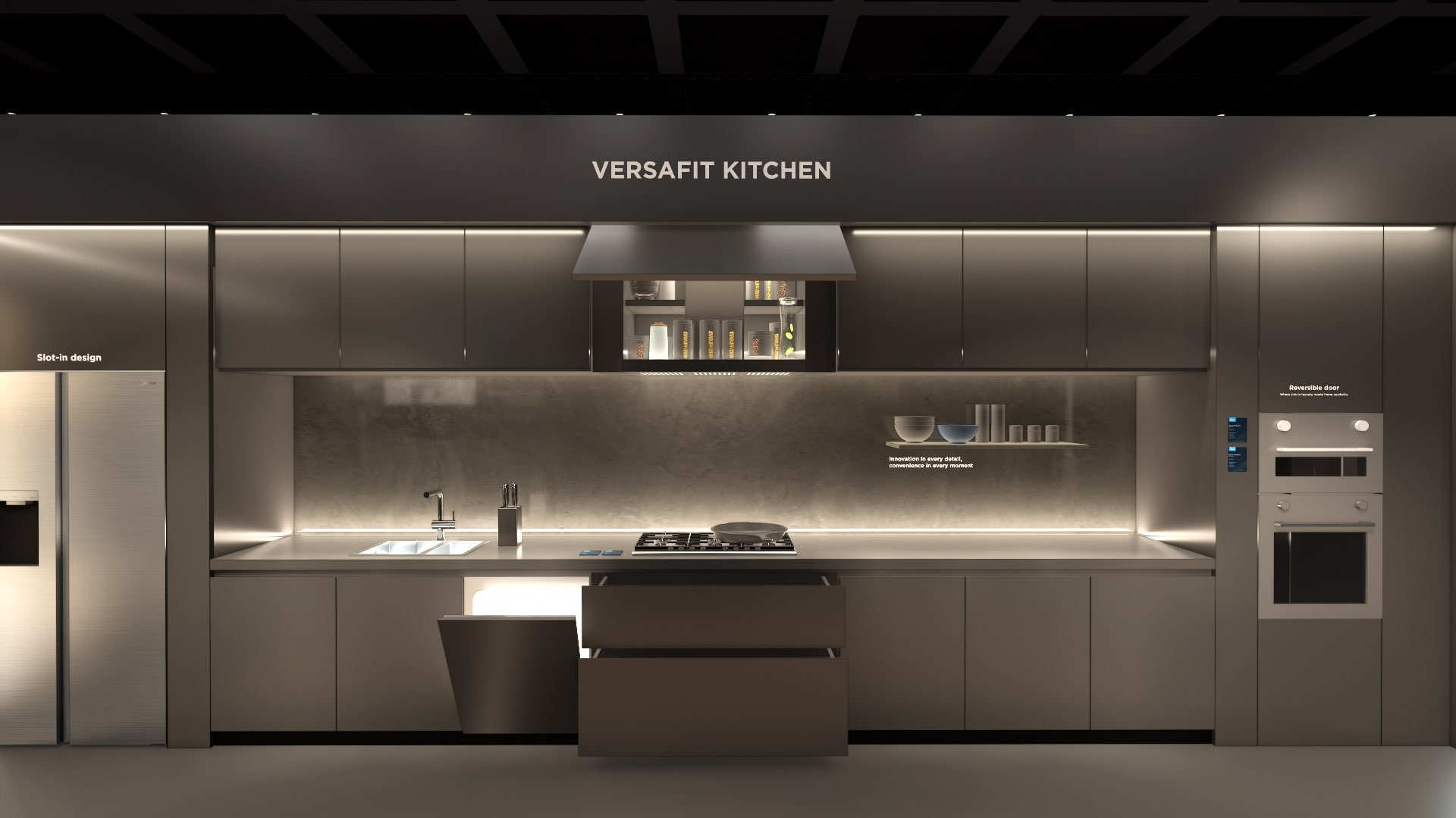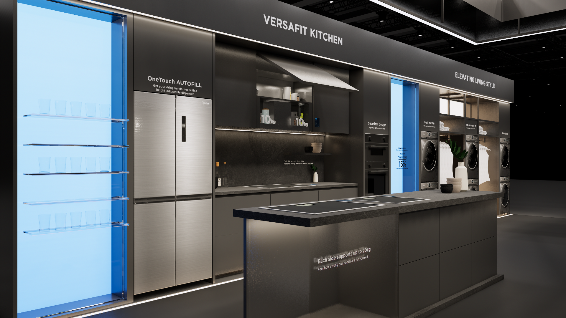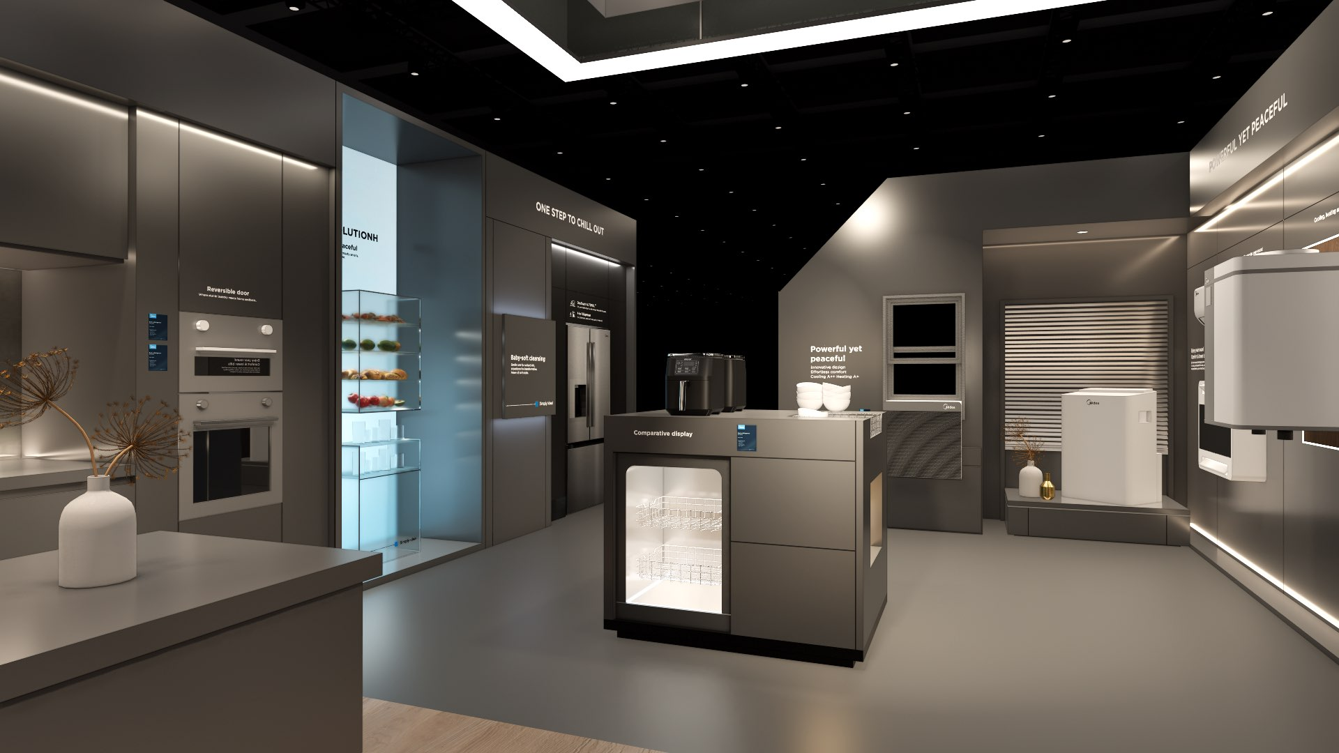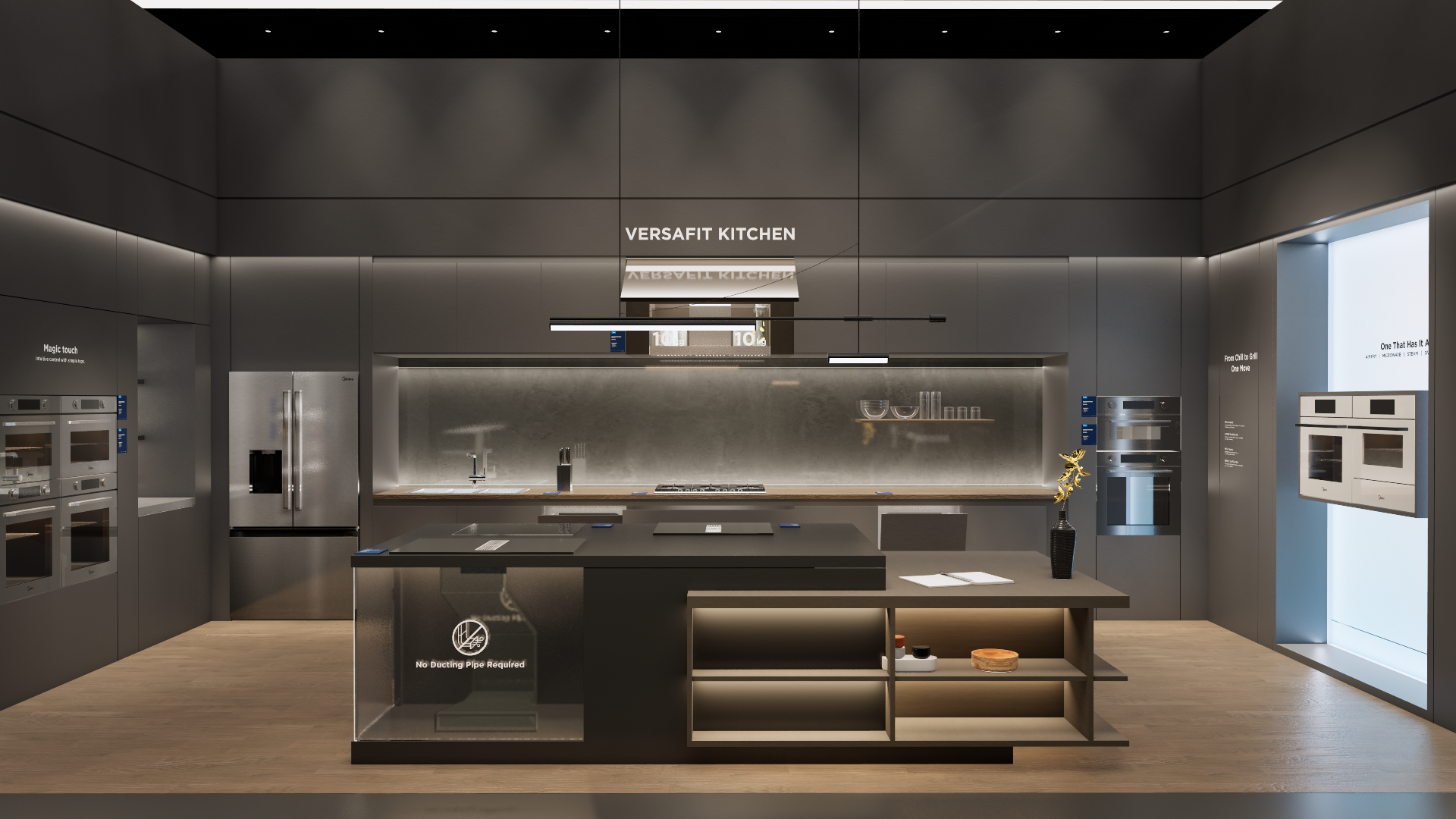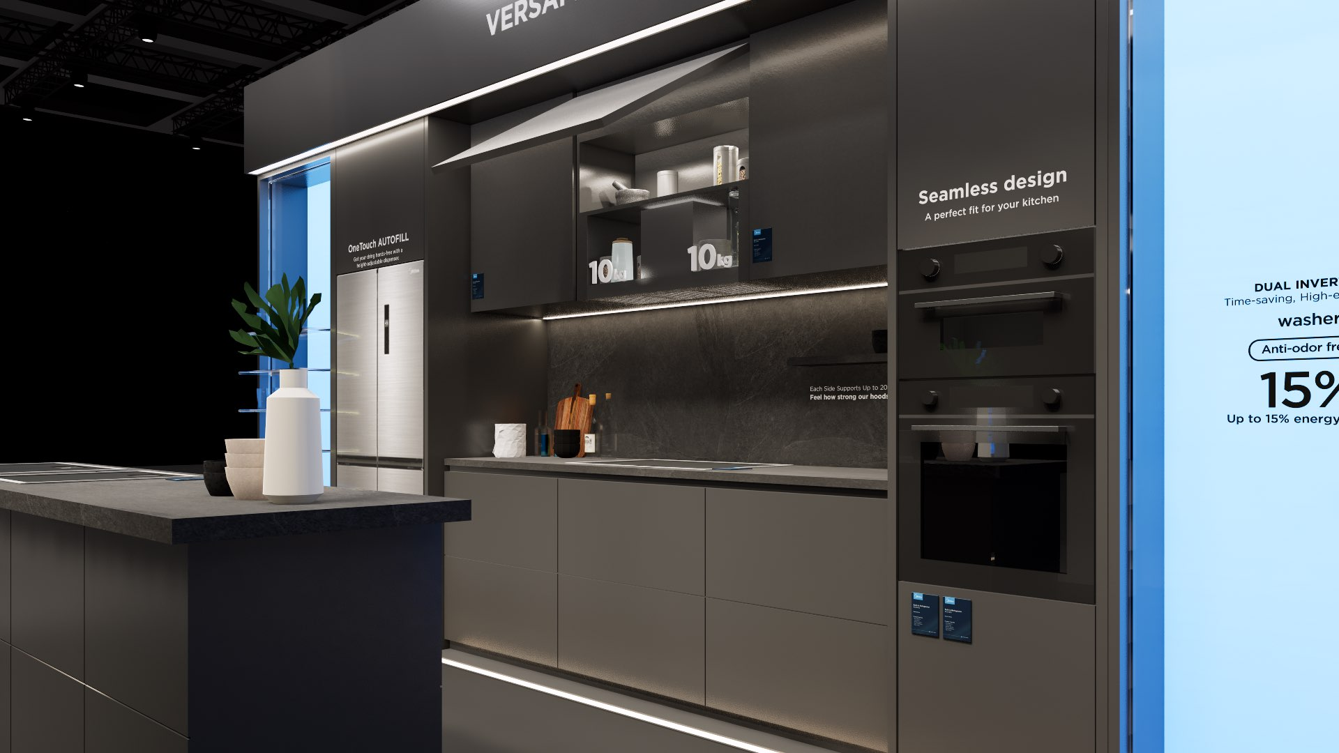 The extra-large booth serves as a design reference for the “Kitchen” scenario. It is designated as the exhibition space for the REF, KWHA, MOA, and SDA business units and should be used as a guideline when developing related displays.