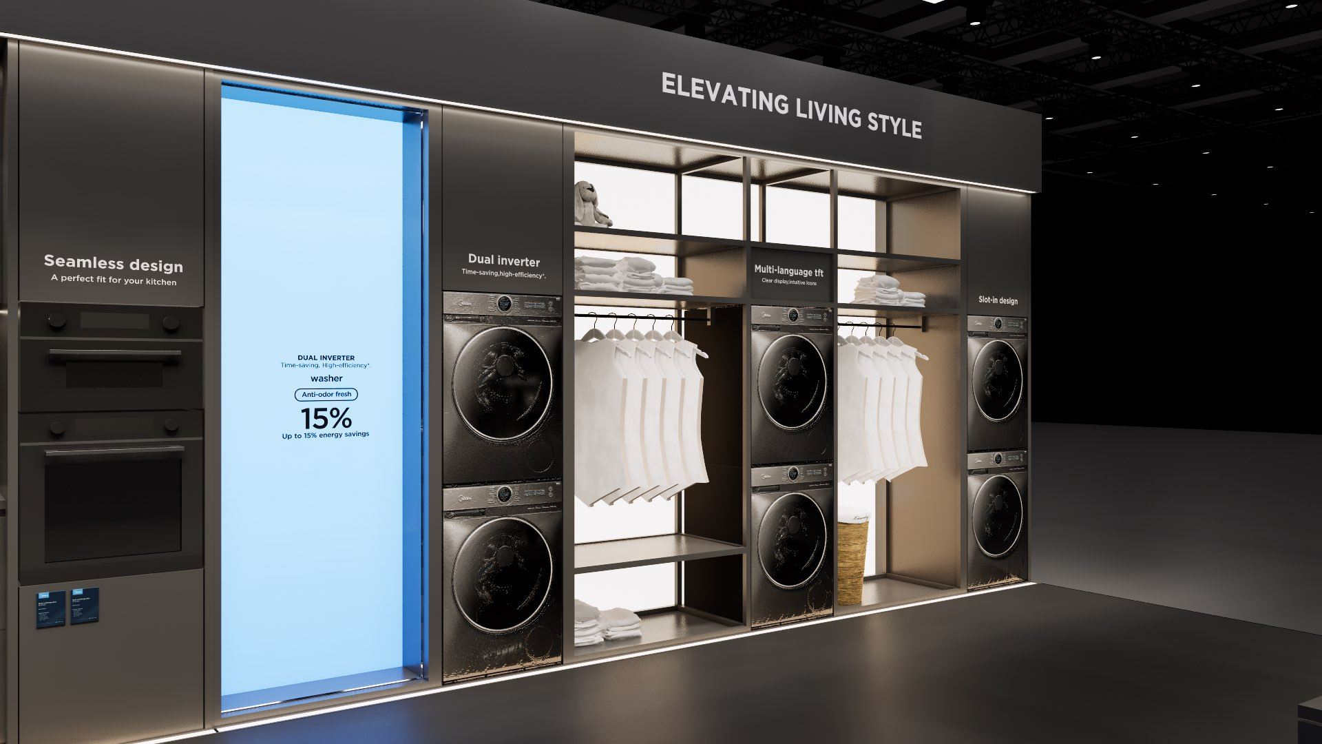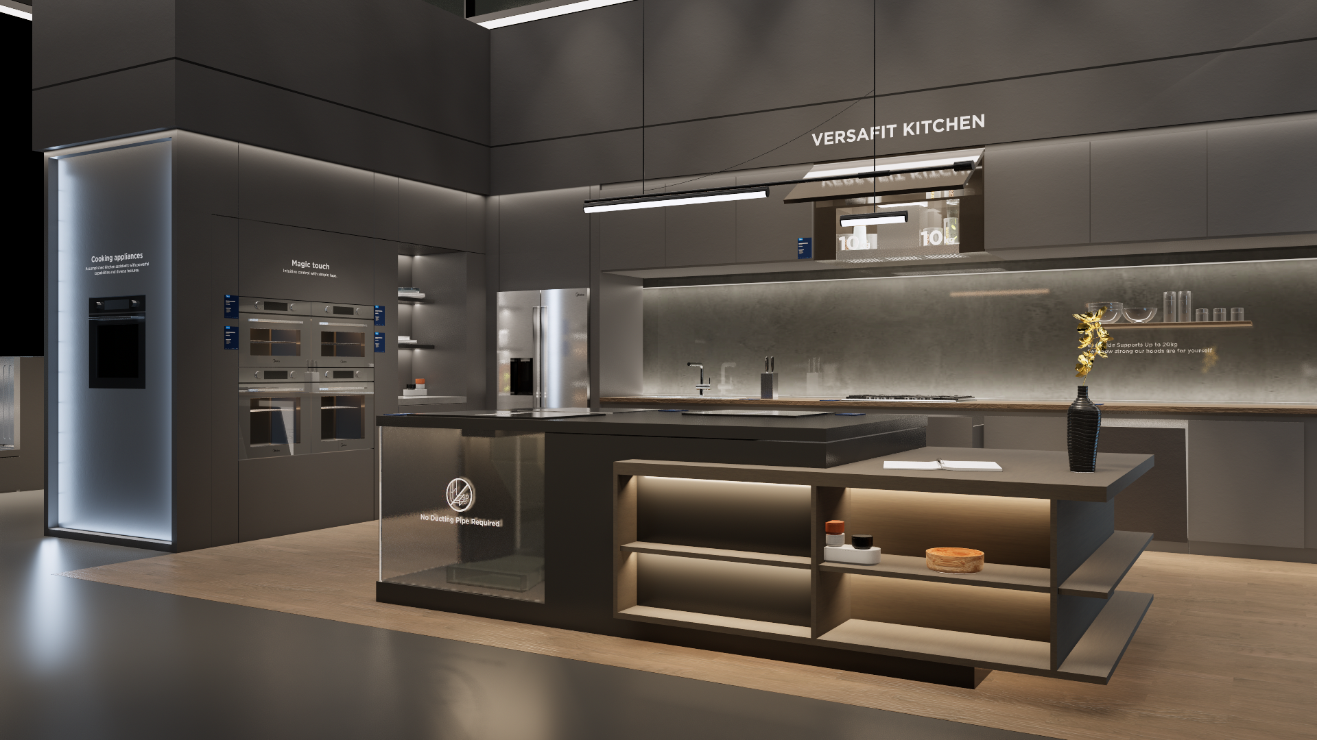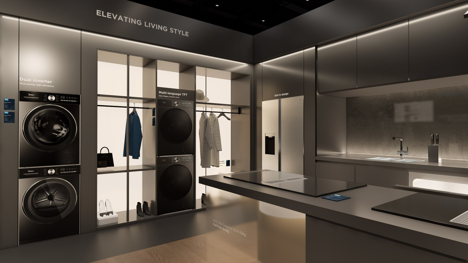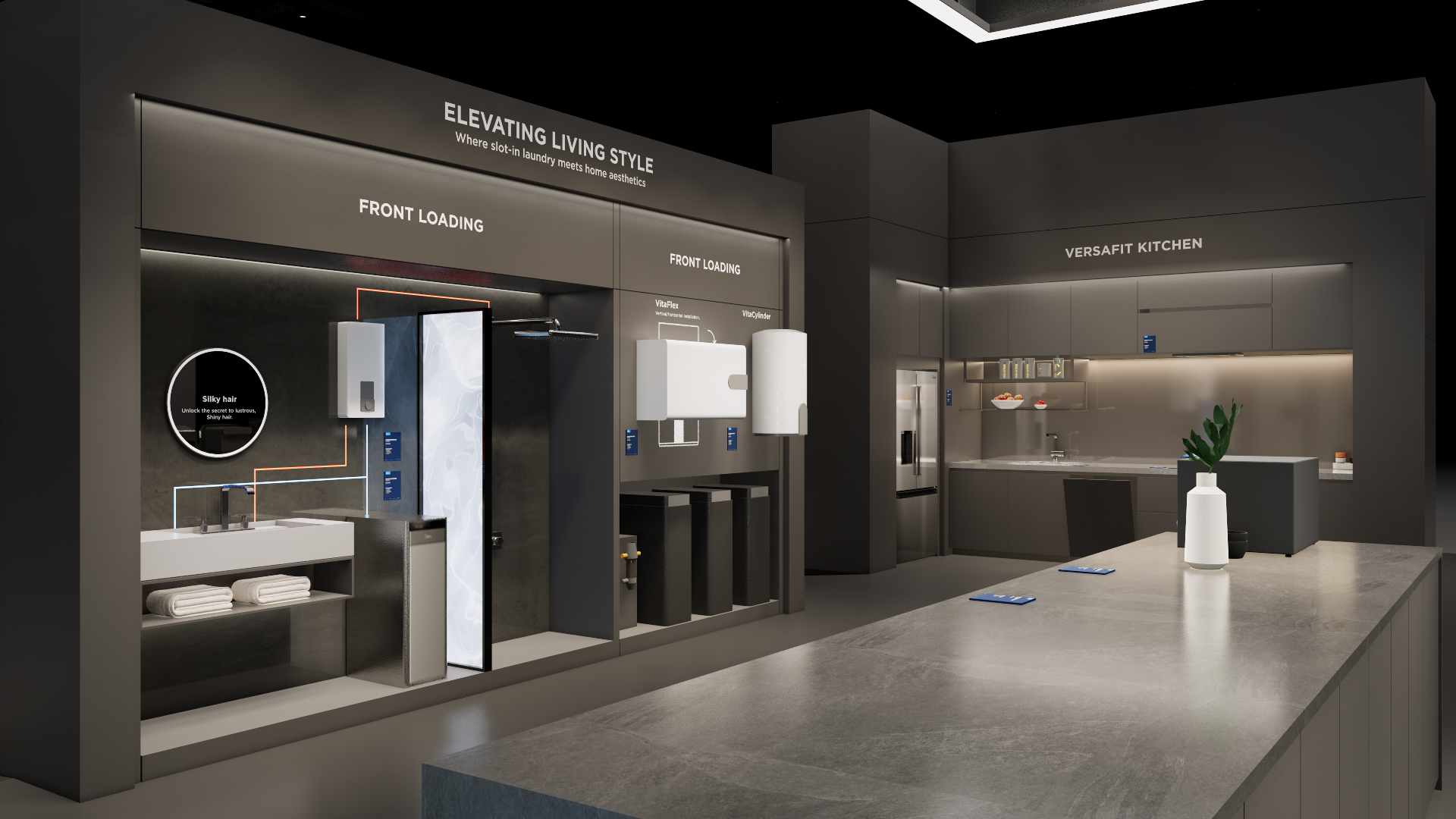 The extra-large booth serves as a design reference for the “Kitchen” scenario. It is designated as the exhibition space for the REF, KWHA, MOA, and SDA business units and should be used as a guideline when developing related displays.
