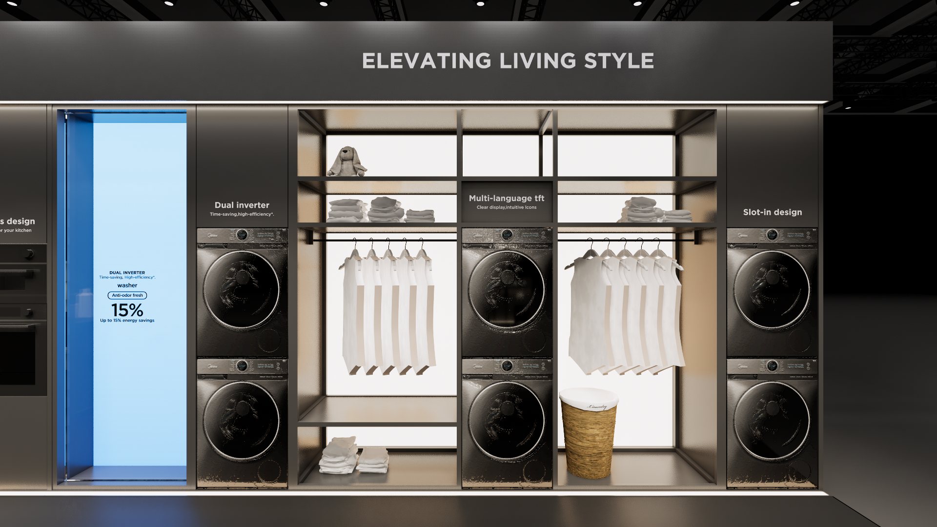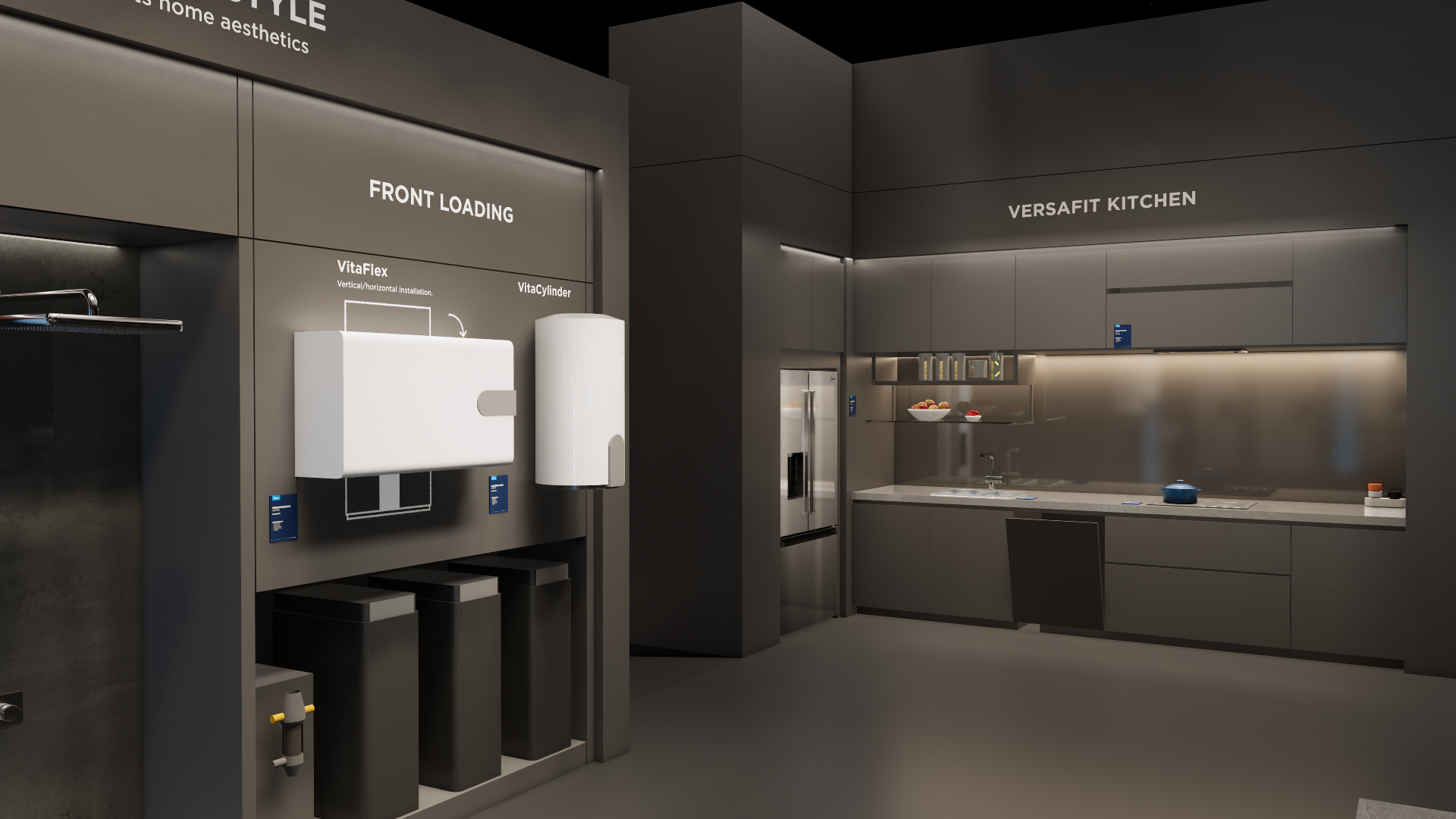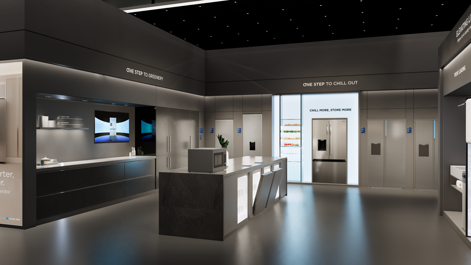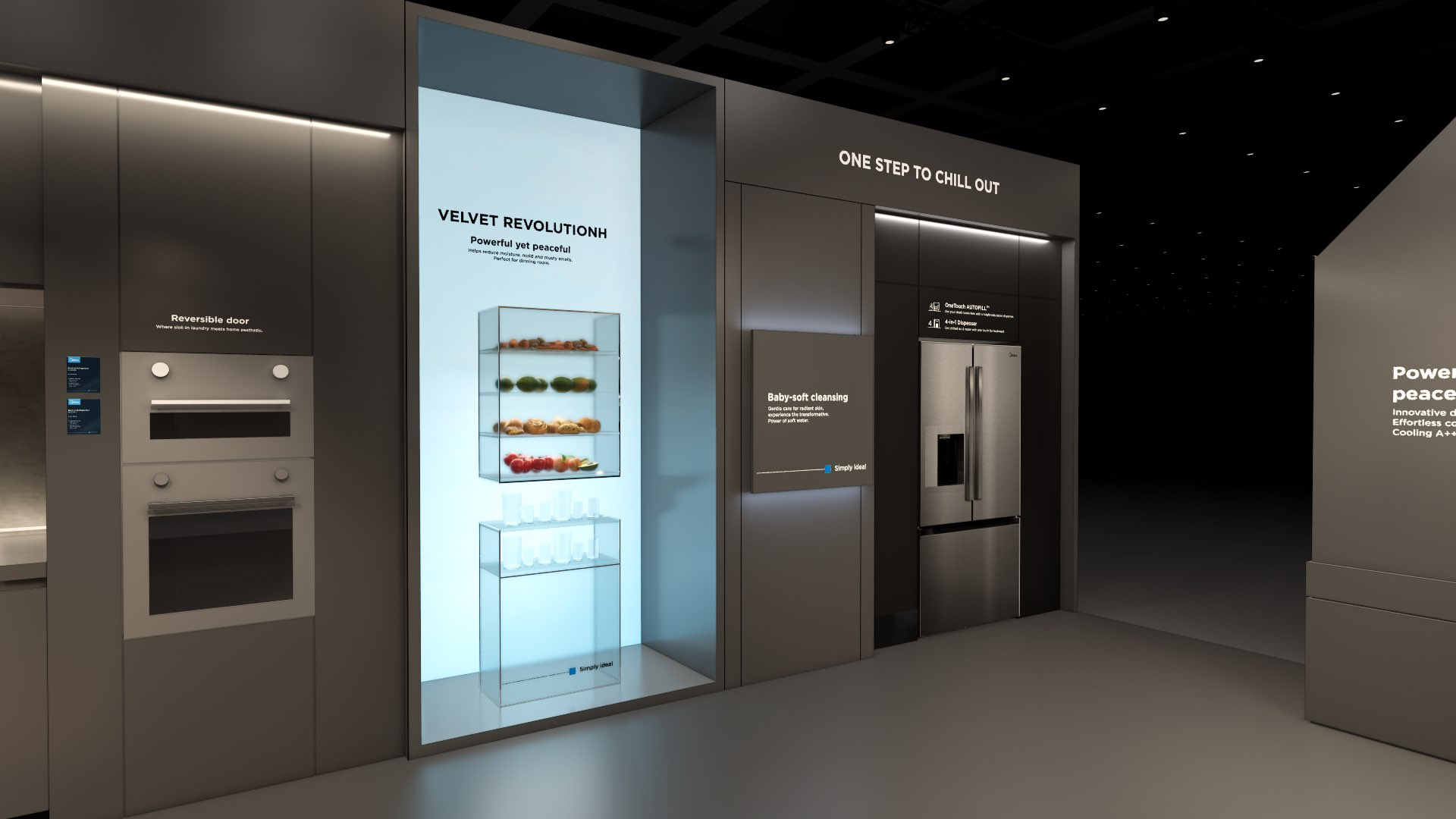 The extra-large booth serves as a design reference for the “Kitchen” scenario. It is designated as the exhibition space for the REF, KWHA, MOA, and SDA business units and should be used as a guideline when developing related displays.