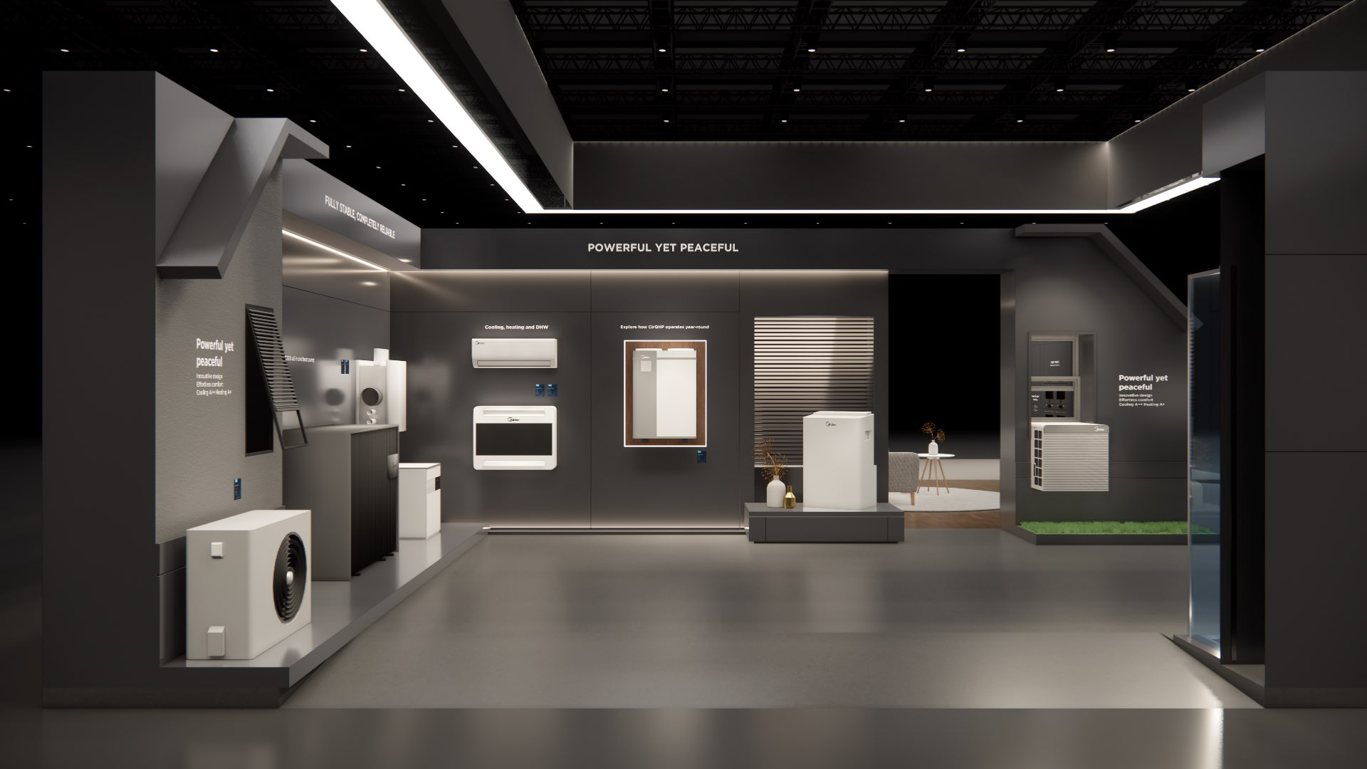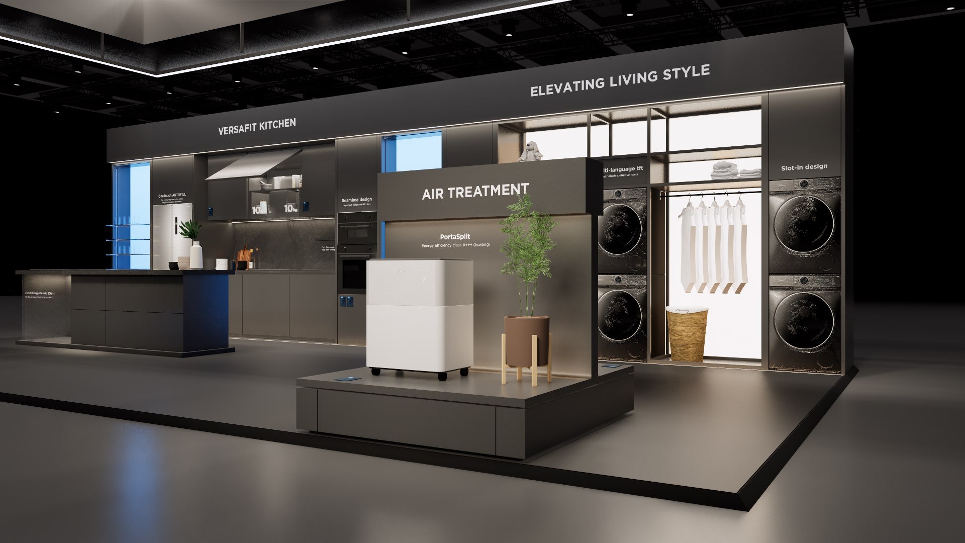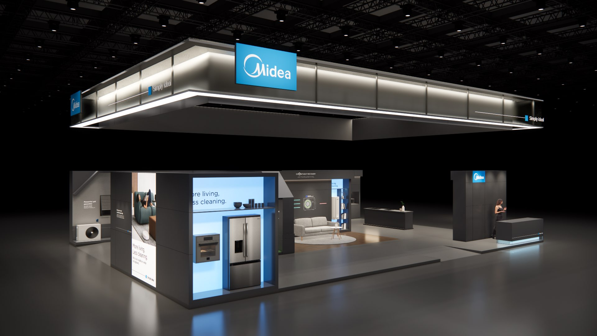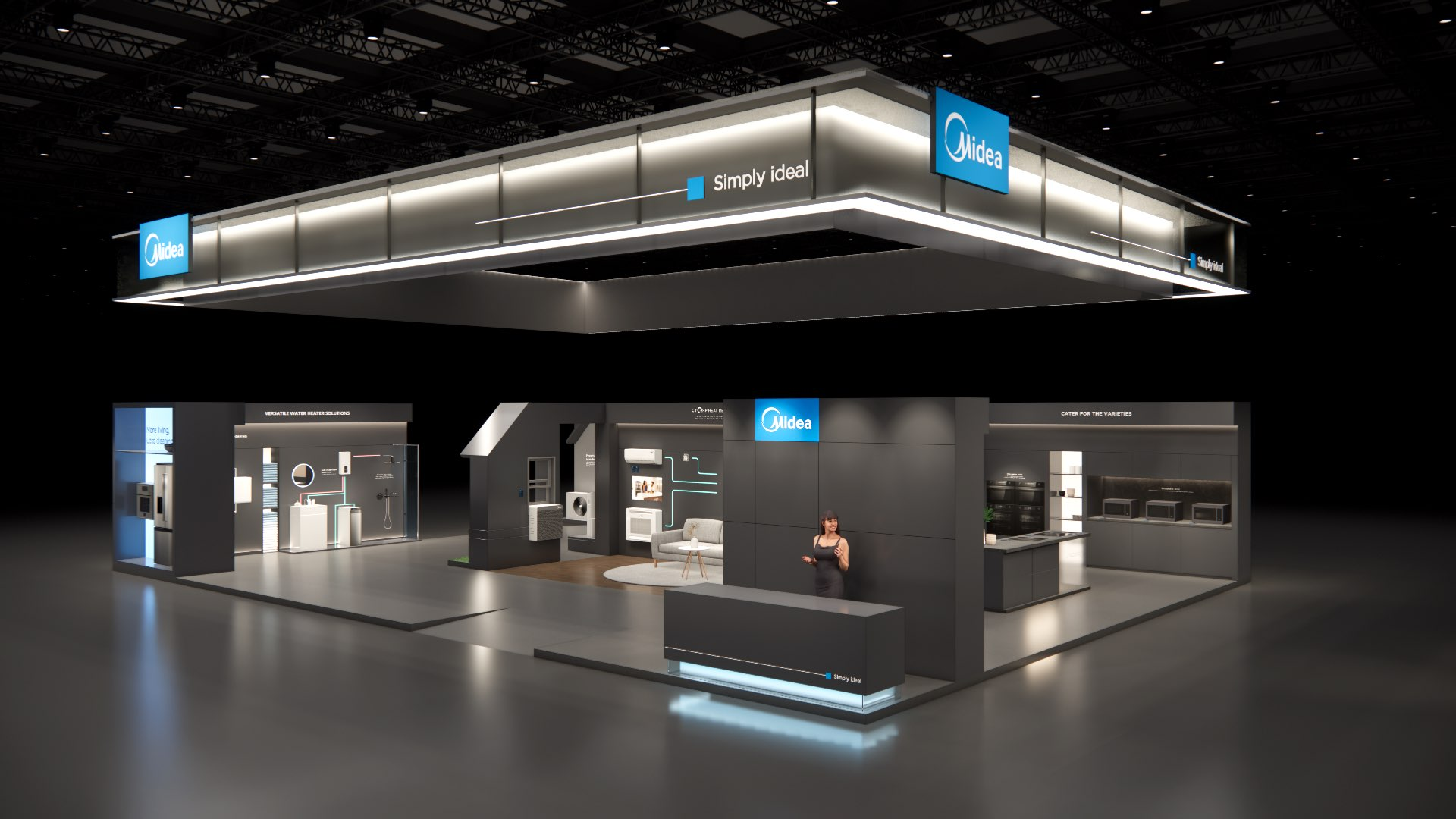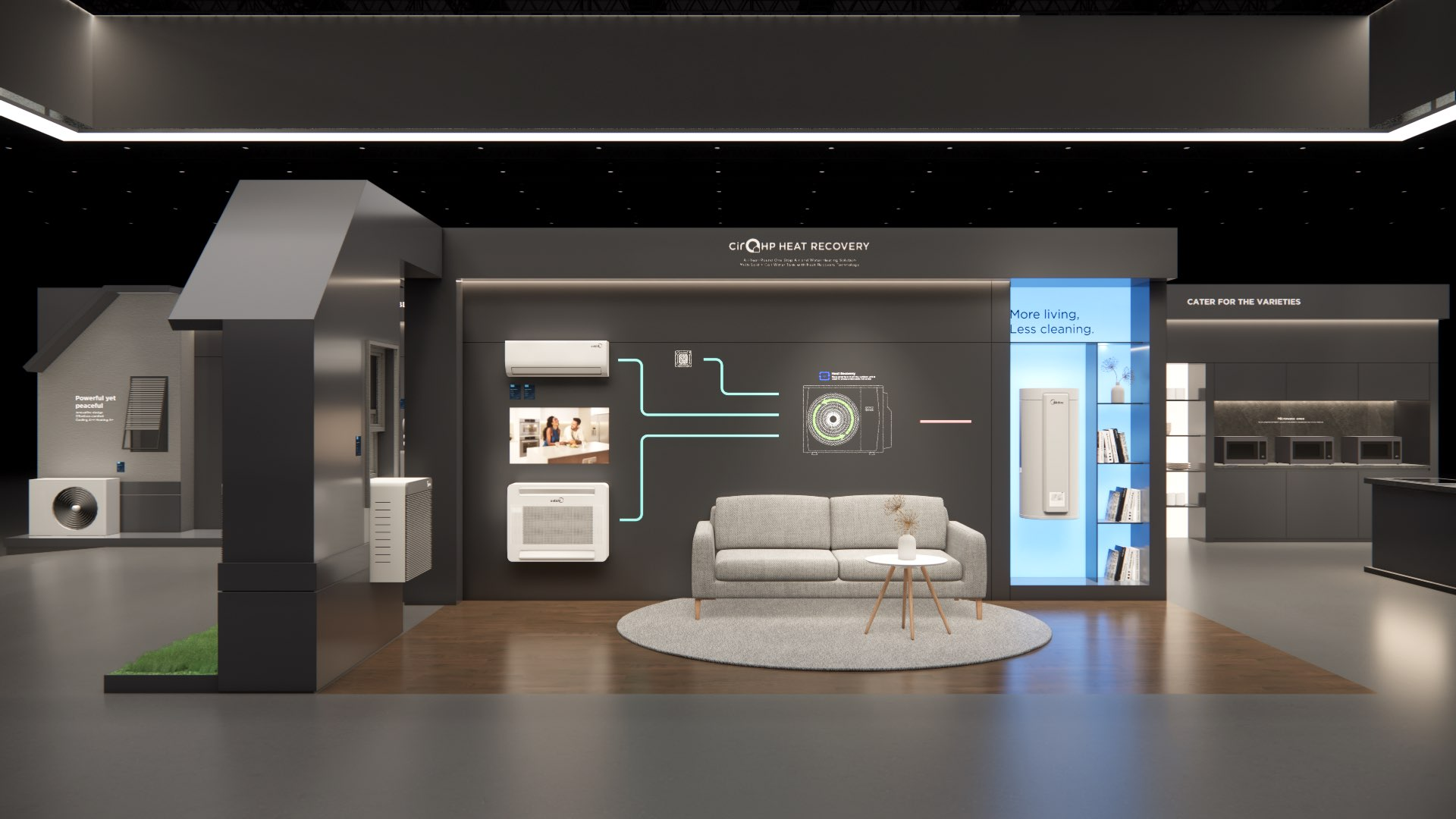 The large-size booth serves as a design reference for the “Air-Conditioning and Heating” scenario. It is designated as the exhibition space for the RAC, MBT, and KWHA business units and should be used as a guideline when developing related displays.