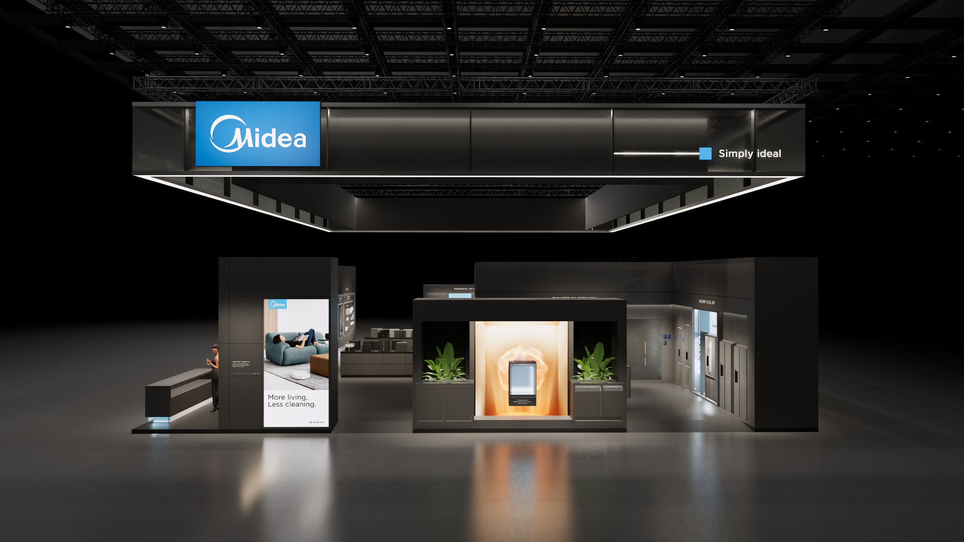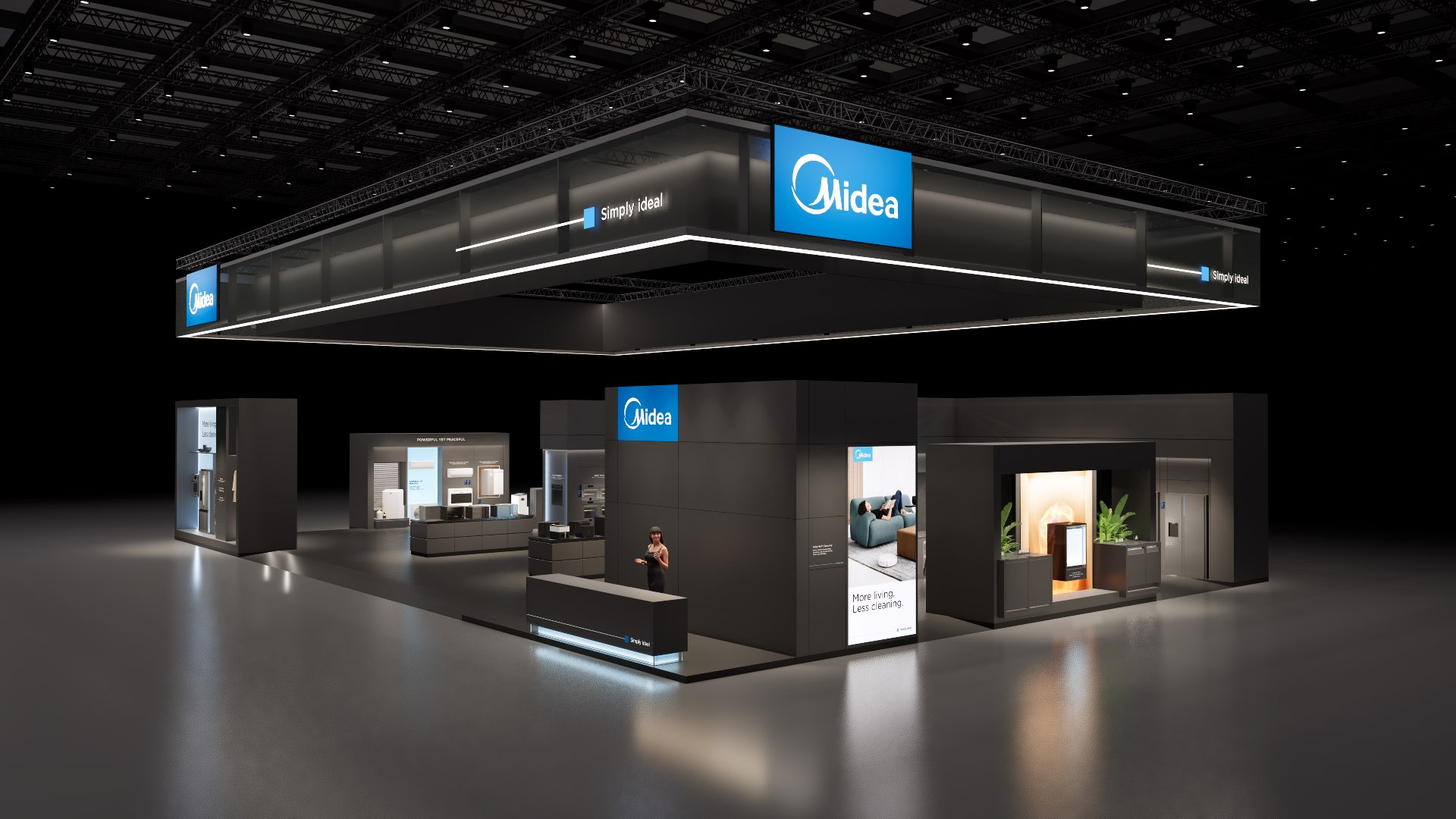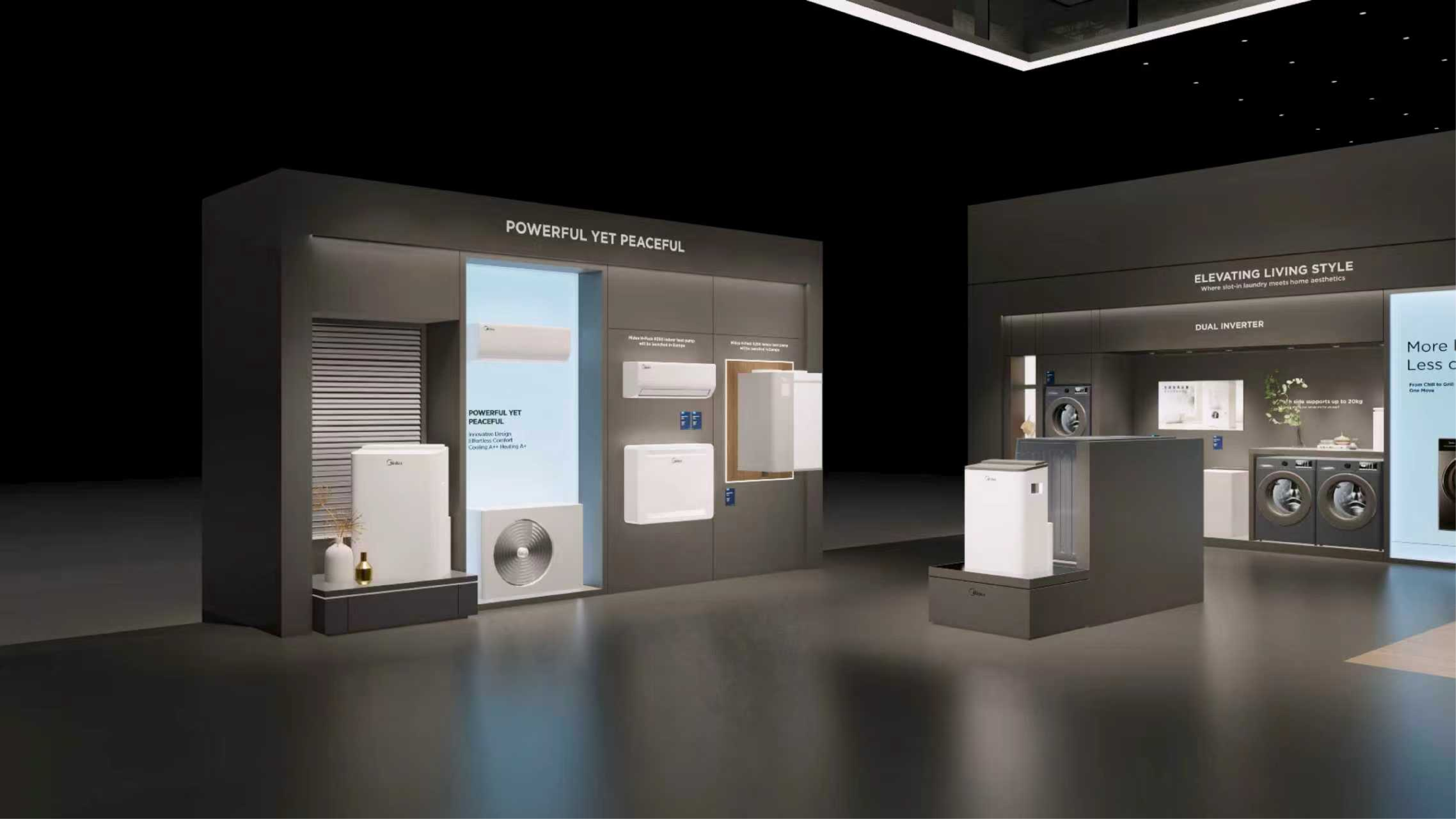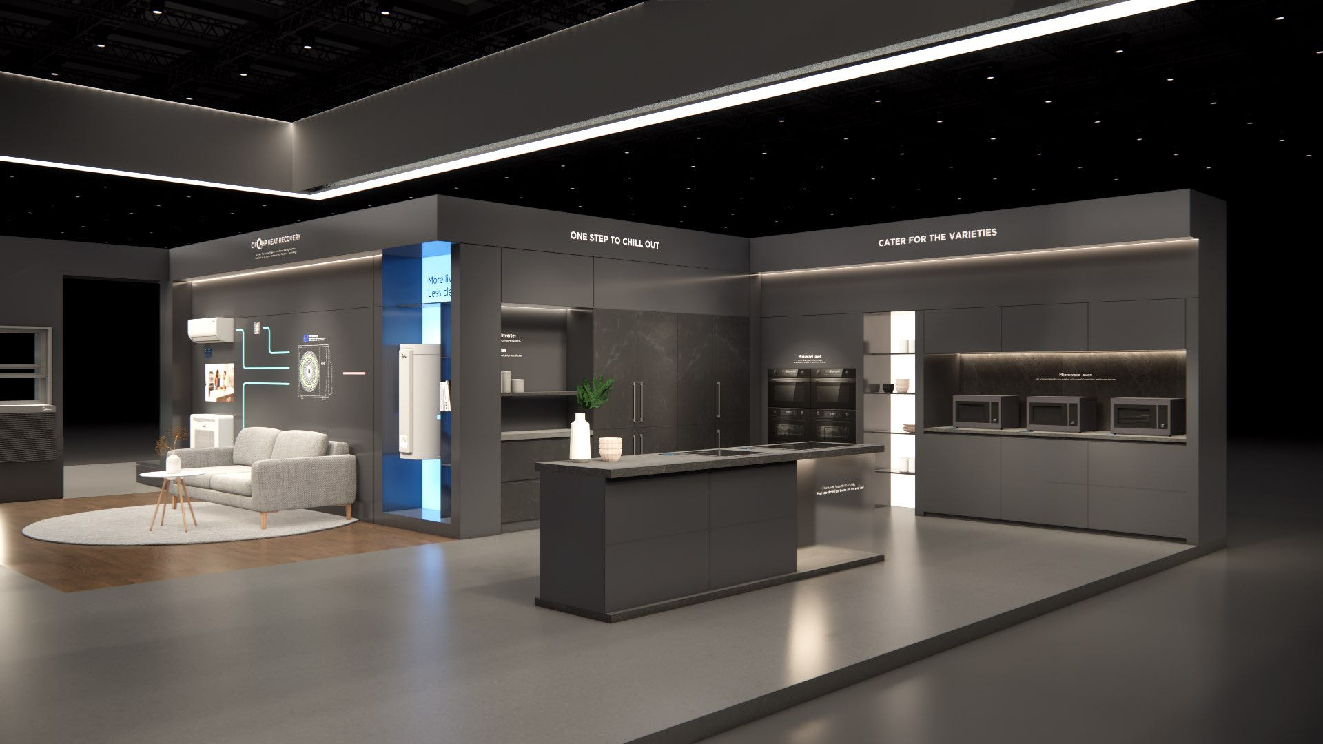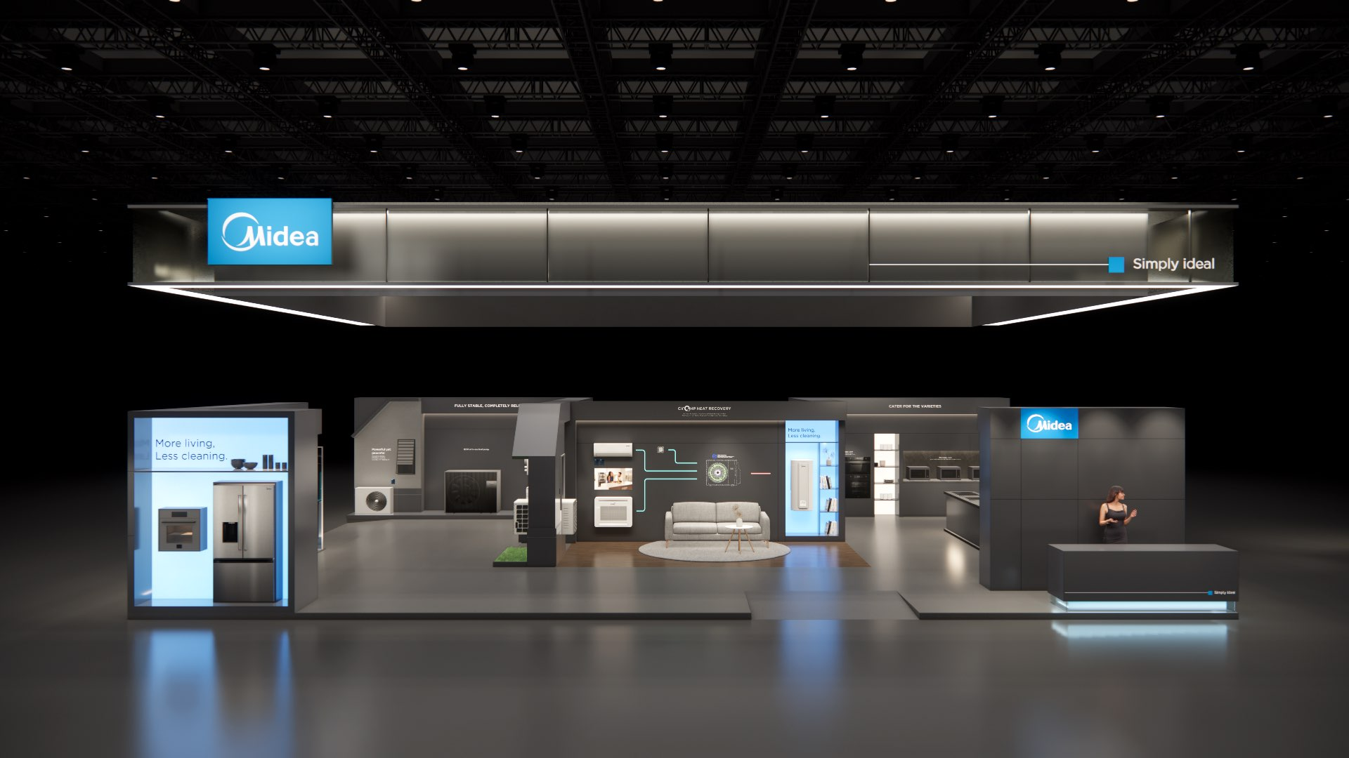 The large-size booth serves as a design reference for the “Air-Conditioning and Heating” scenario. It is designated as the exhibition space for the RAC, MBT, and KWHA business units and should be used as a guideline when developing related displays.