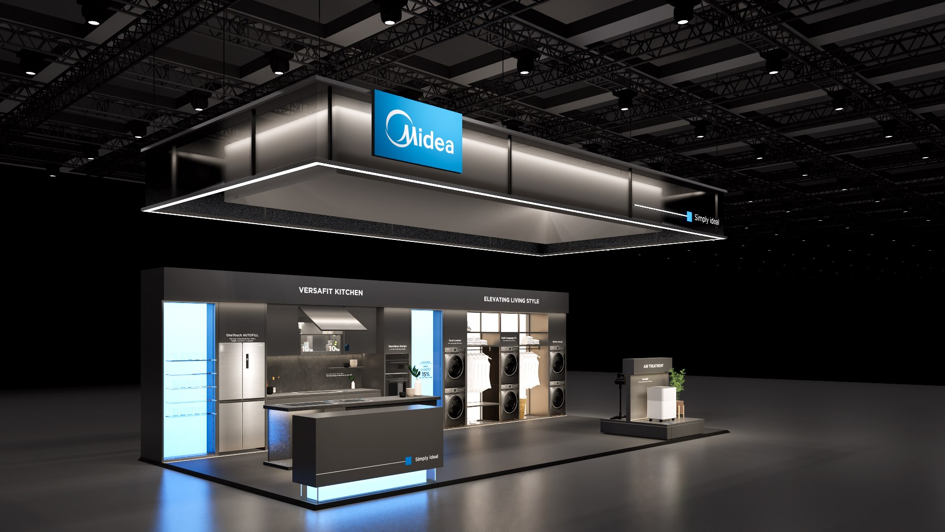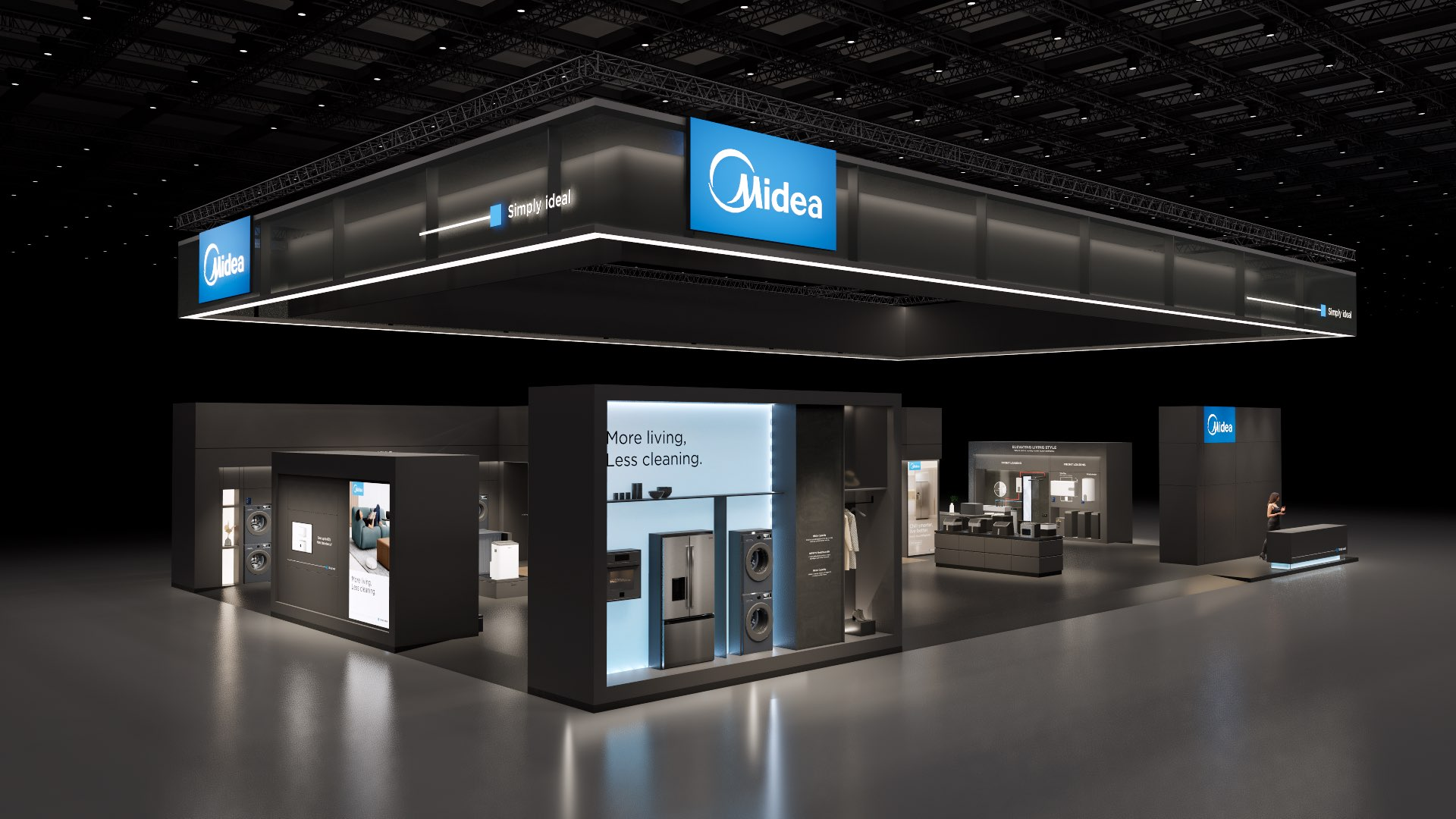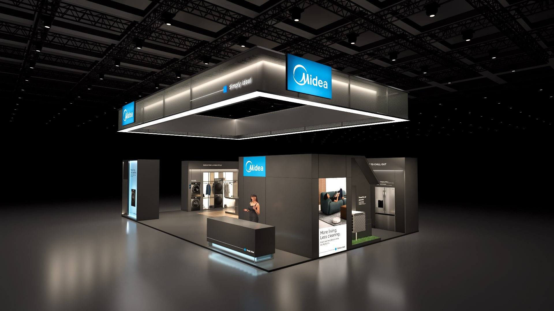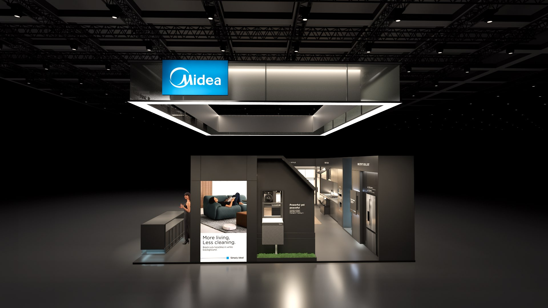 The large-size booth serves as a design reference for the “Air-Conditioning and Heating” scenario. It is designated as the exhibition space for the RAC, MBT, and KWHA business units and should be used as a guideline when developing related displays.