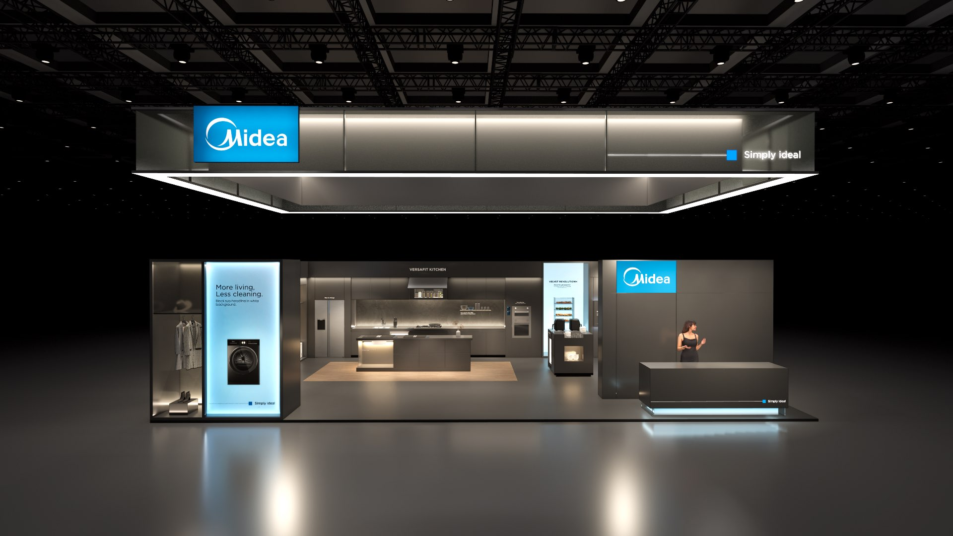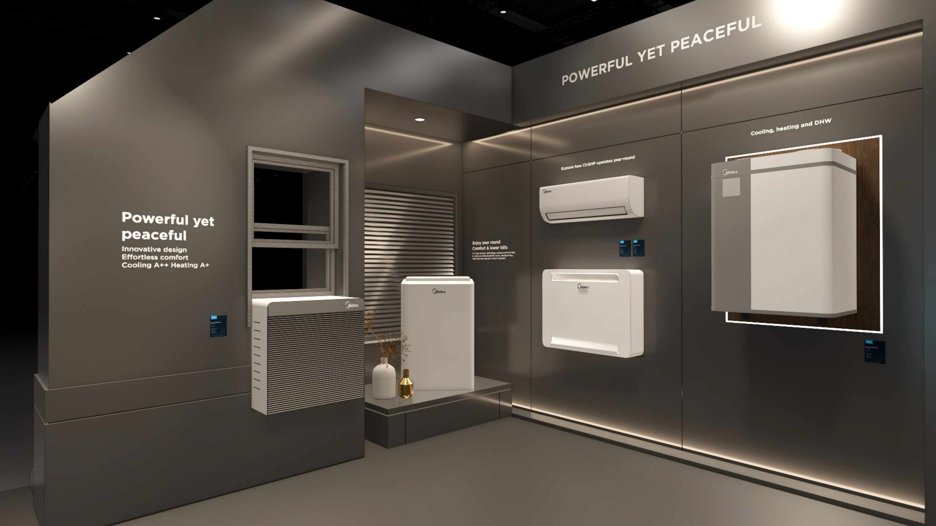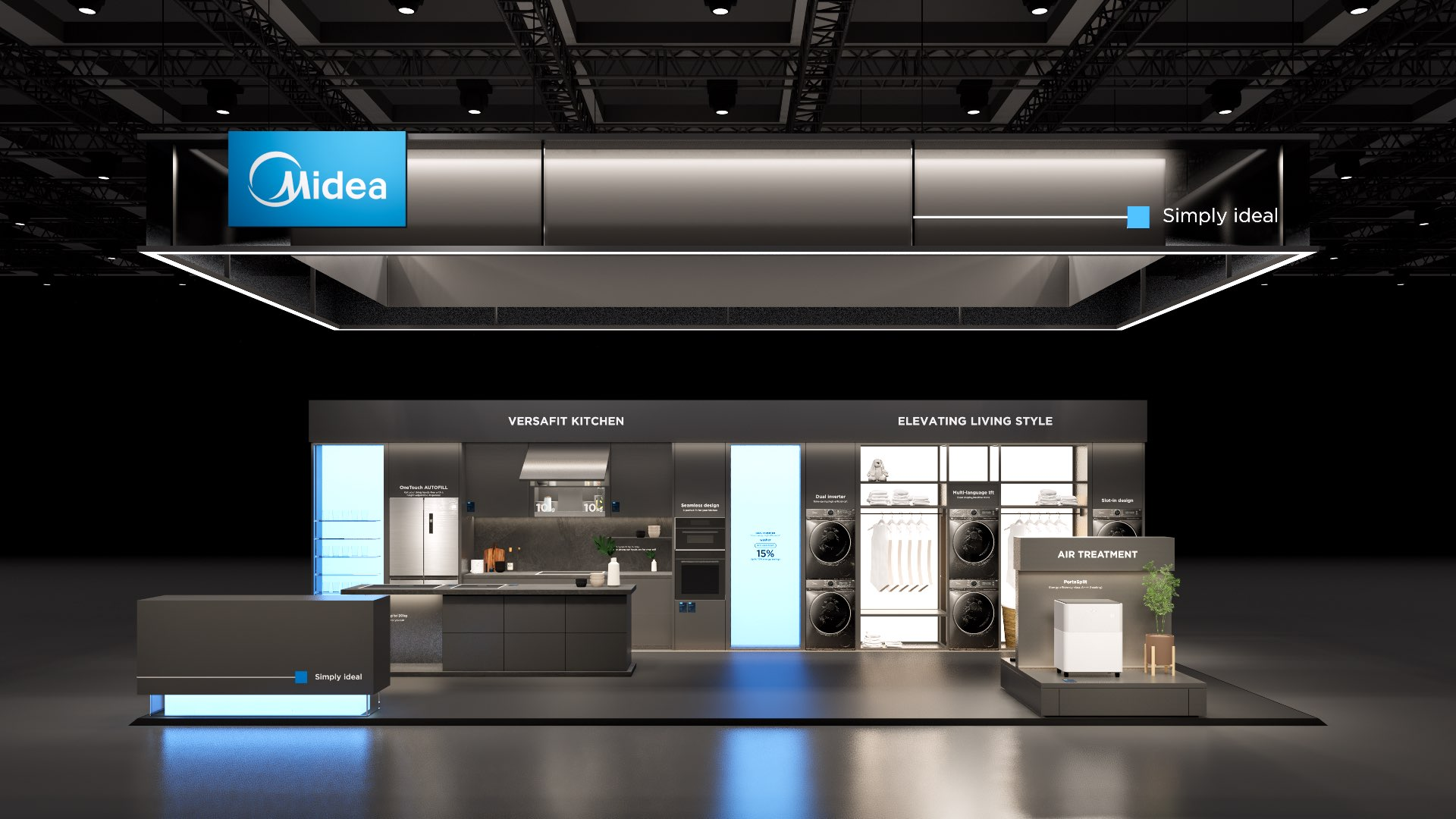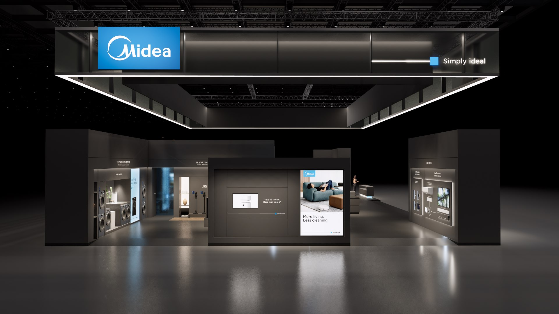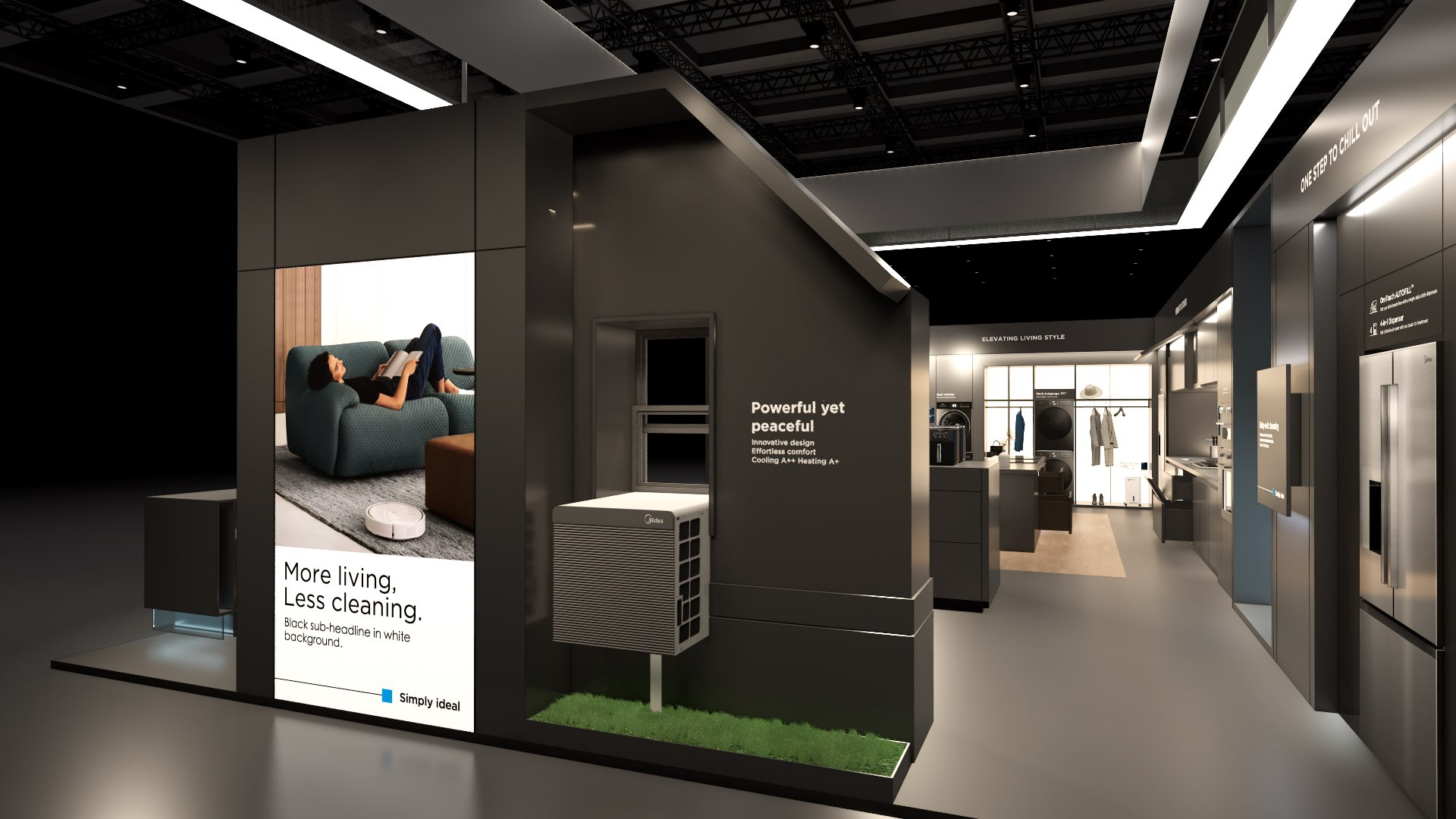 The large-size booth serves as a design reference for the “Air-Conditioning and Heating” scenario. It is designated as the exhibition space for the RAC, MBT, and KWHA business units and should be used as a guideline when developing related displays.
