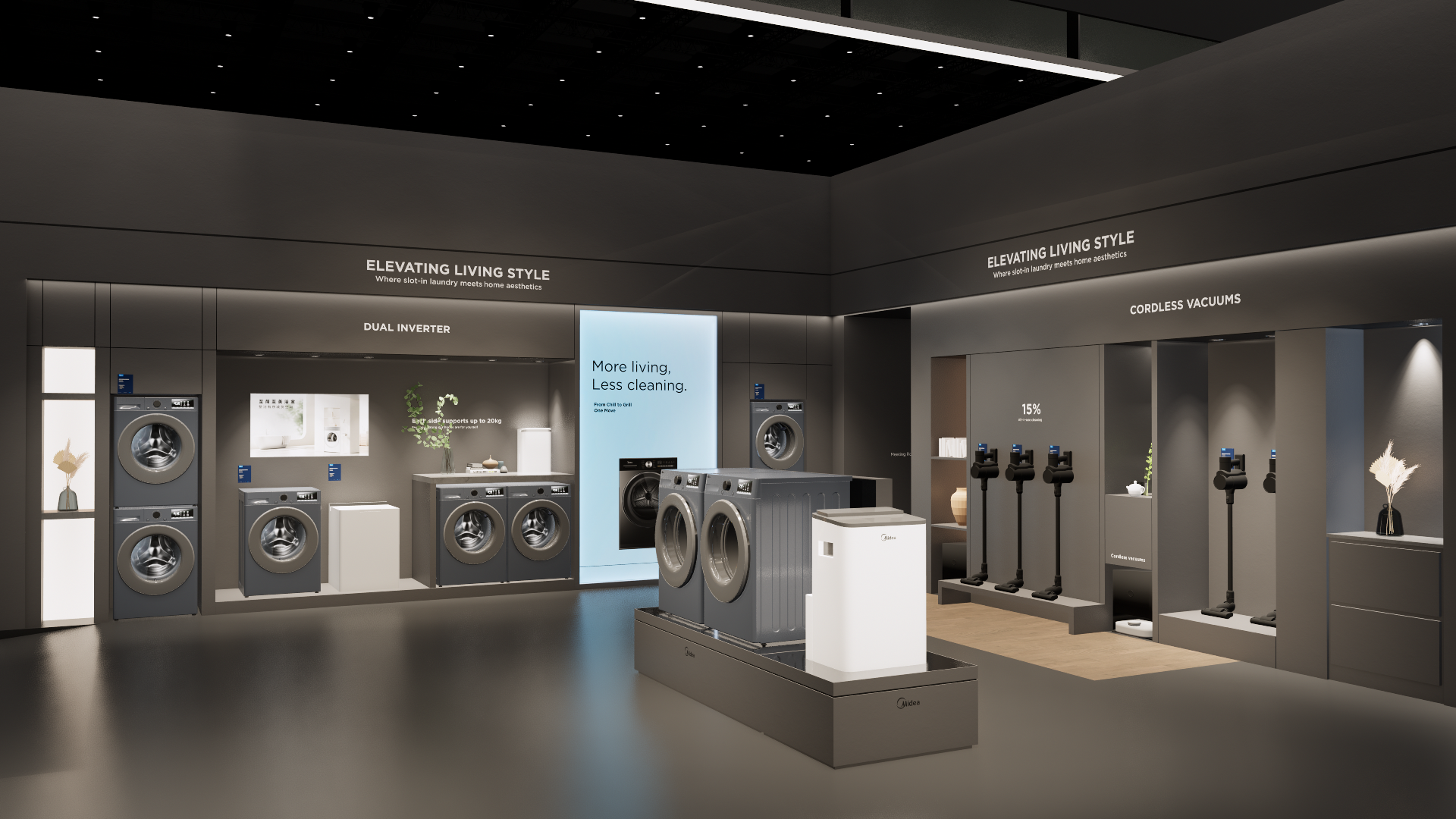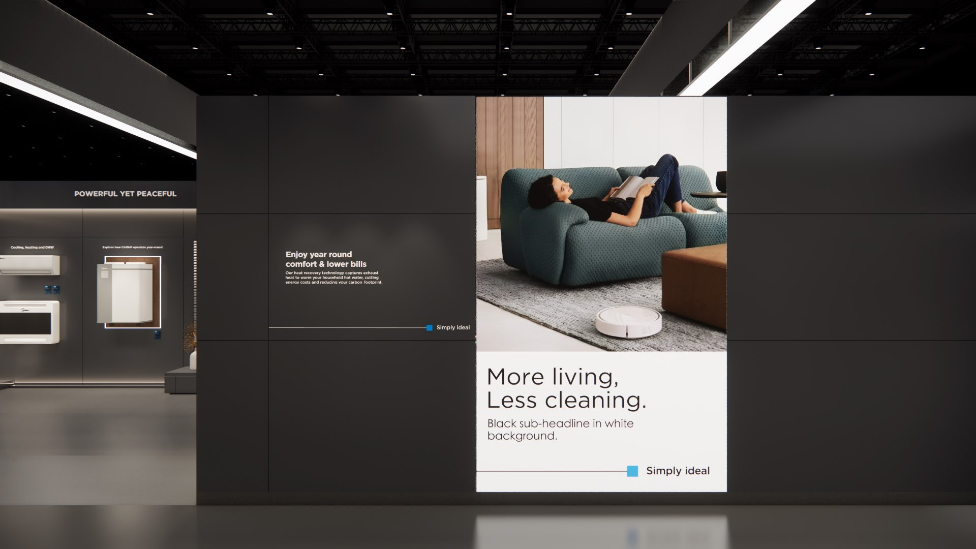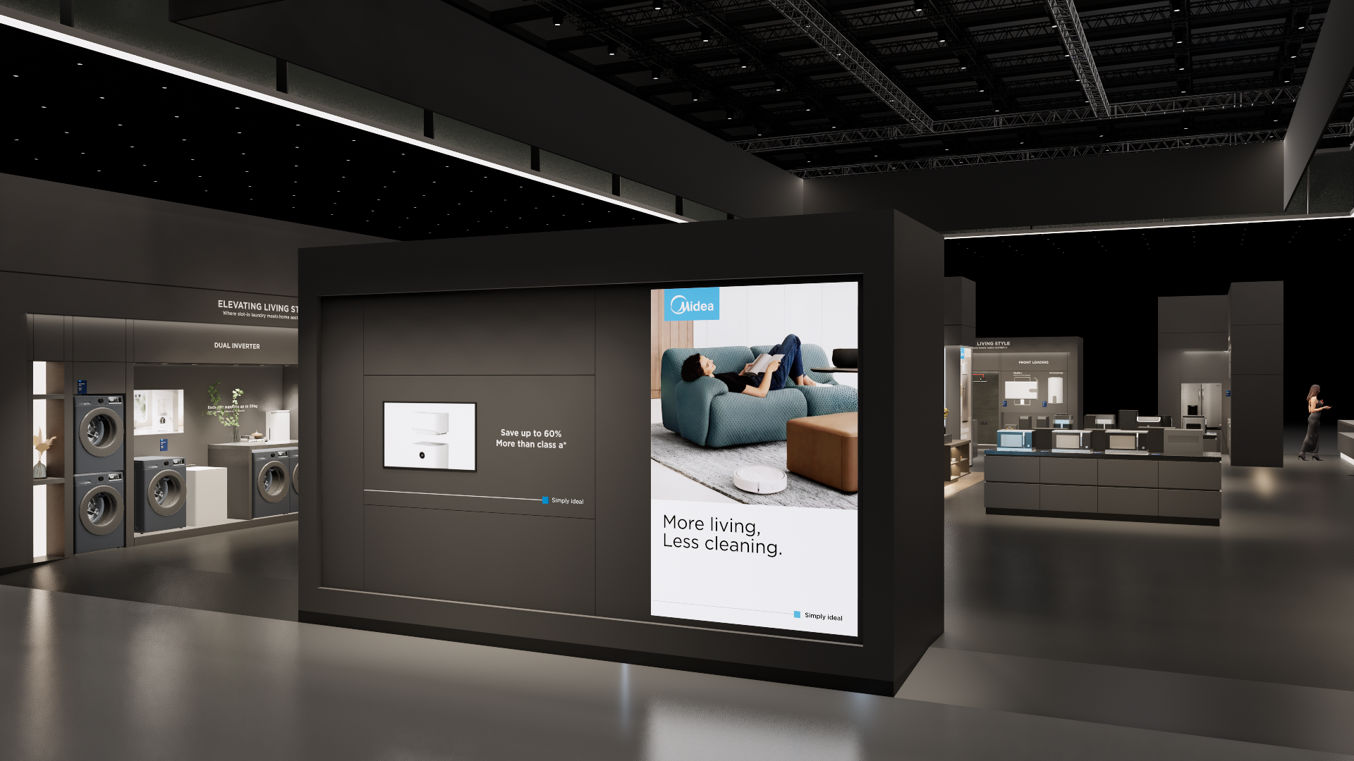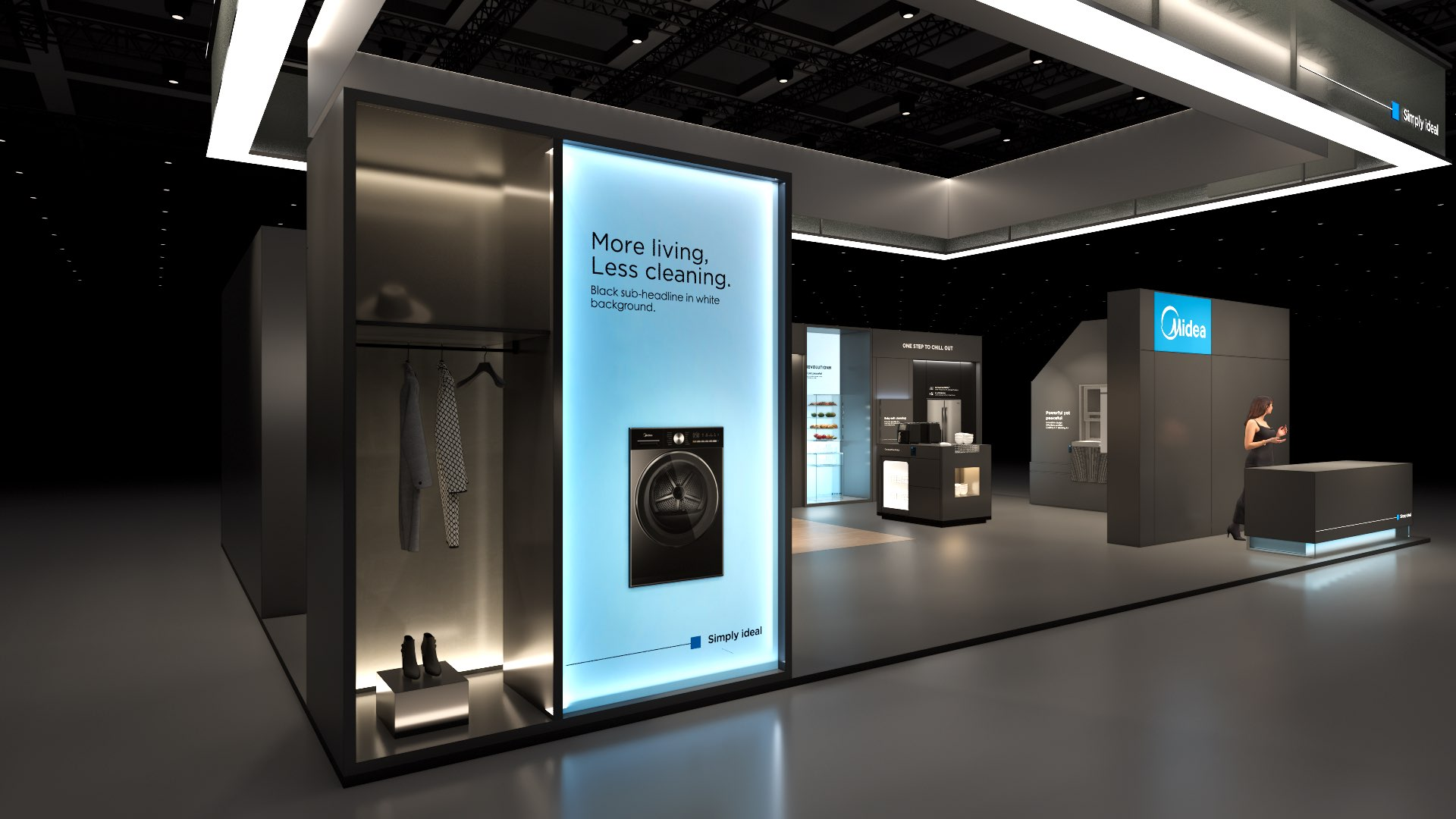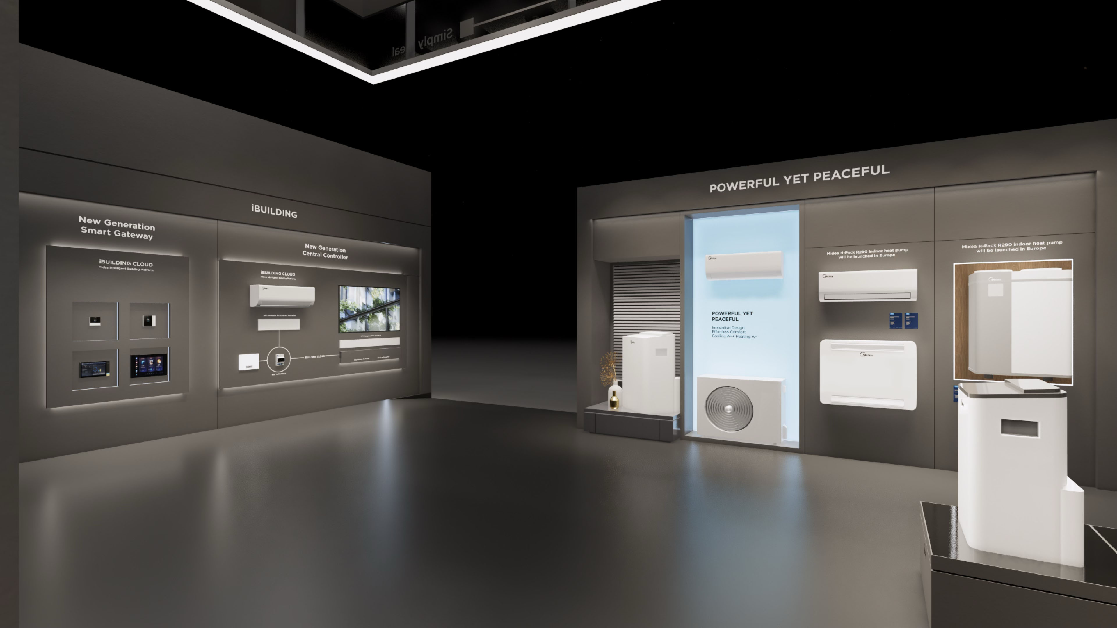 The large-size booth serves as a design reference for the “Air-Conditioning and Heating” scenario. It is designated as the exhibition space for the RAC, MBT, and KWHA business units and should be used as a guideline when developing related displays.
