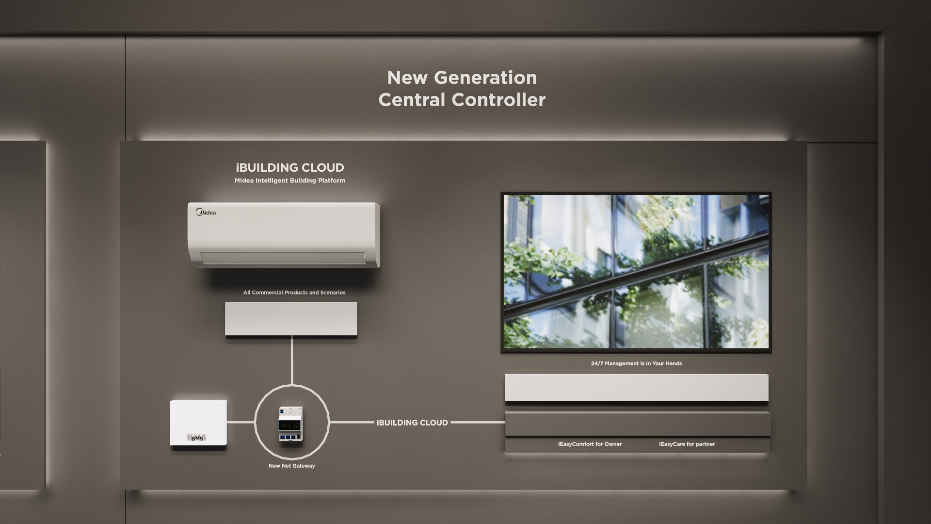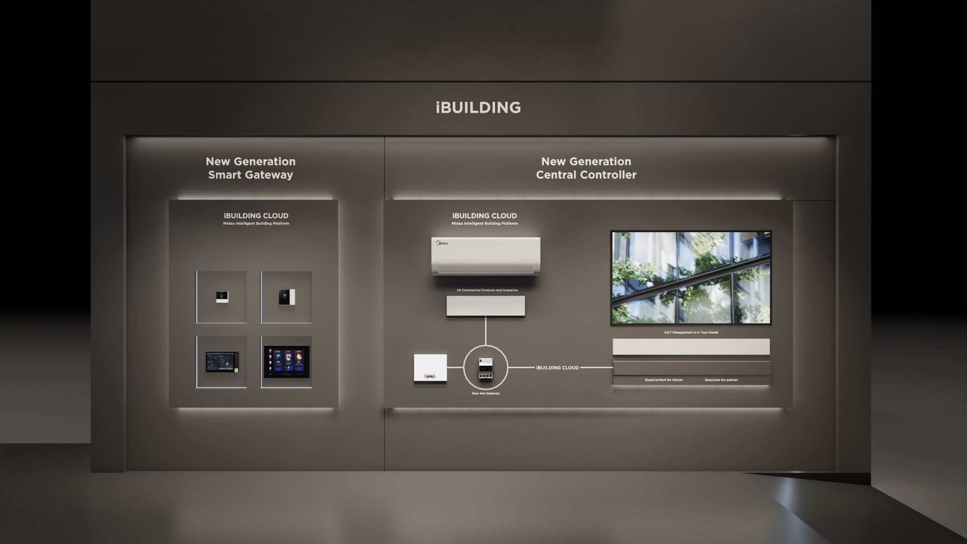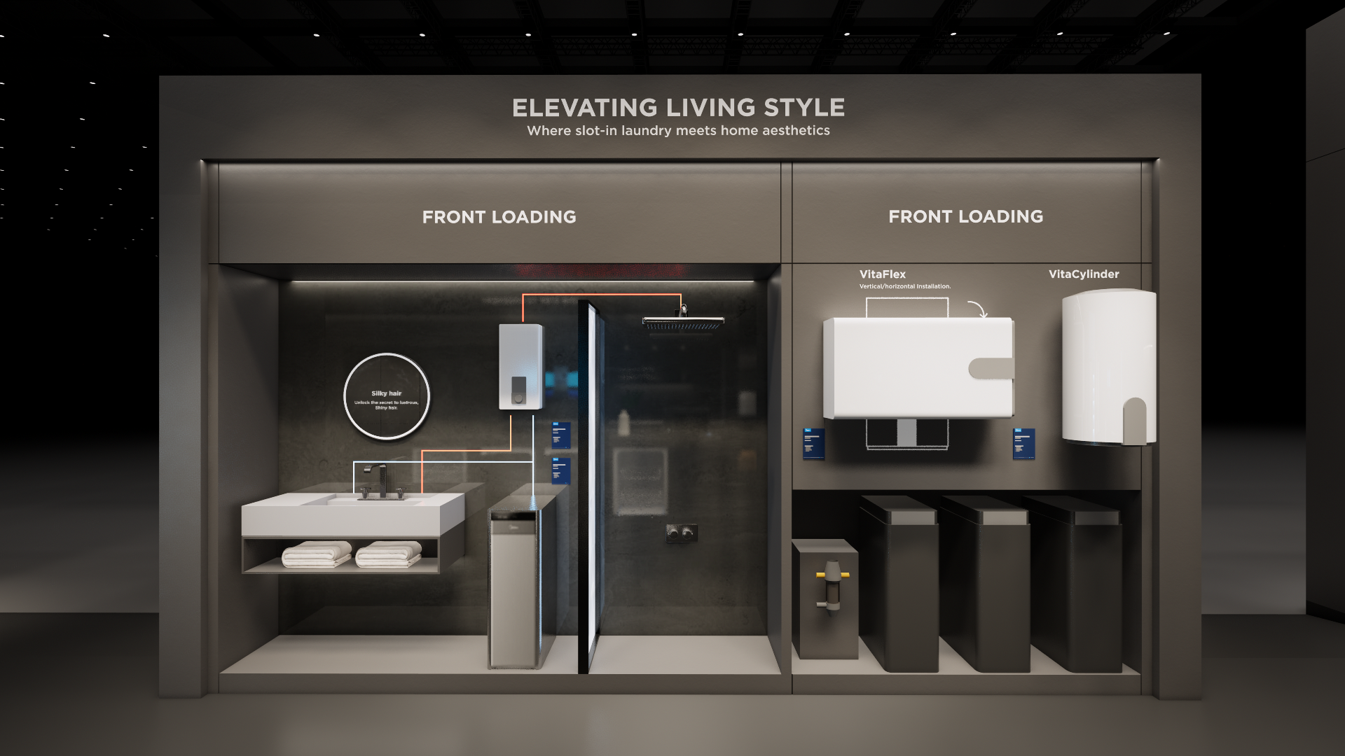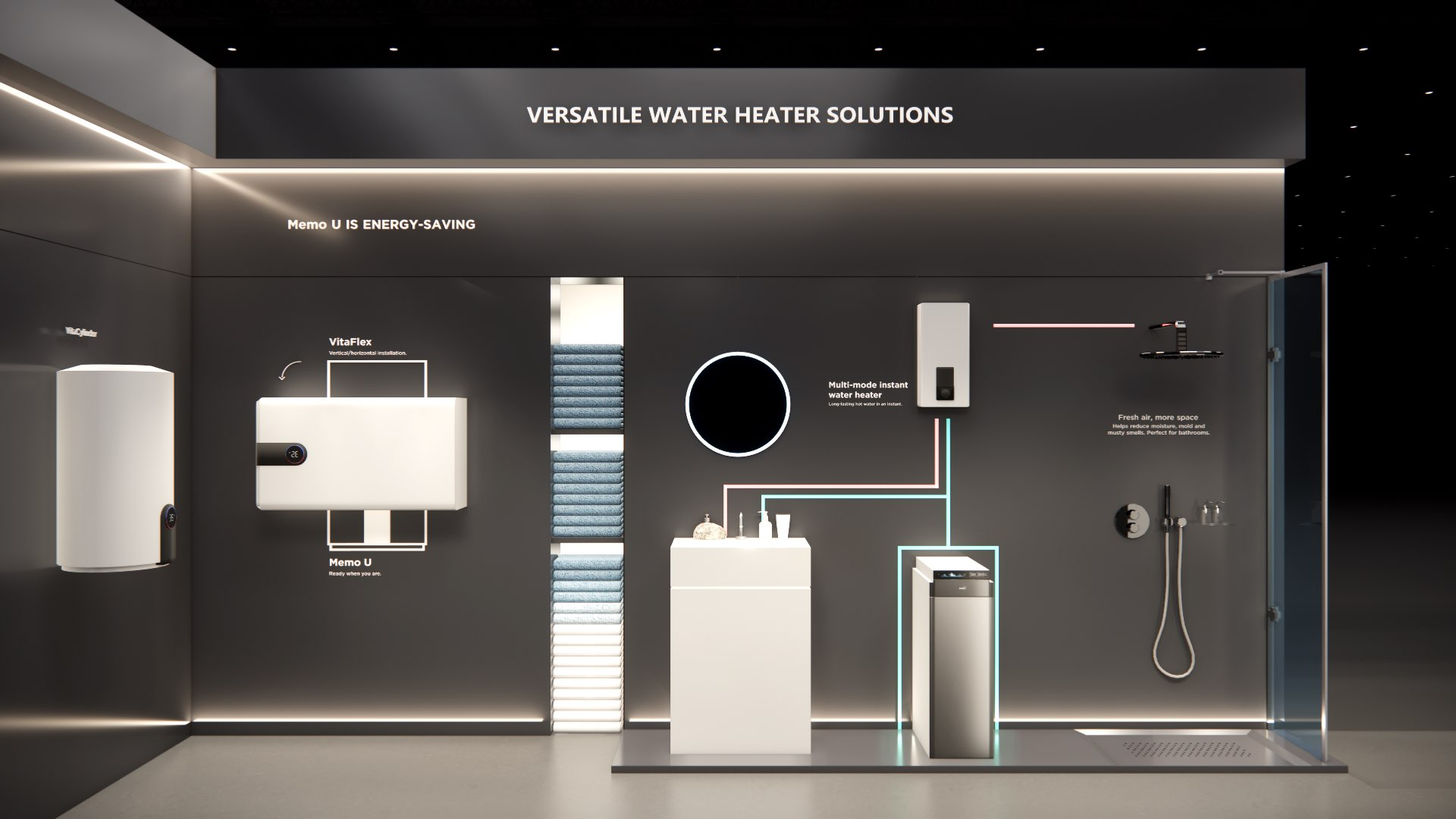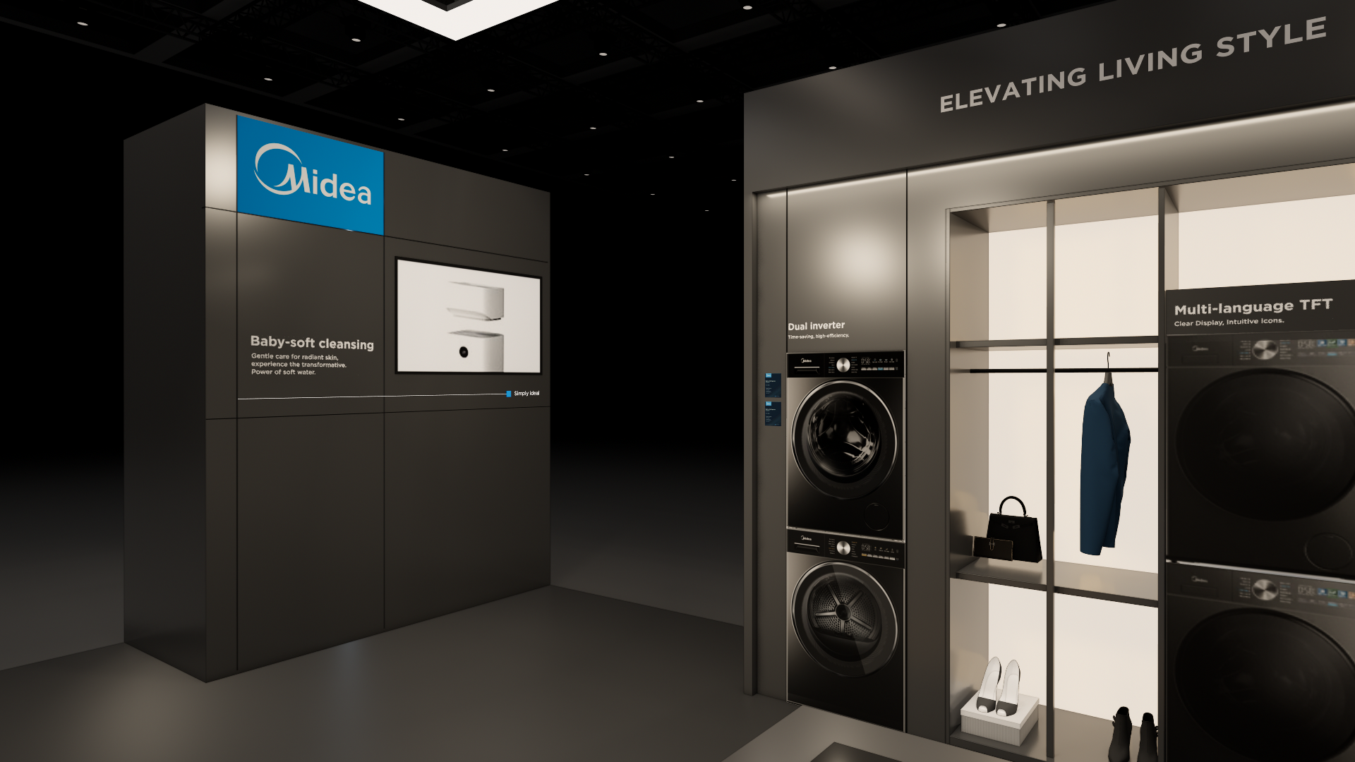 The large-size booth serves as a design reference for the “Air-Conditioning and Heating” scenario. It is designated as the exhibition space for the RAC, MBT, and KWHA business units and should be used as a guideline when developing related displays.