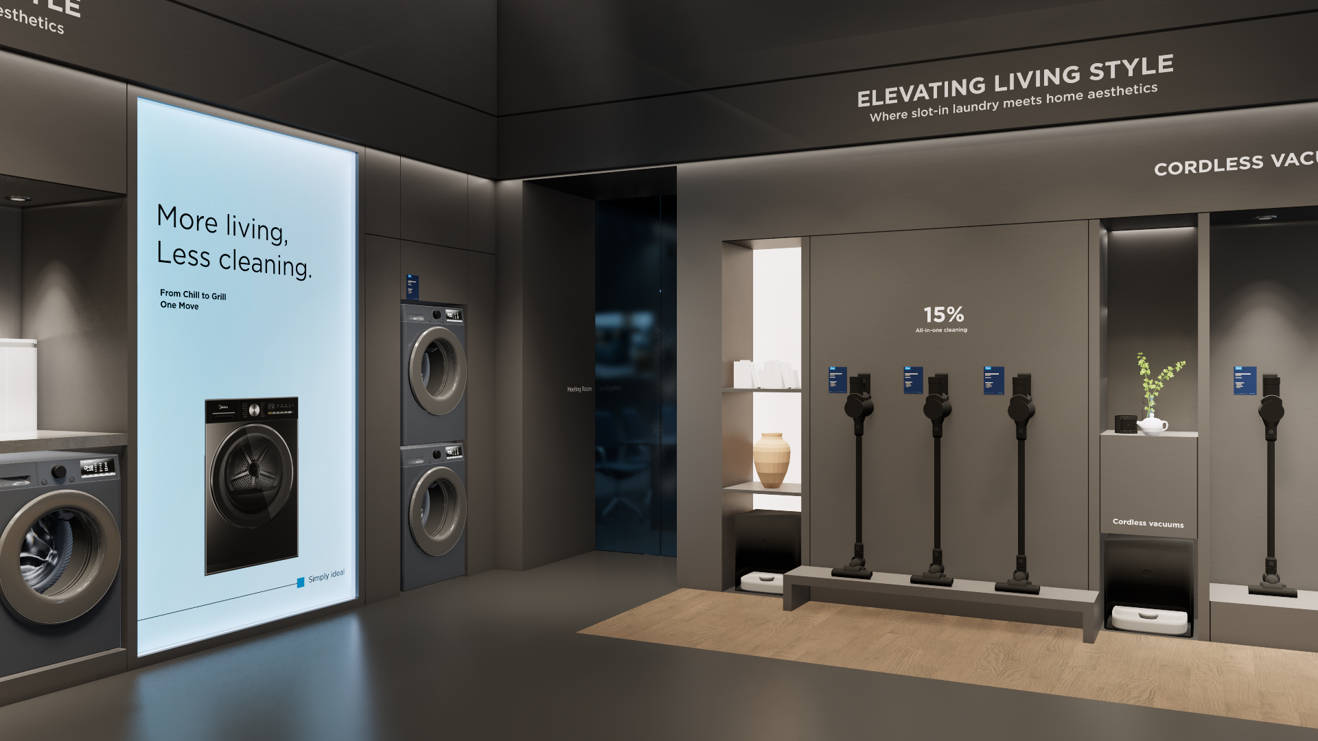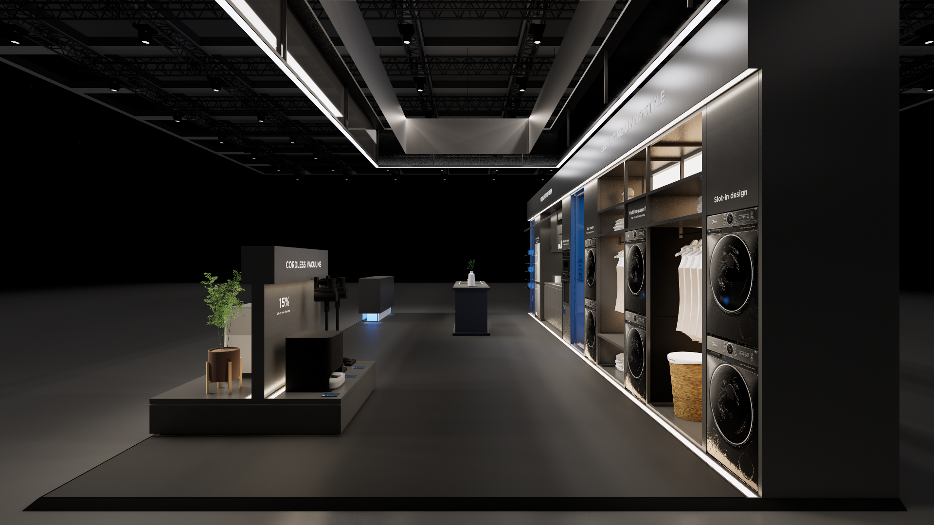 The medium-size booth serves as a design reference for the ‘Environment and Cleaning’ scenario. It is designated as the exhibition space for the SDA and FFC business units and should be used as a guideline when developing related displays.