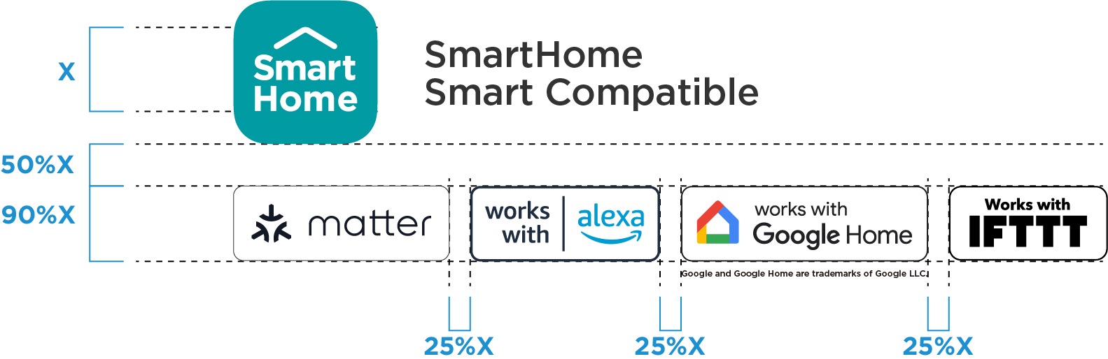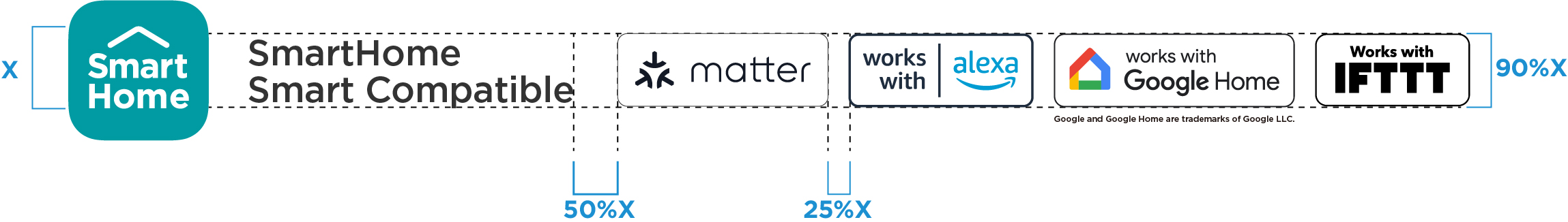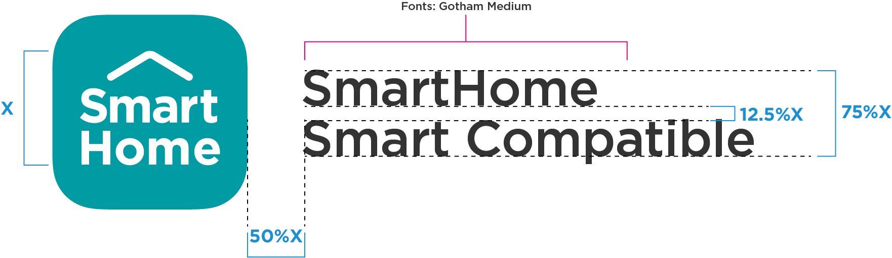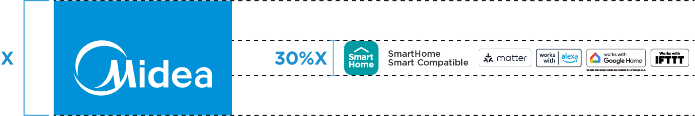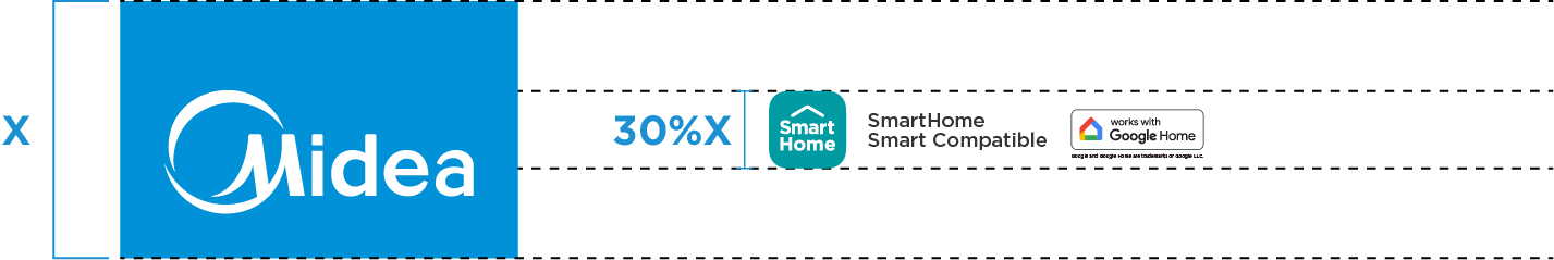 A minimum space around the SmartHome Icon and co-brand labels should be kept clear of other graphics. The clear space is based on the grey SmartHome icon which is 50% of the height of the SmartHome Icon.