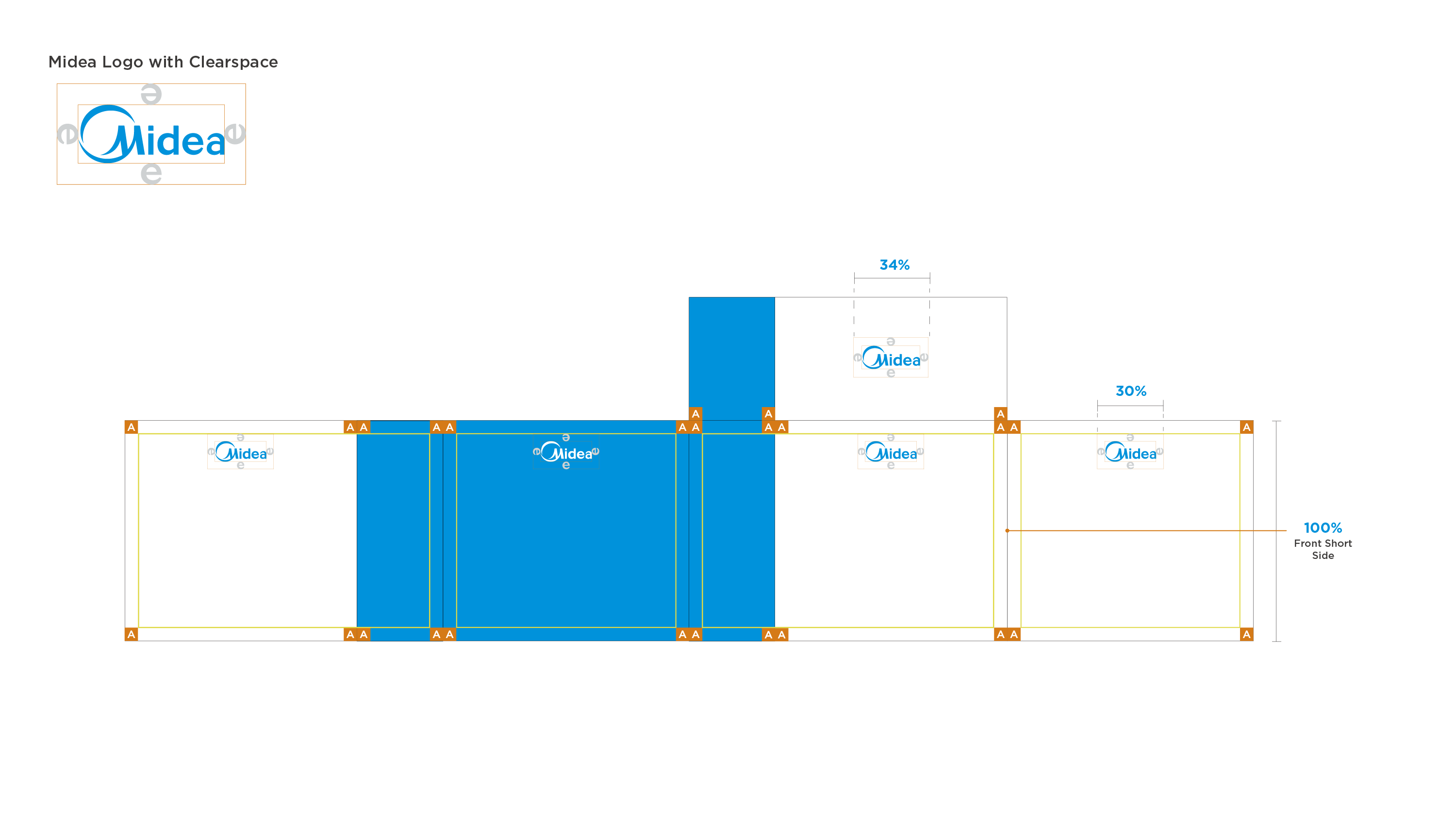 - The logo length is 34% of the front short side;