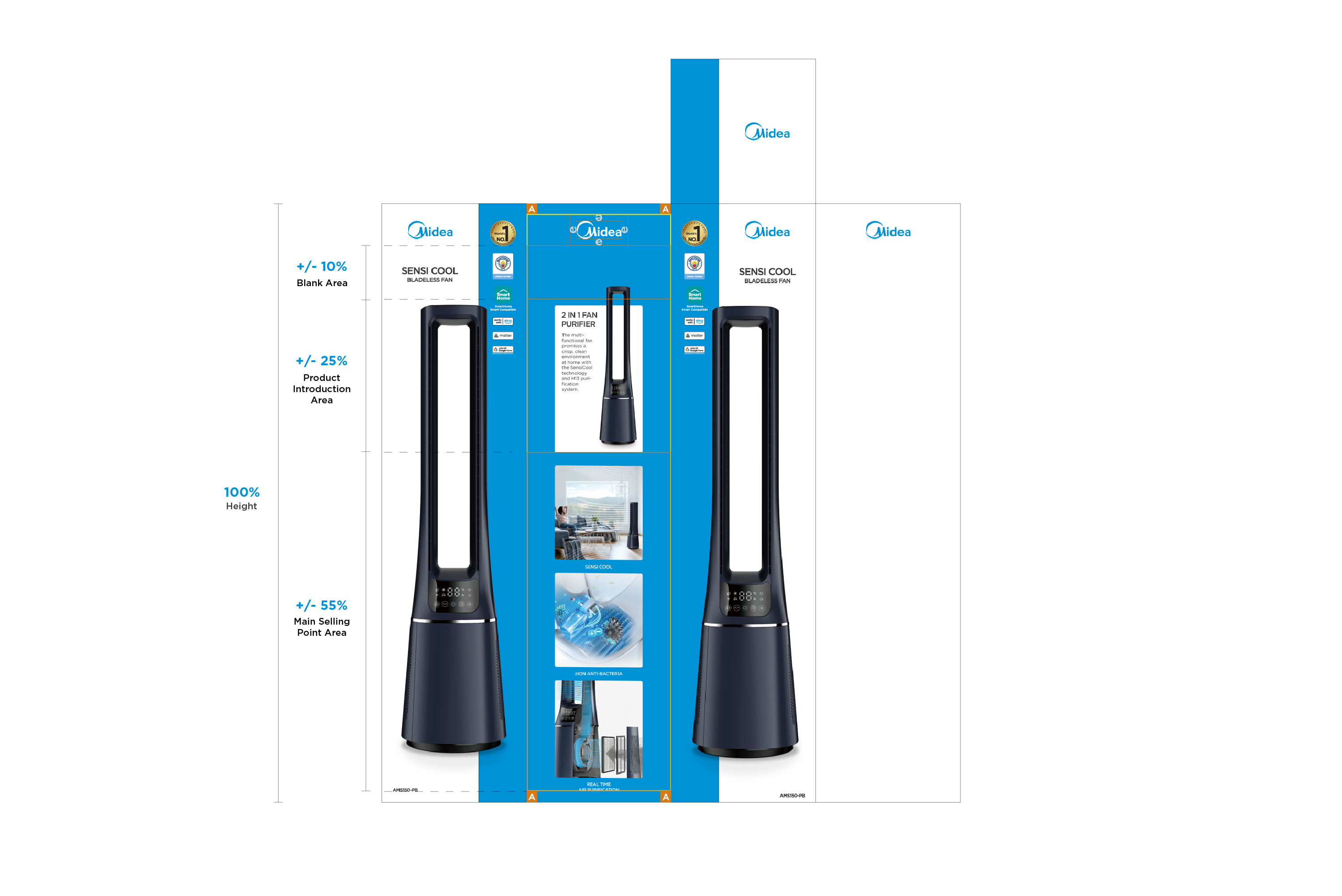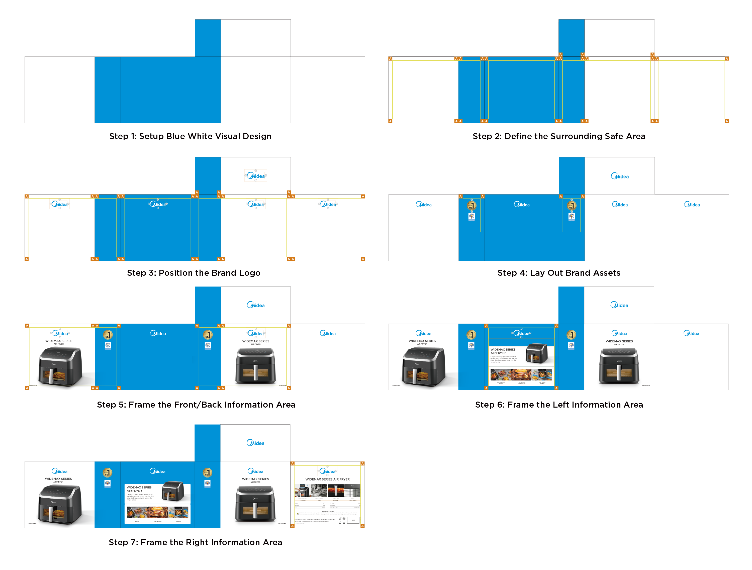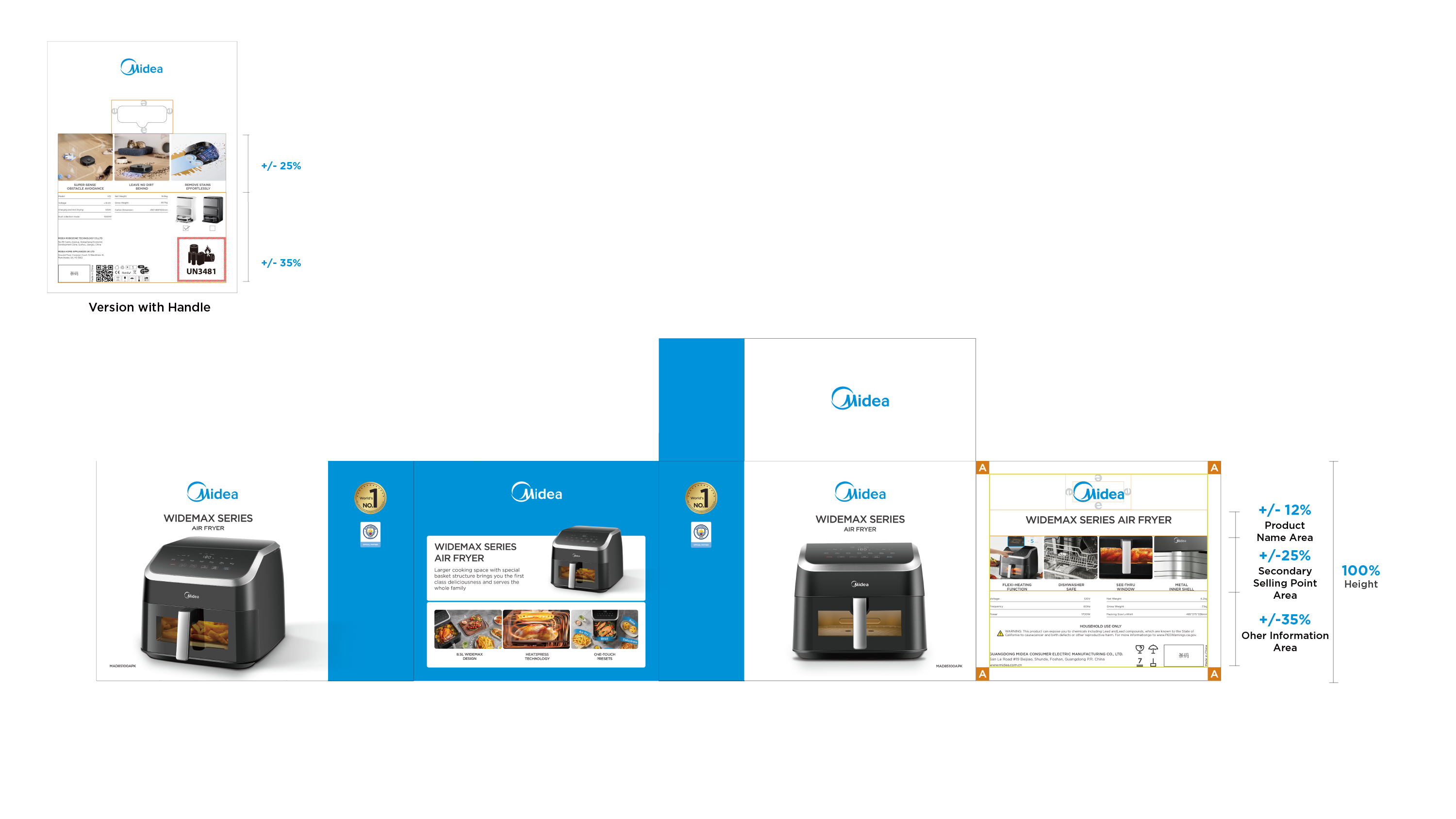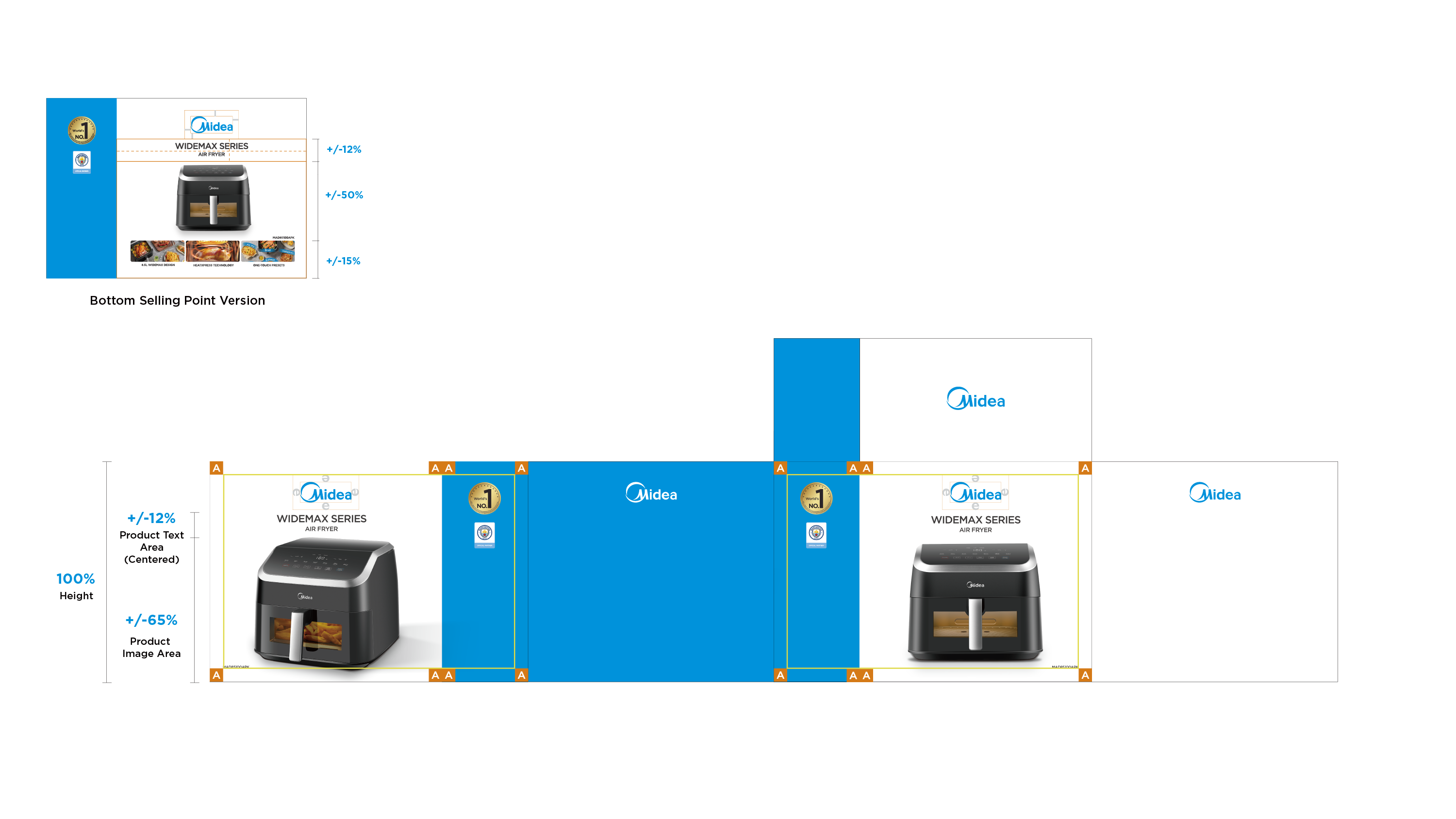 - Midea Blue: blue bar visual design to highlight the packaging;