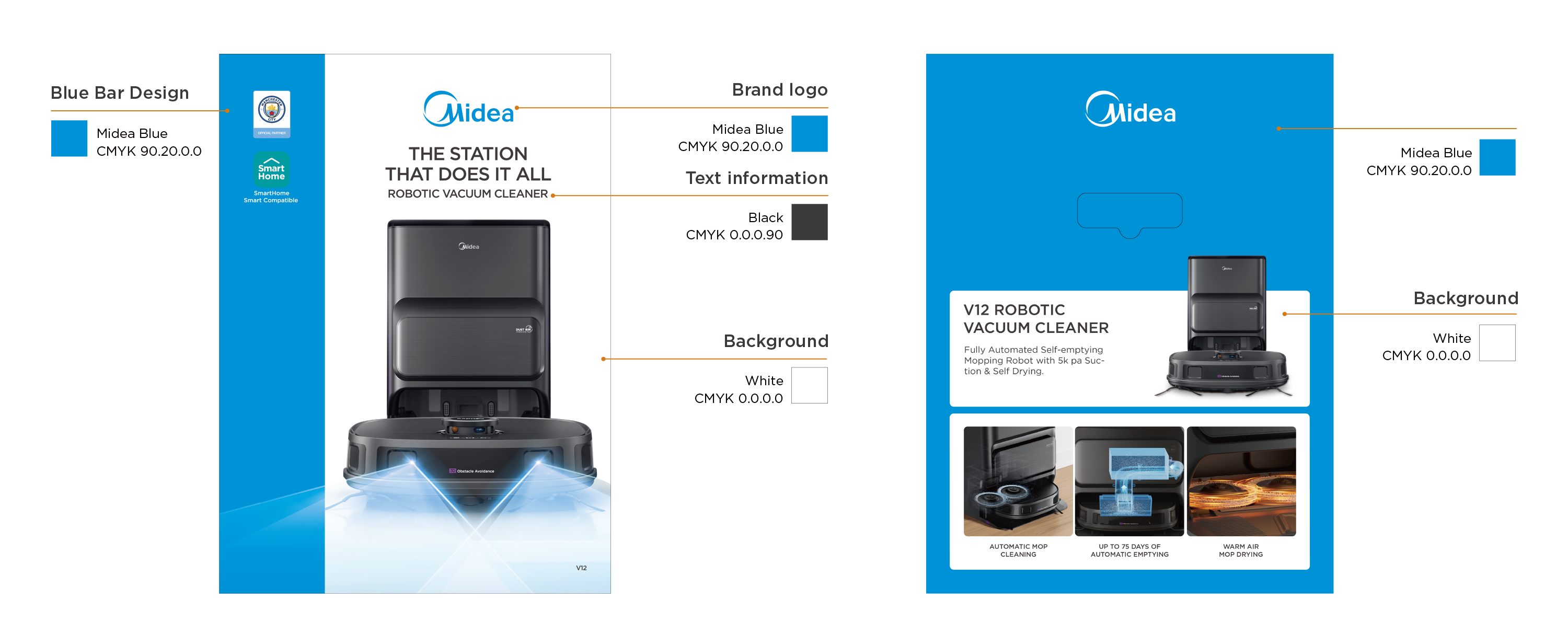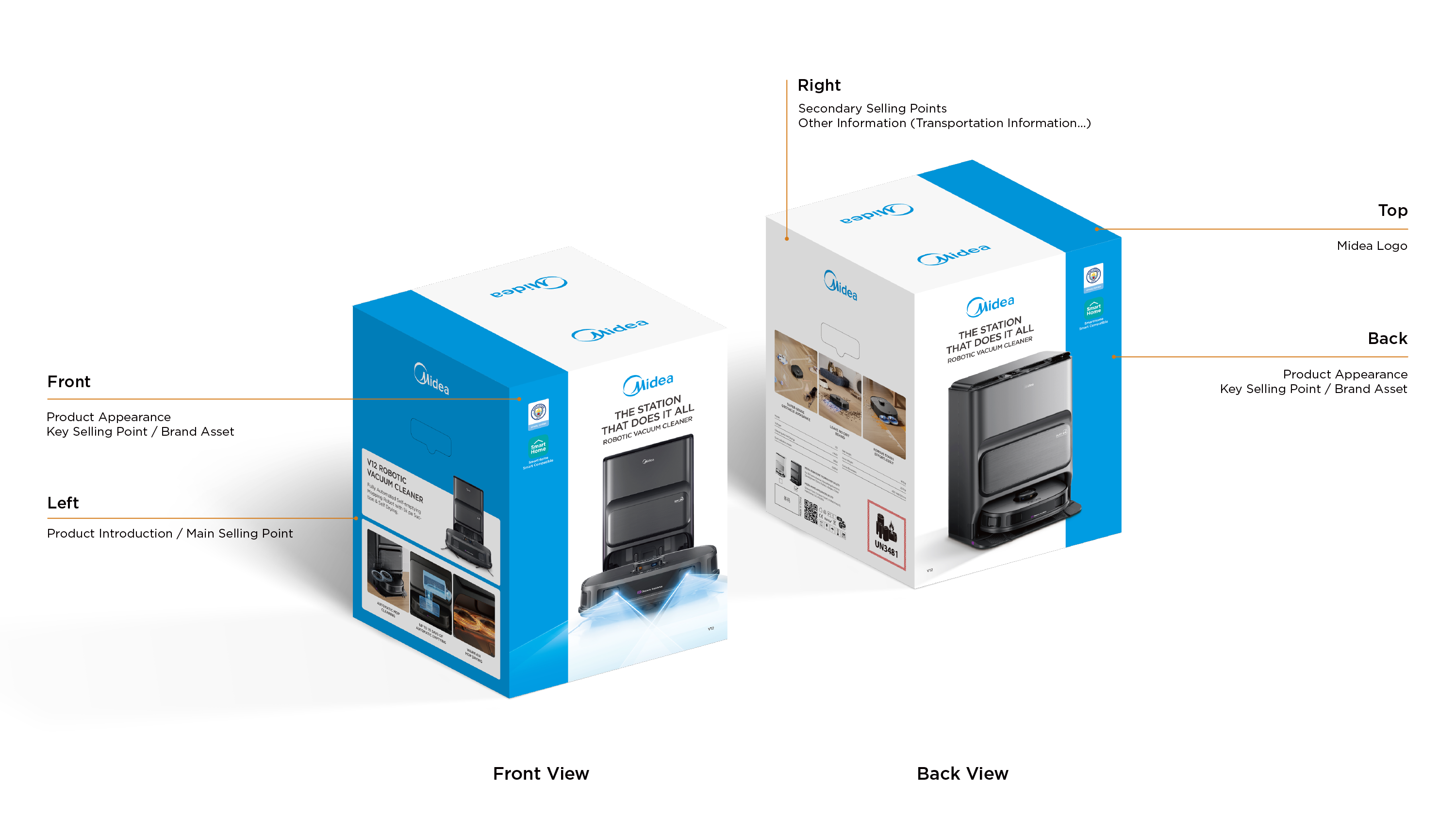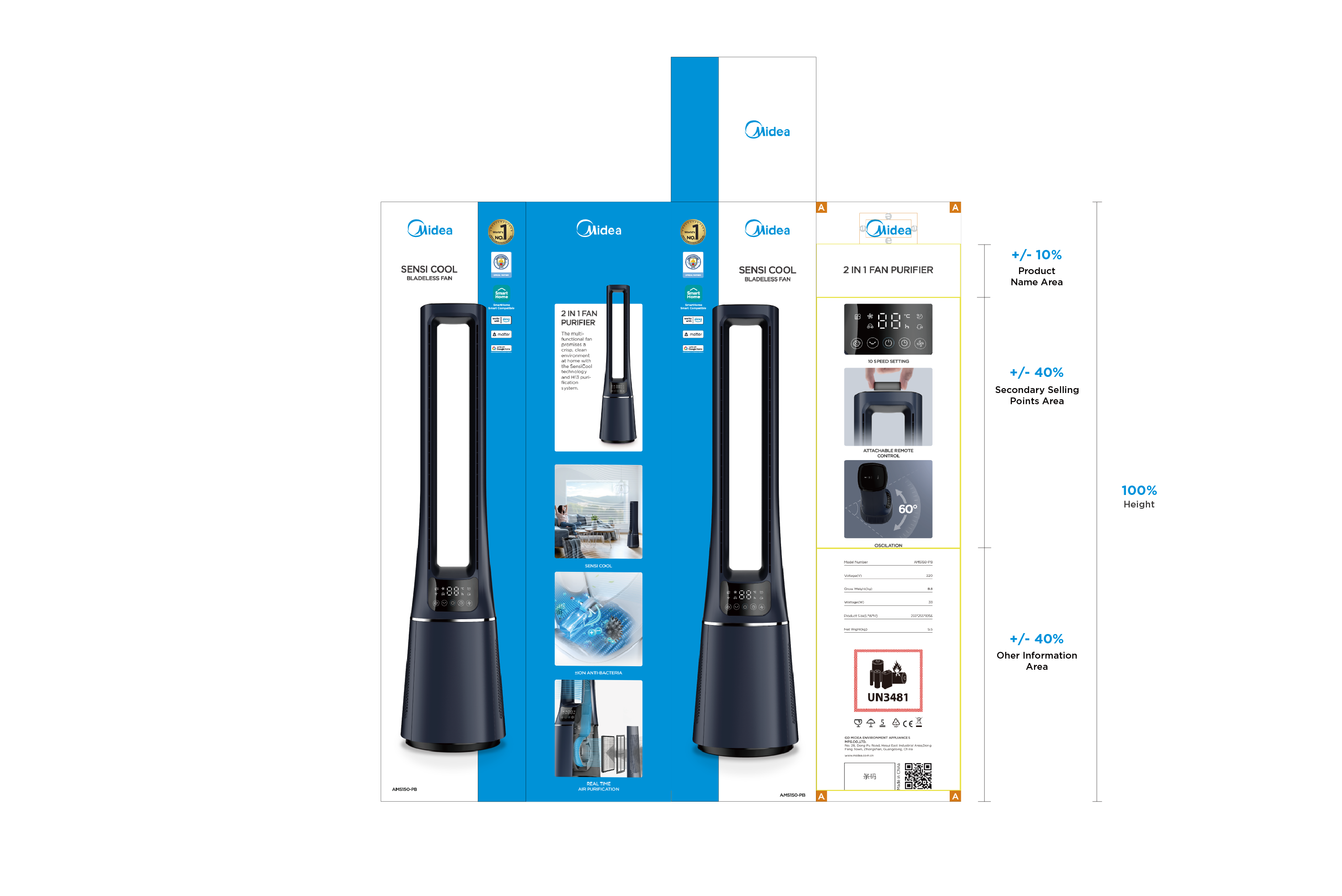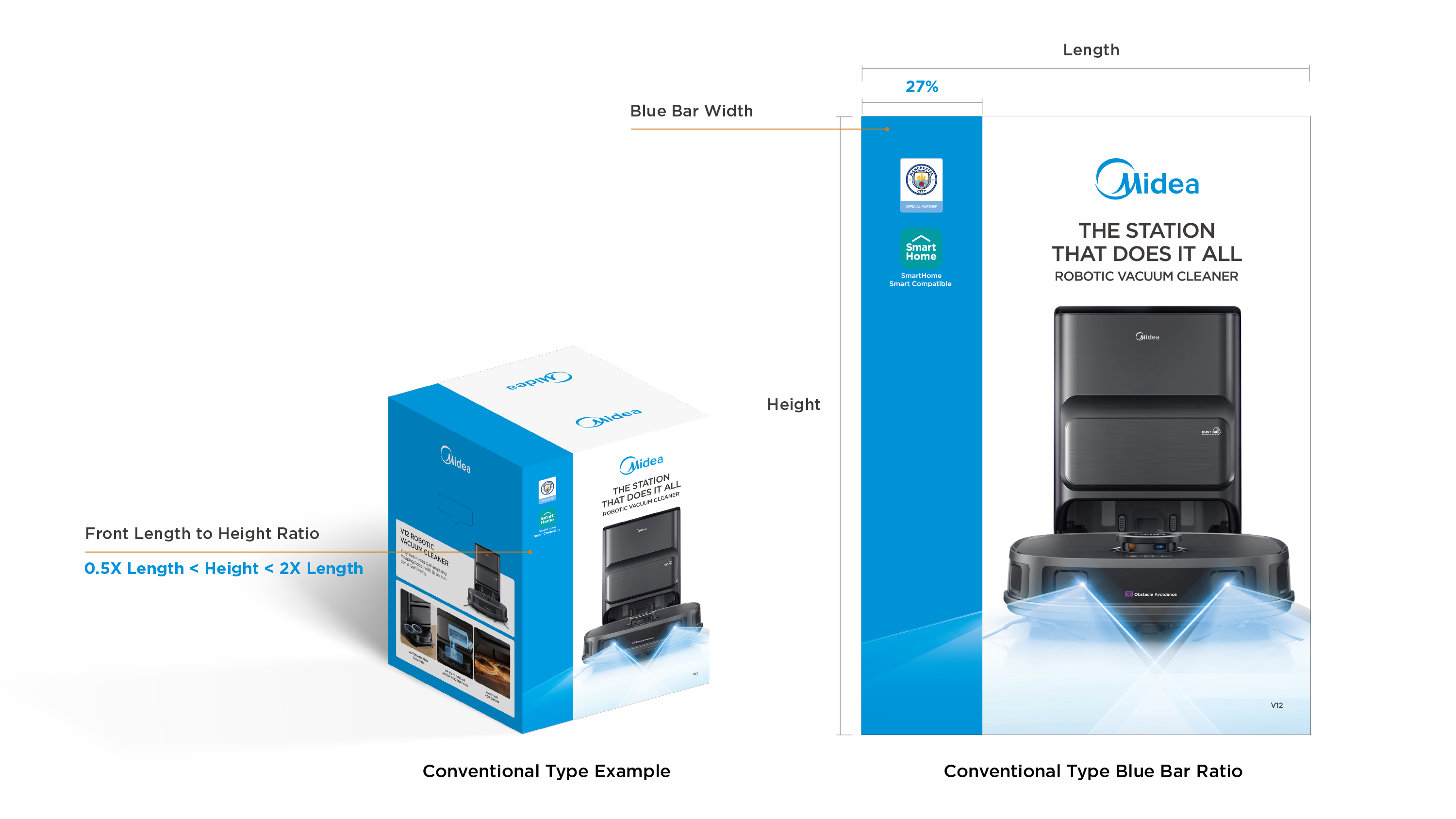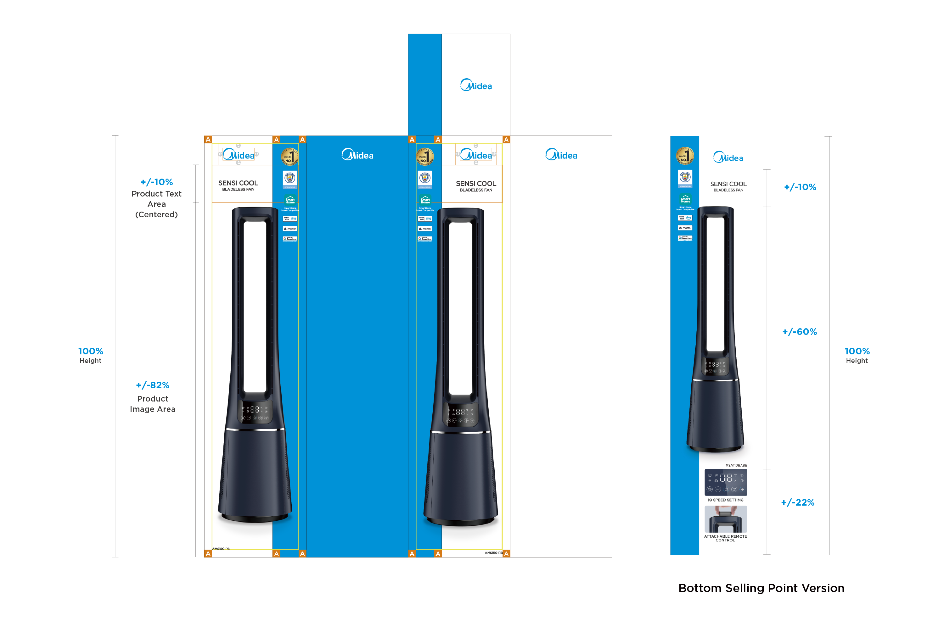- Midea Blue: blue bar visual design to highlight the packaging;