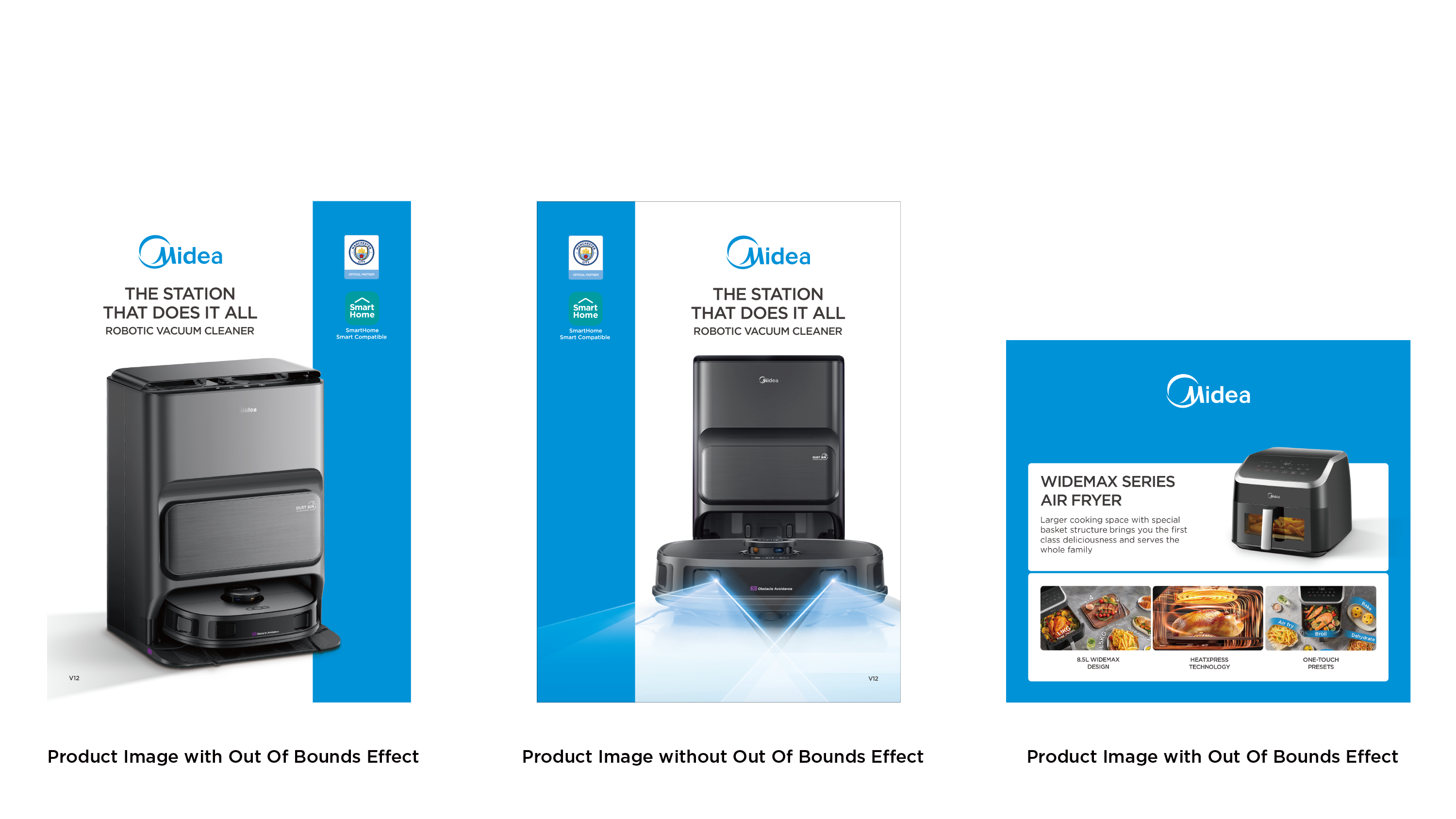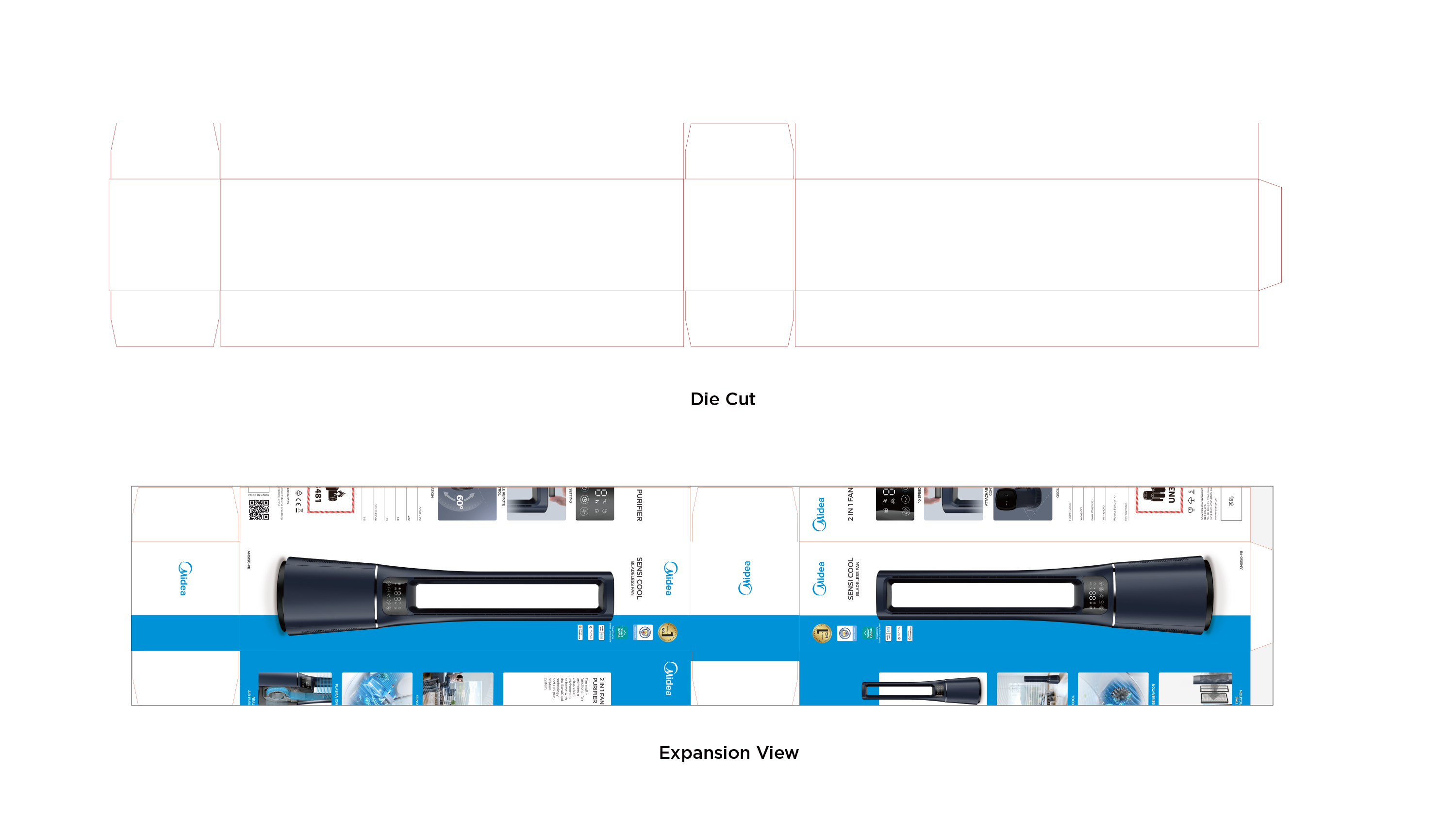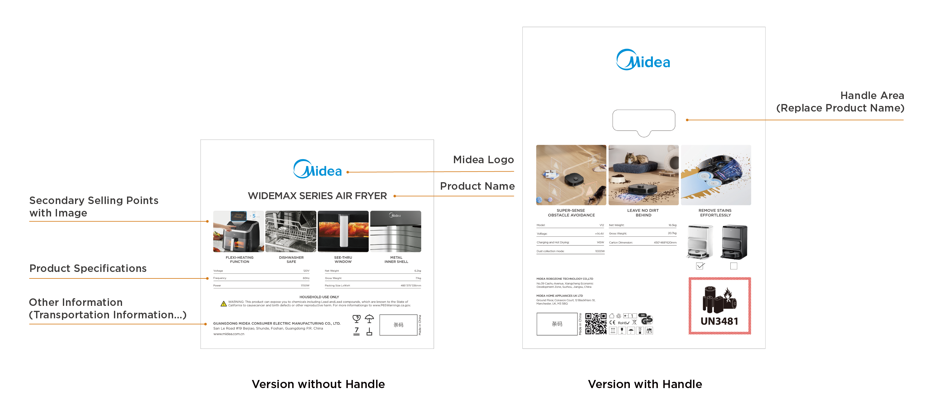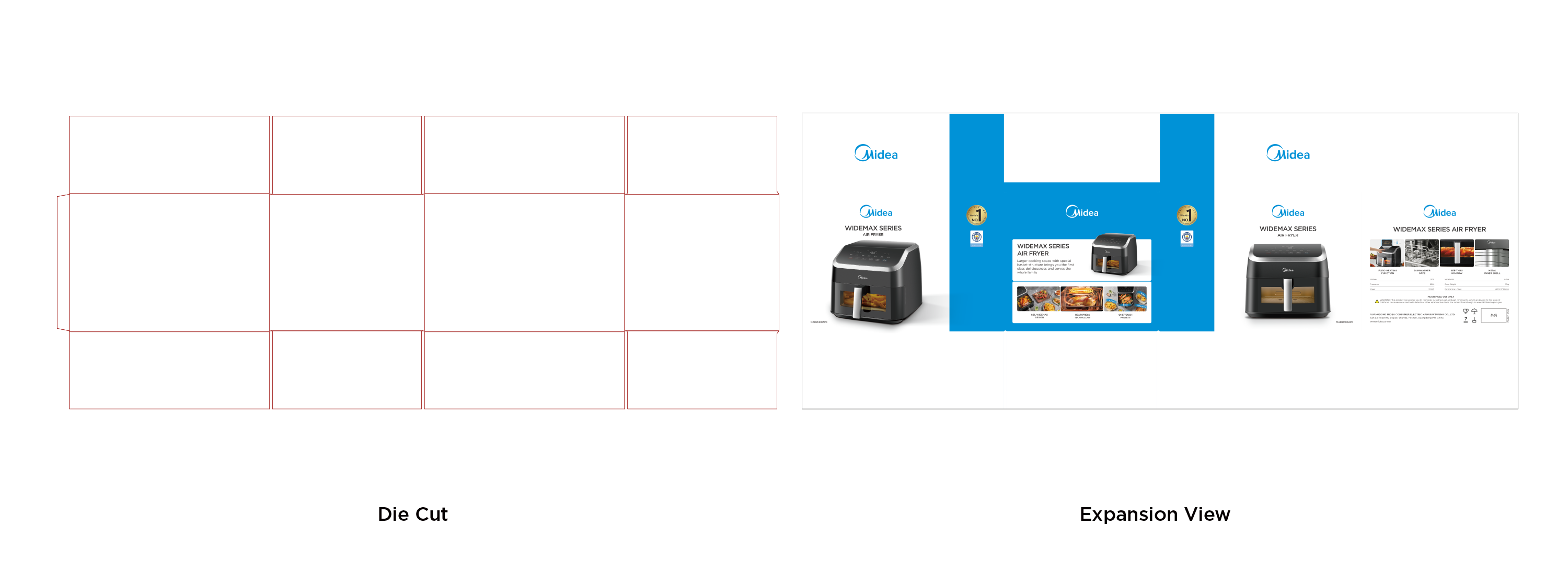 - Midea Blue: blue bar visual design to highlight the packaging;