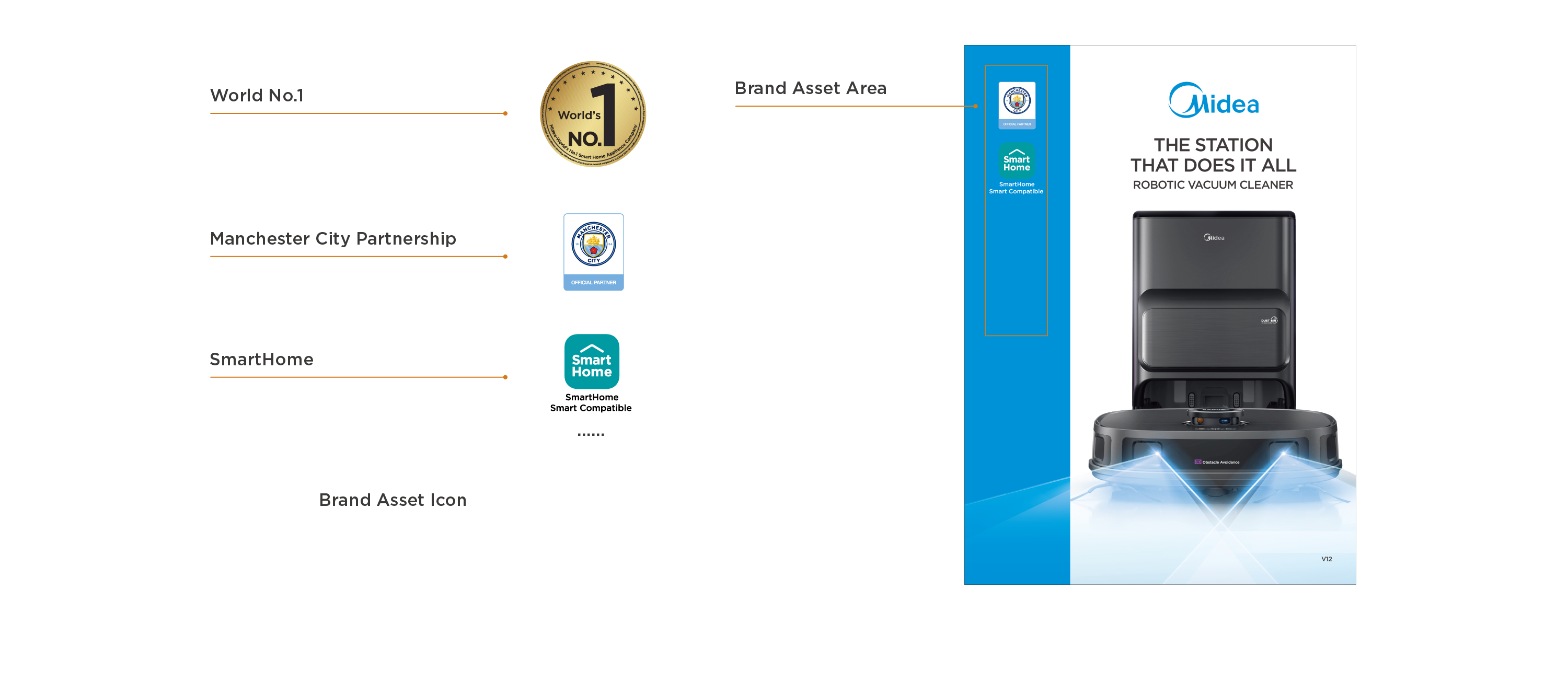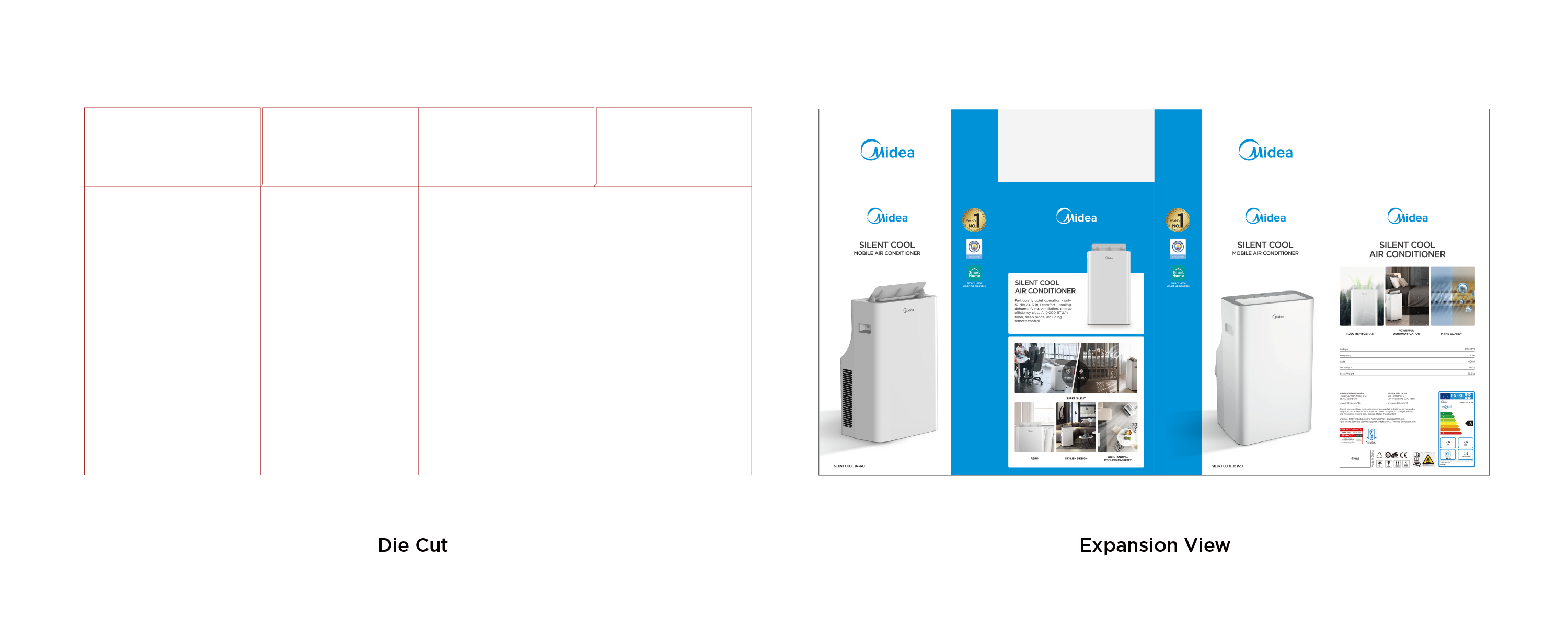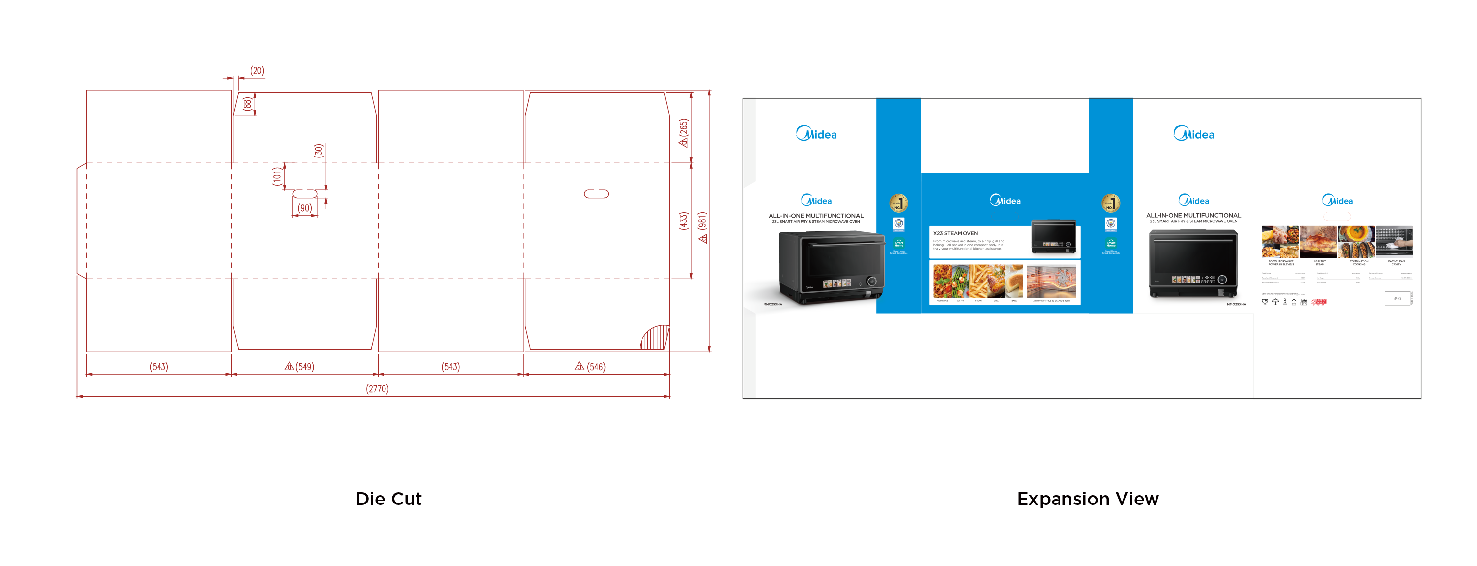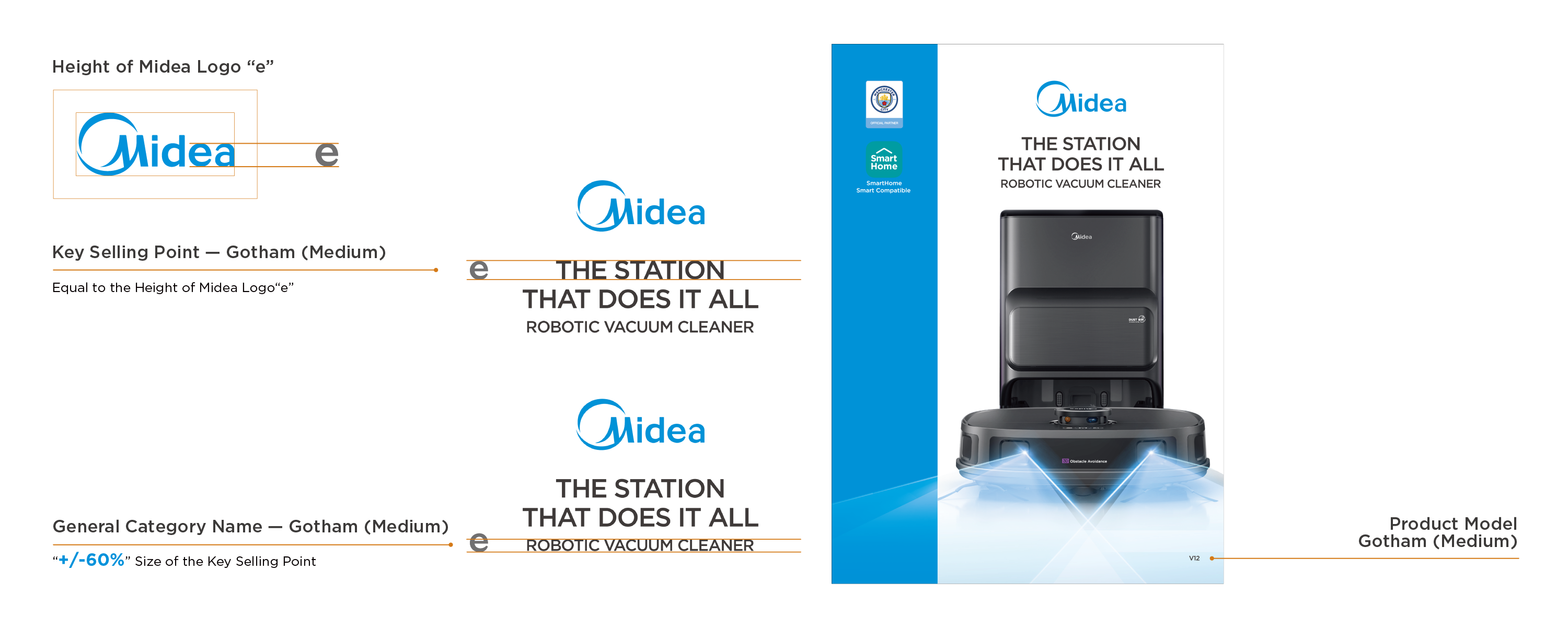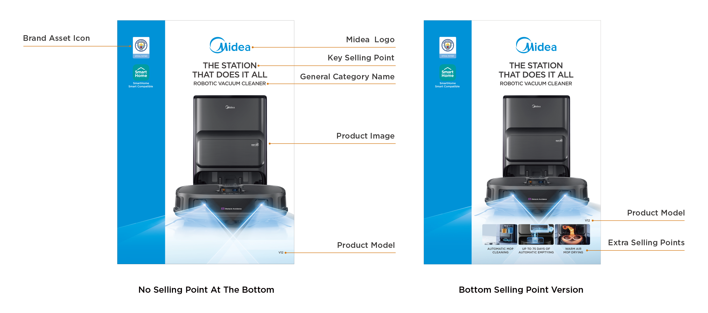 - Midea Blue: blue bar visual design to highlight the packaging;