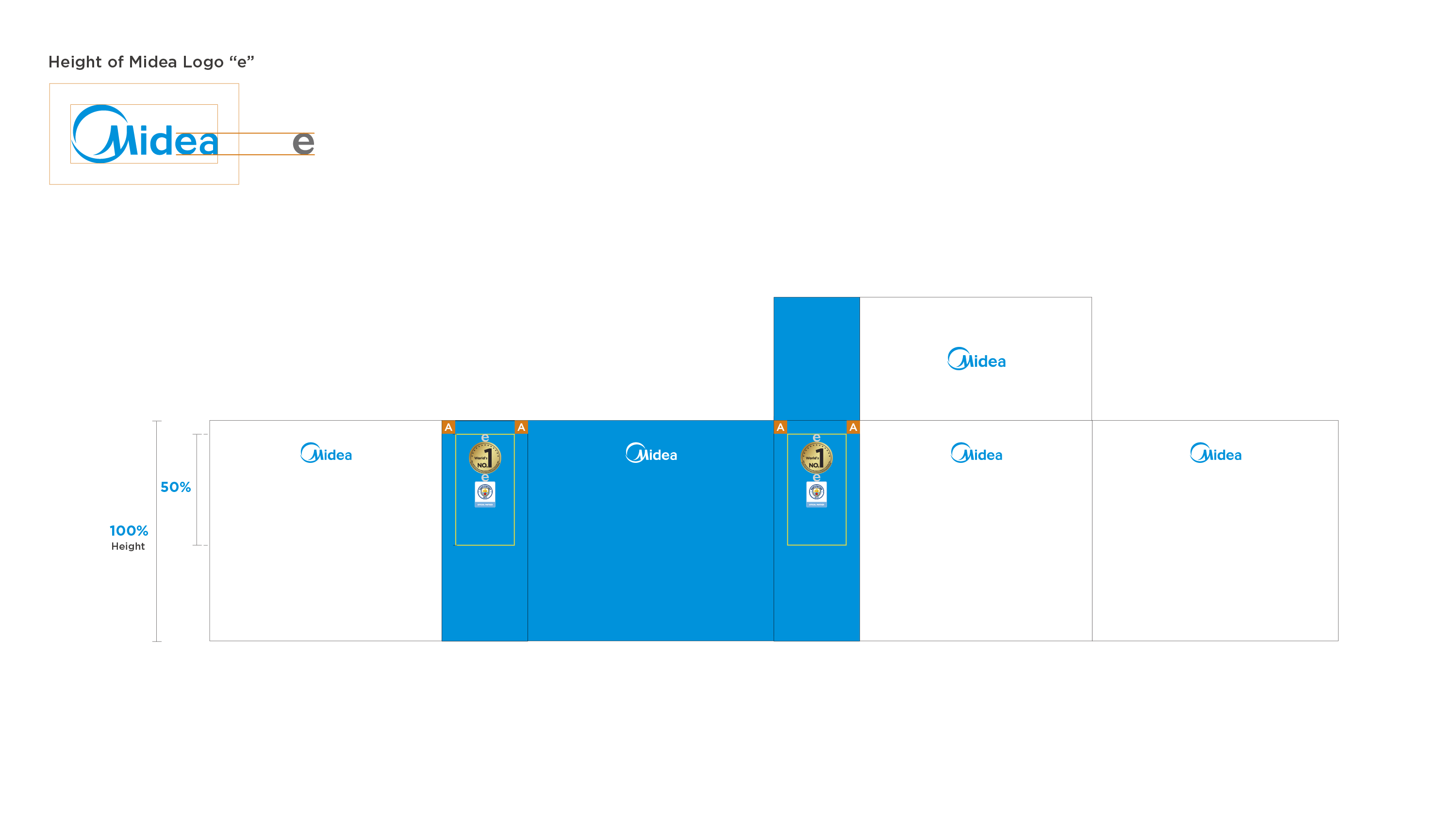 Take "Midea" logo "e" as the height reference: