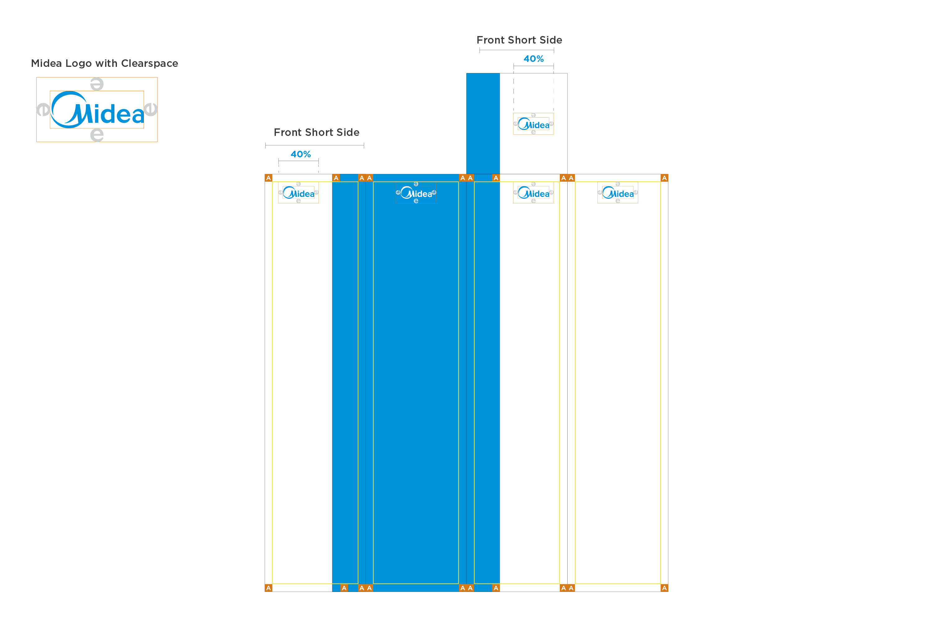 - The logo length is 40% of the front short side;