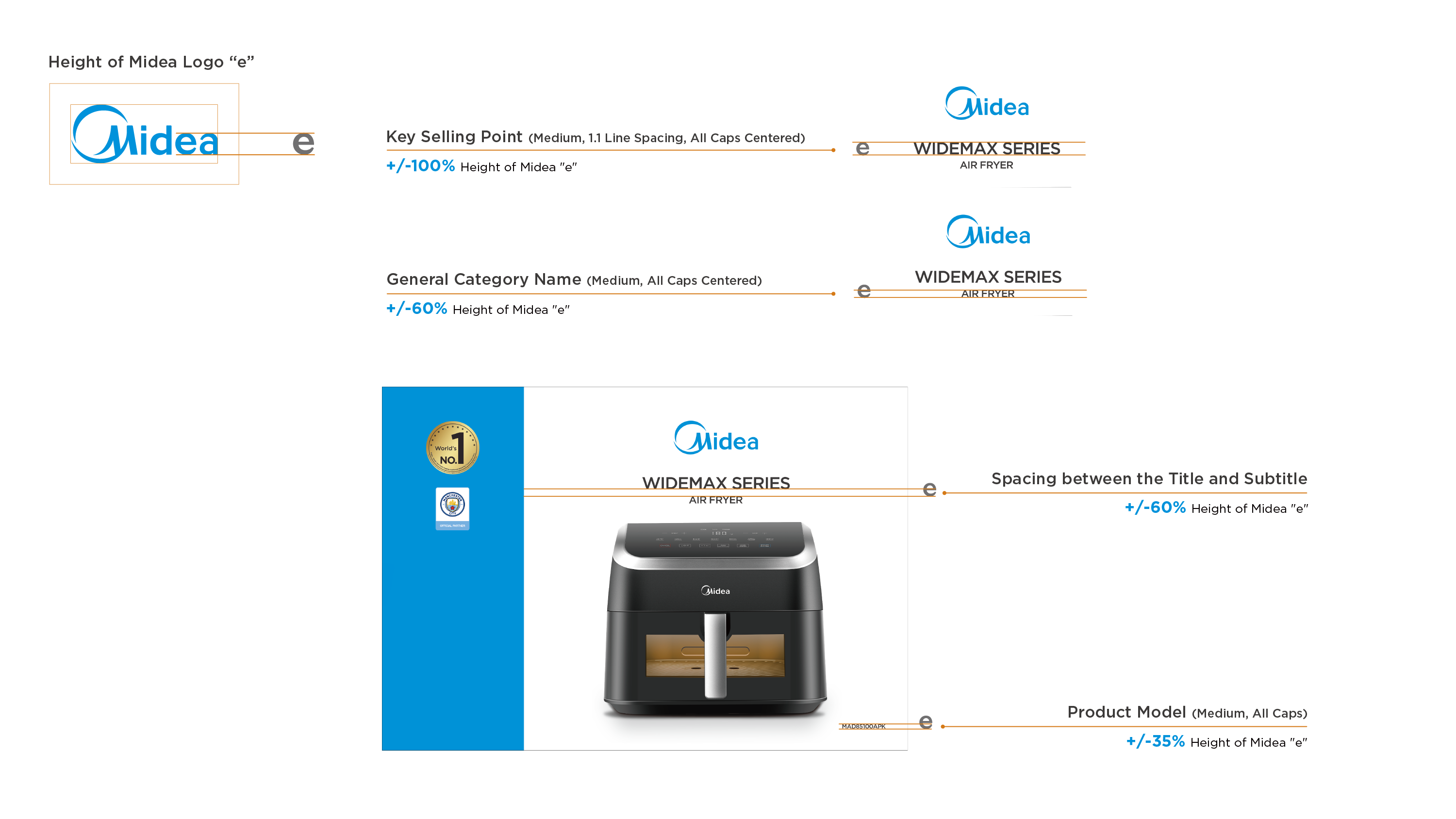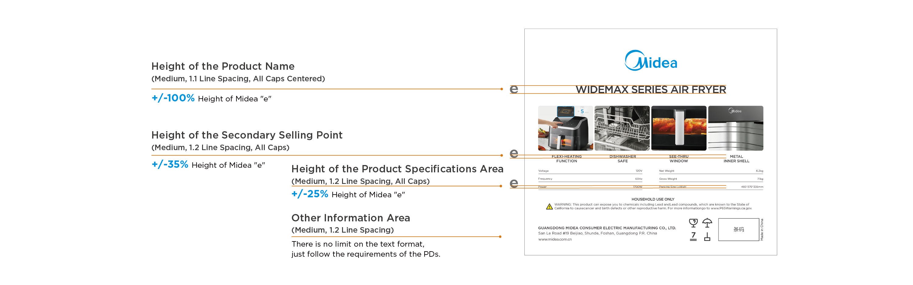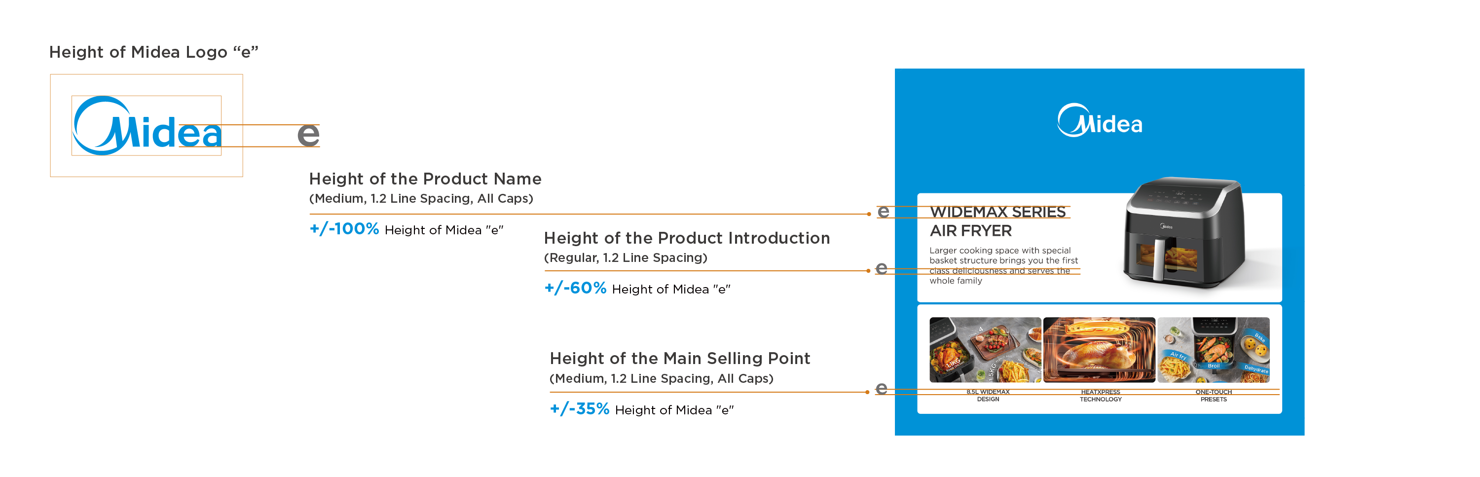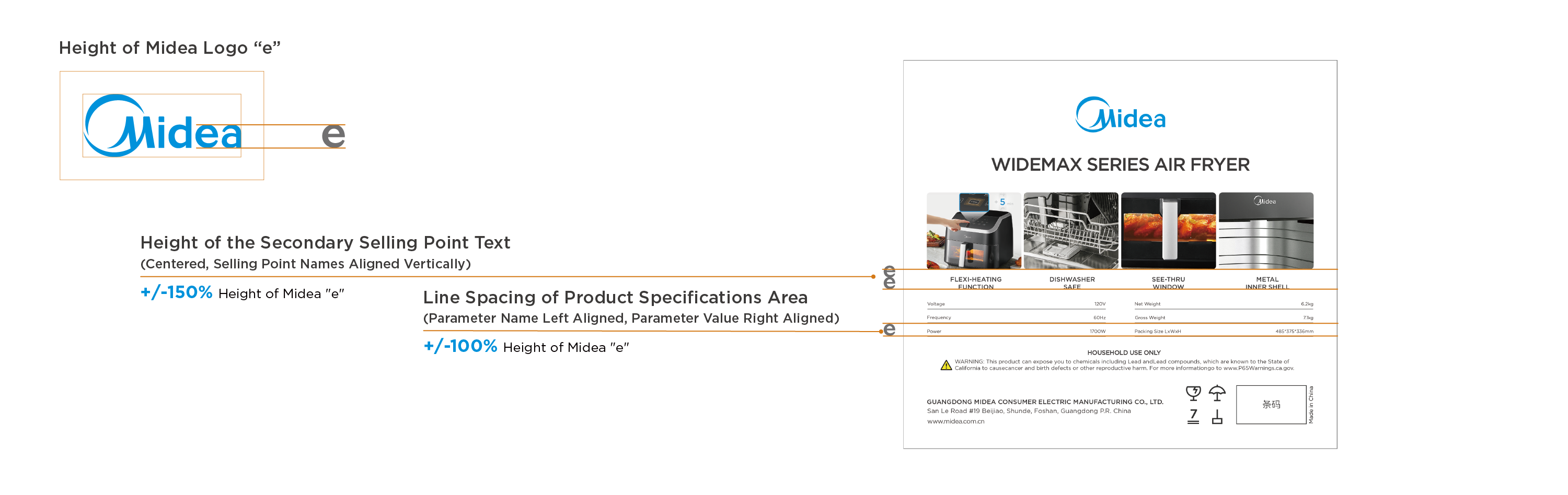 Generally, take "Midea" logo "e" as the height reference: