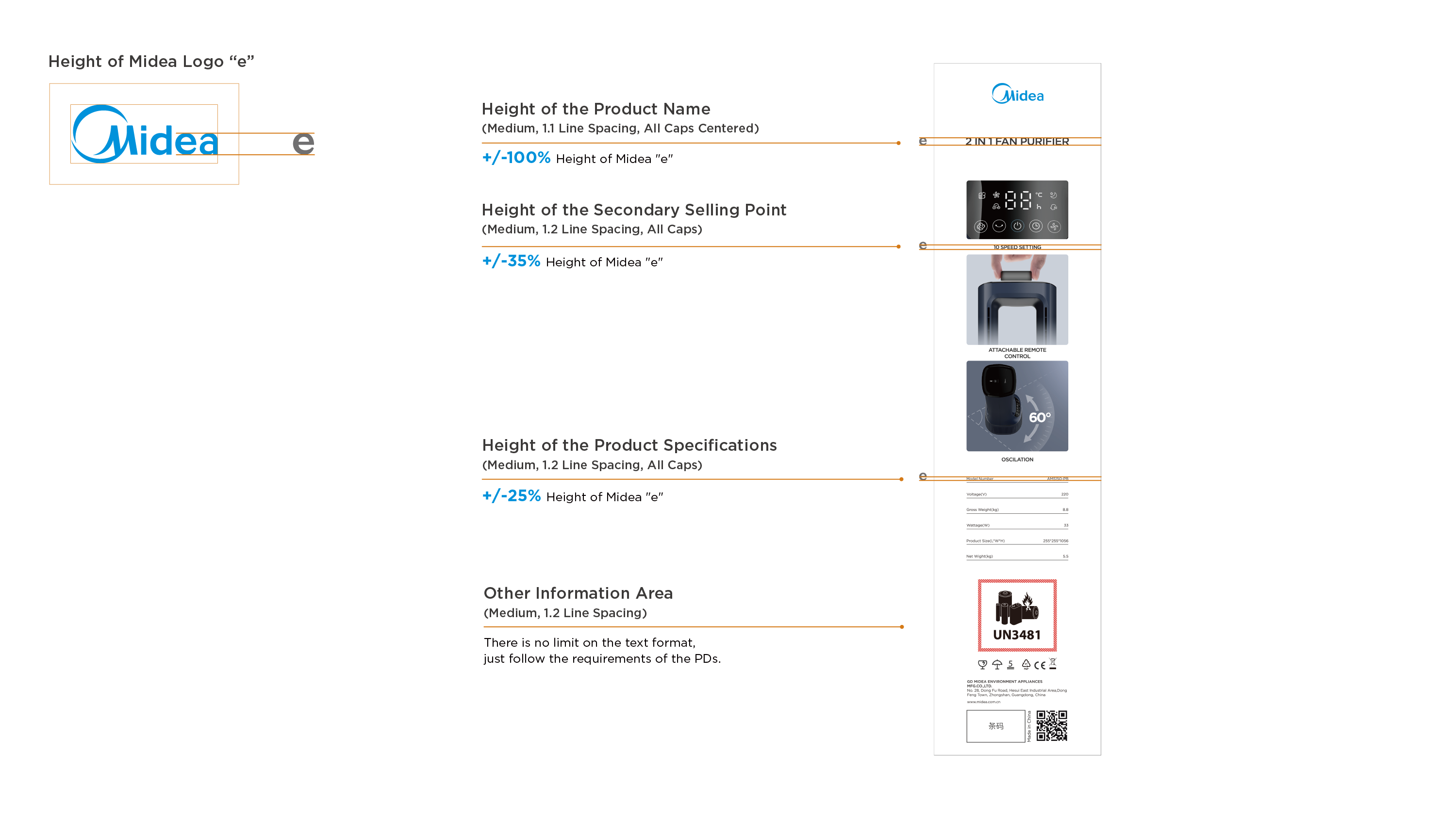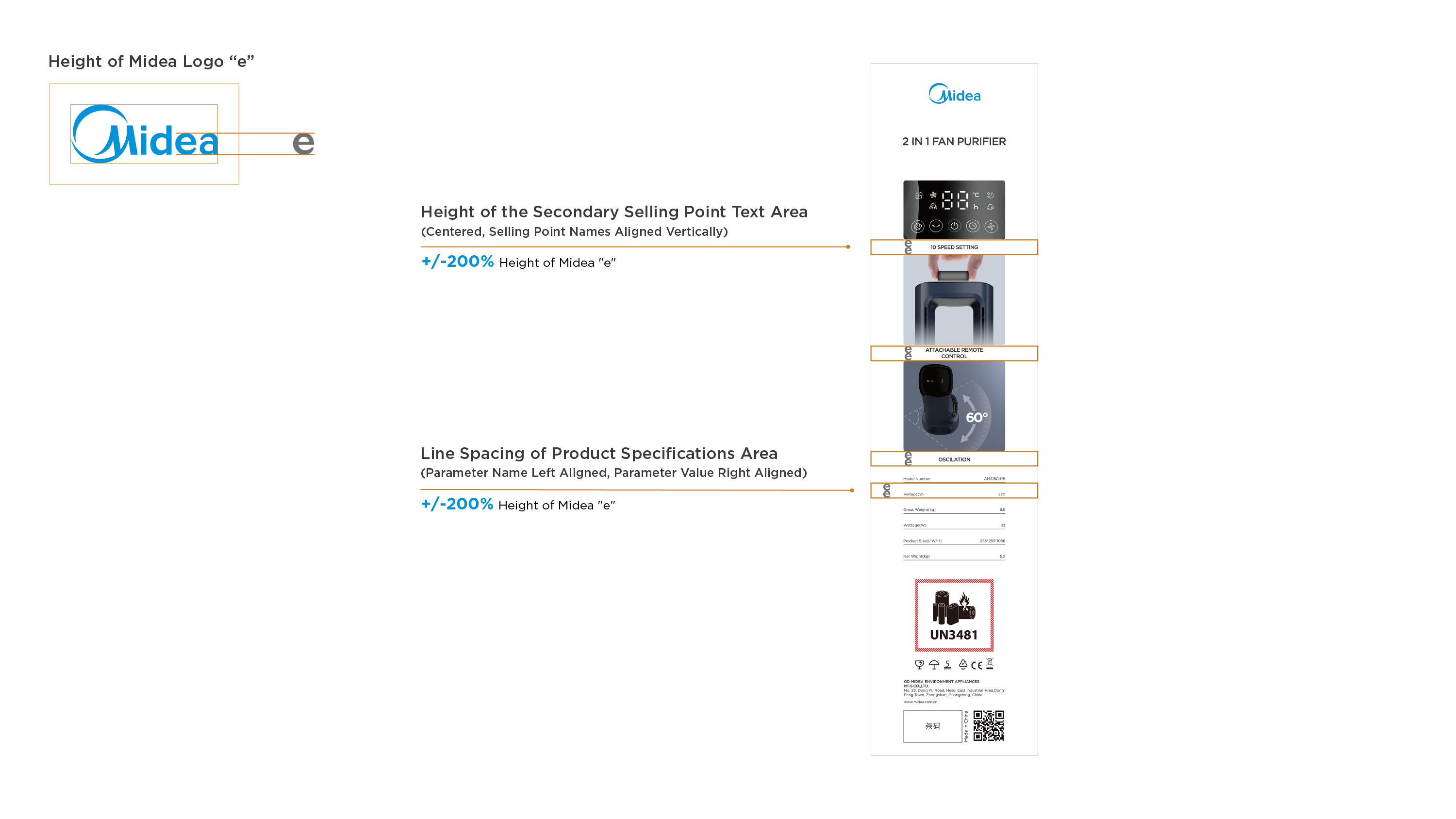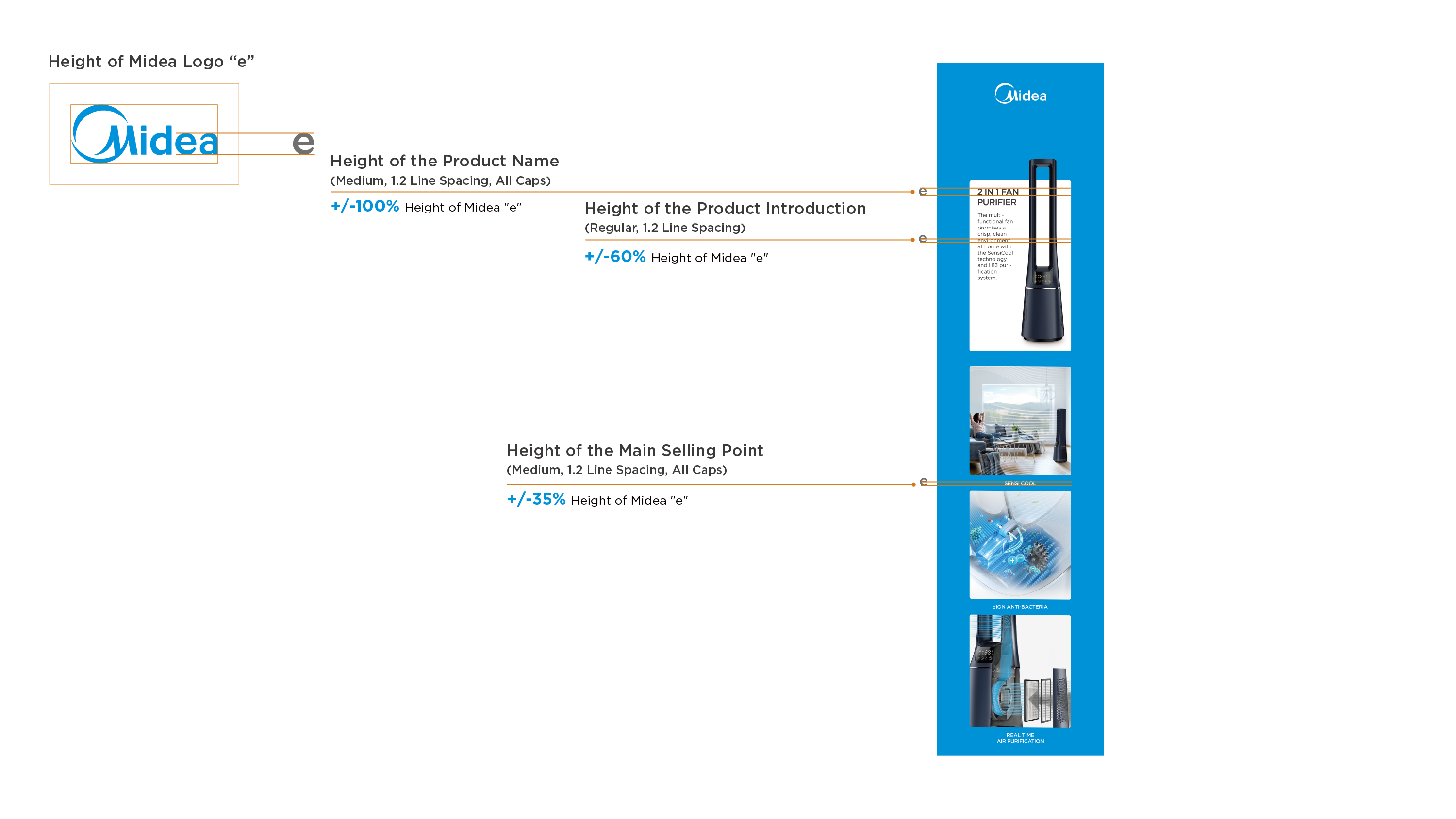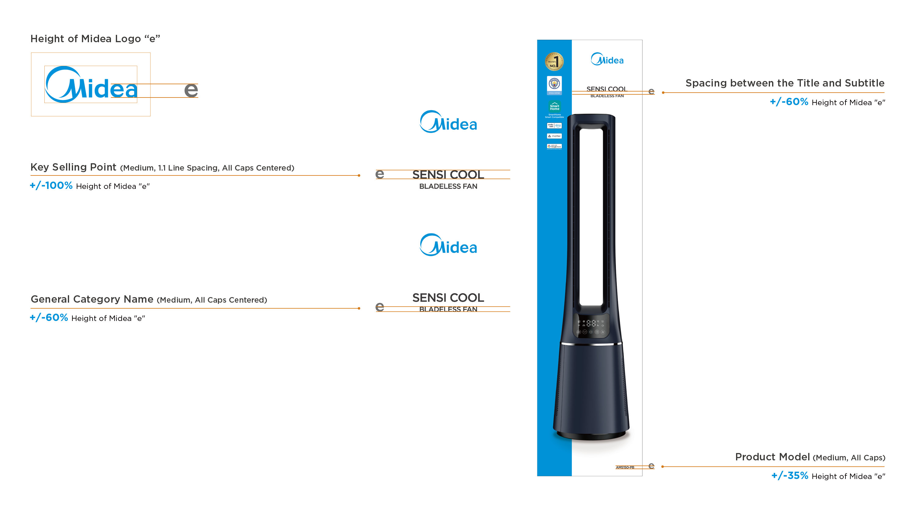 Generally, take "Midea" logo "e" as the height reference: