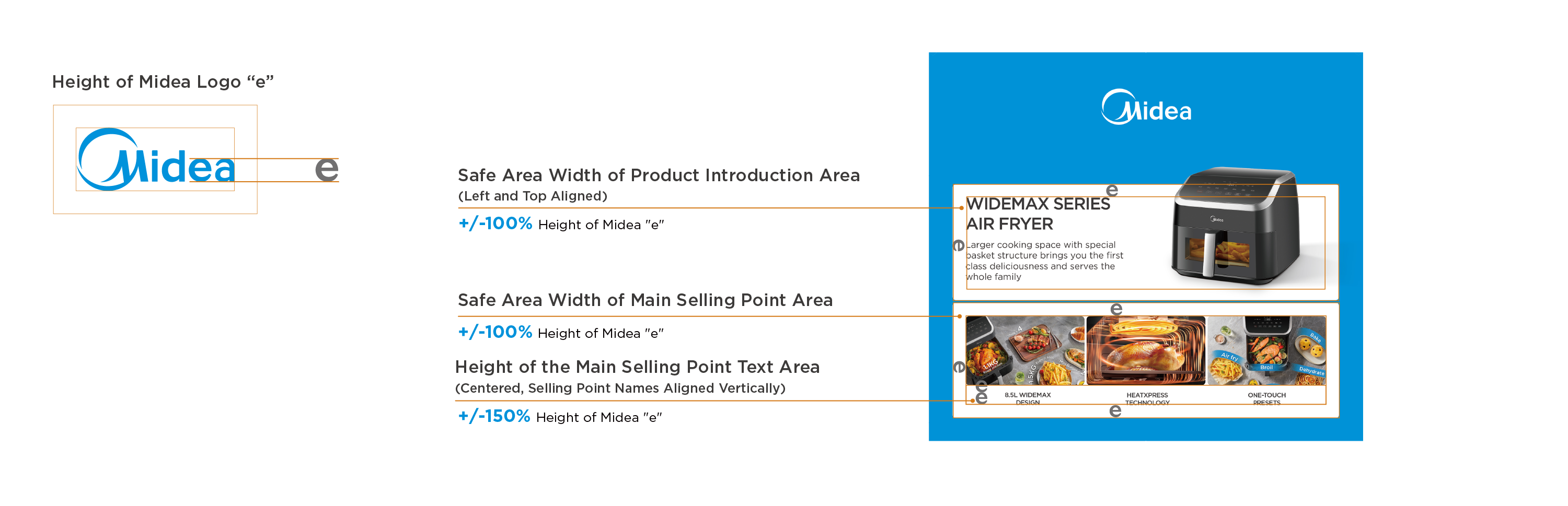 - Main Selling Point Safe Area Width : the height of 100% "e";