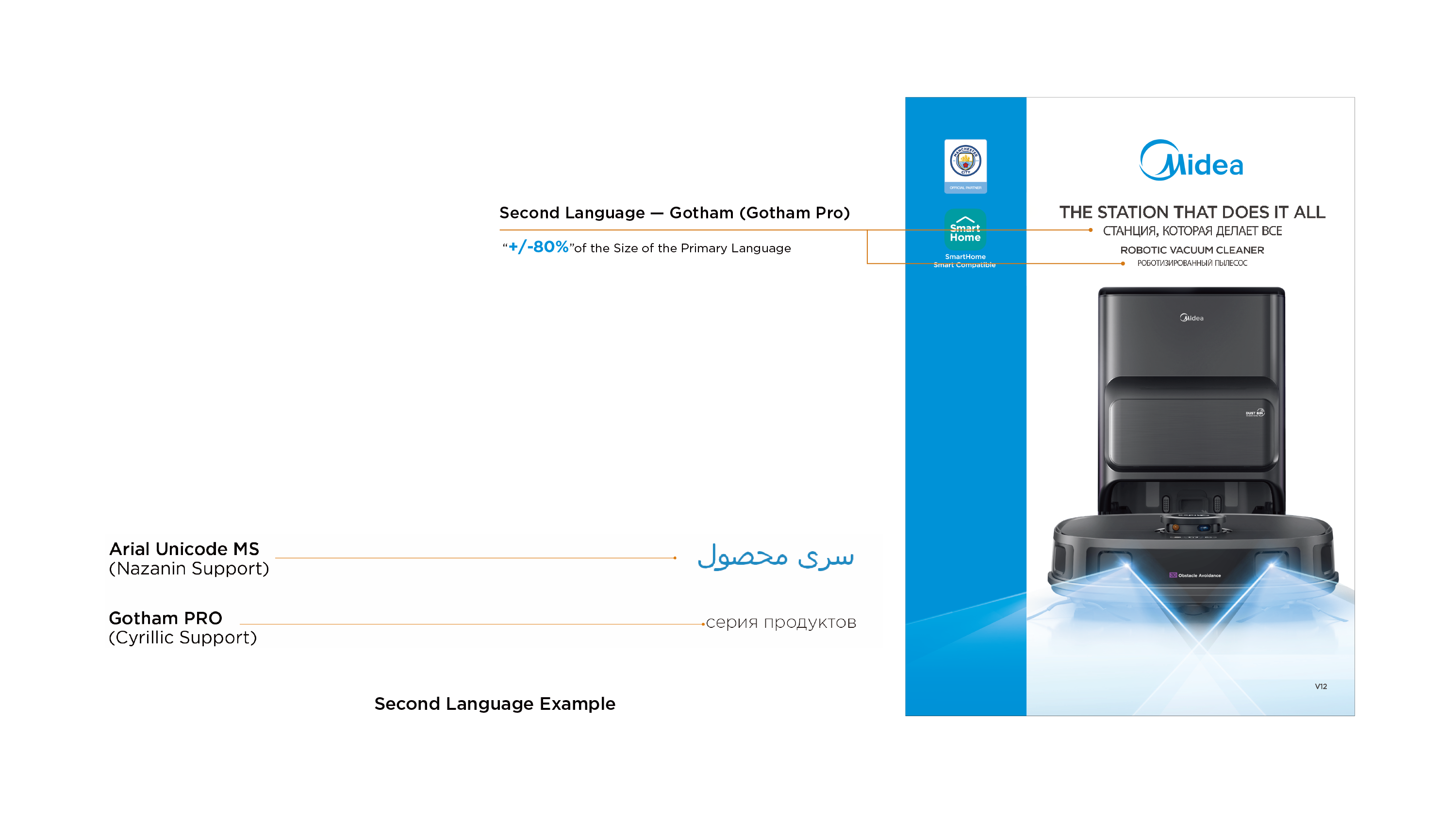 Cyrillic (Russian) uses Gotham Prop; Nazanin (Persian) uses Arial Unicode MS;