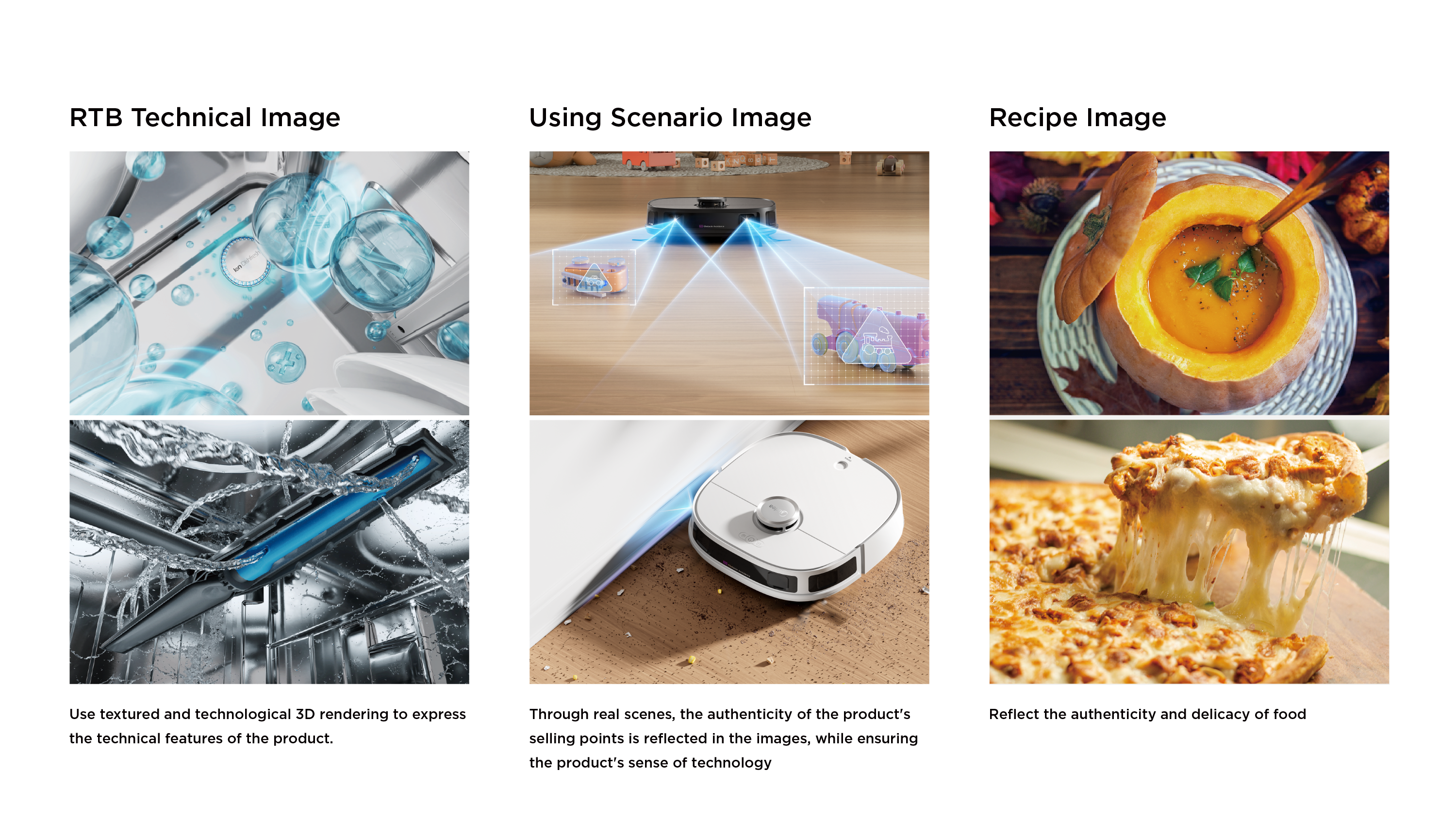 Ensure the rendering quality of the selling point images on the left/right sides of the packaging, including technical image, using scenario image and recipe image, etc.