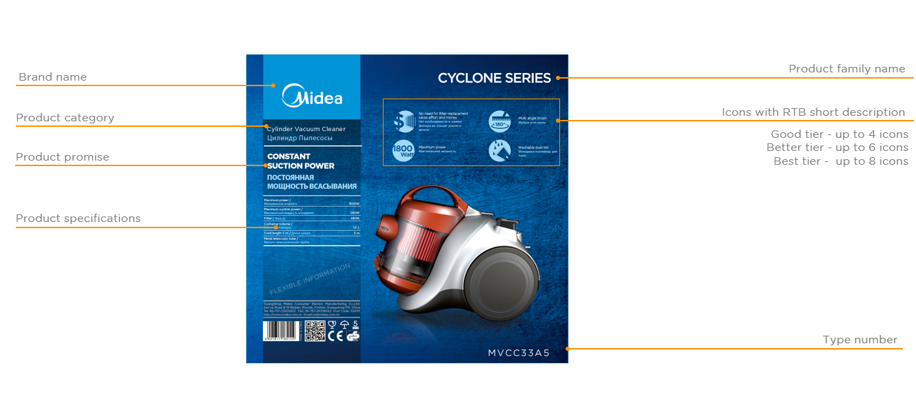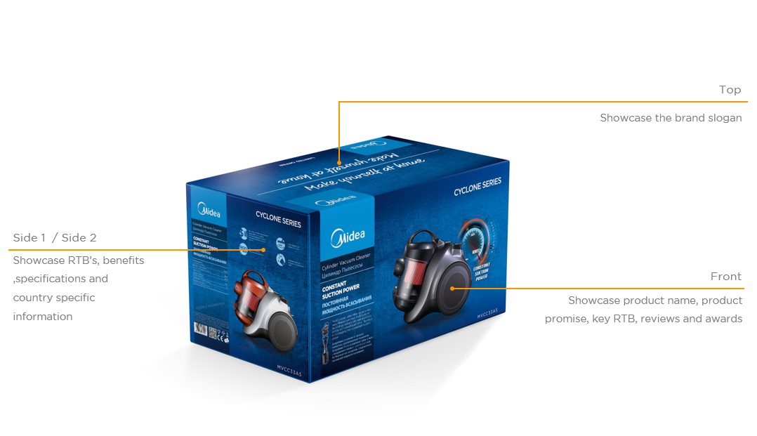 The packaging architecture principle is a clear partition of the different sides of the packaging. As every side has it’s purpose, we have designed two fronts and two sides to optimize costs and communication mix.