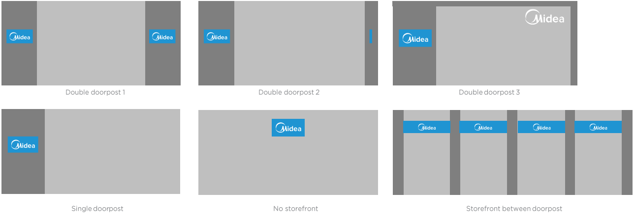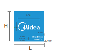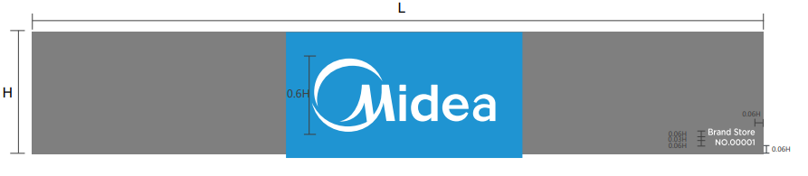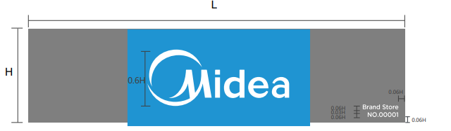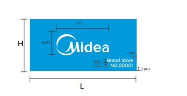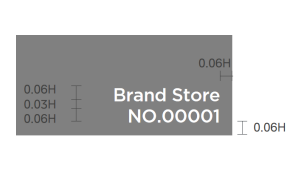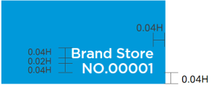 The store name and number are located at the lower right position of the standard storefront, and the font height is 0.6 H +1/10 H. The store name and number can be used separately according to market needs.