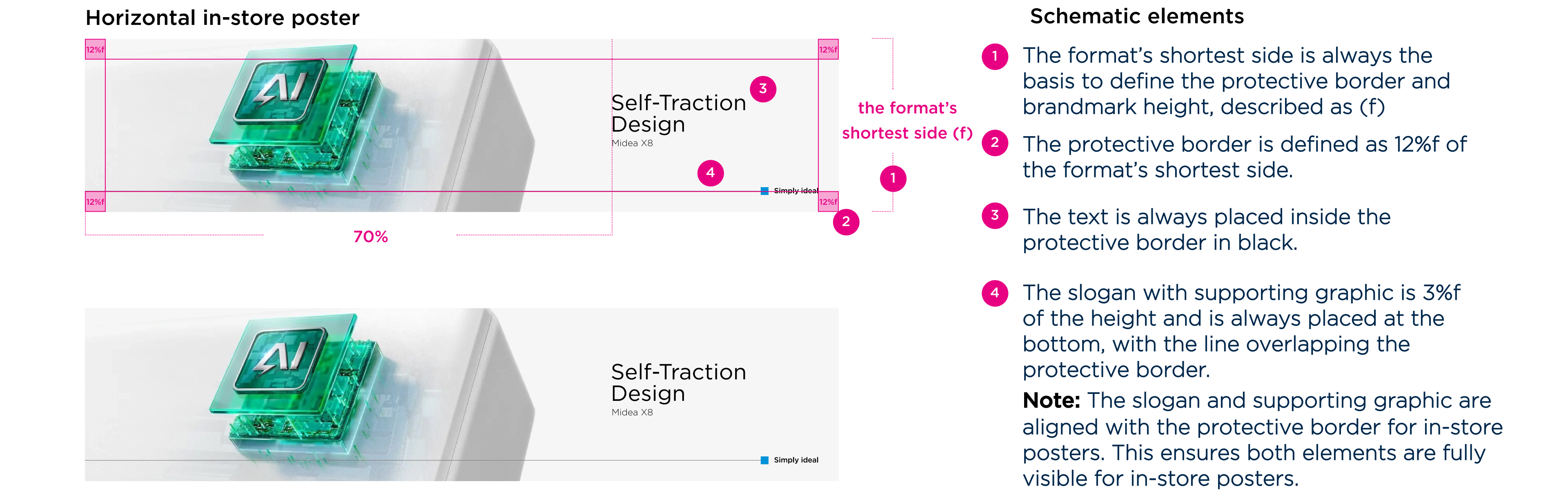 For vertical in-store posters, the same principles of imagery, text, slogan and supporting graphic placement have been maintained. In this scenario, the slogan and supporting graphic moved upwards slightly to prevent them from appearing too low in the overall store appearance.